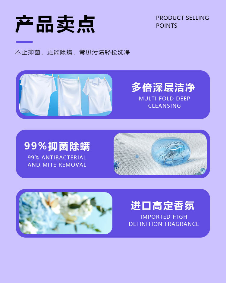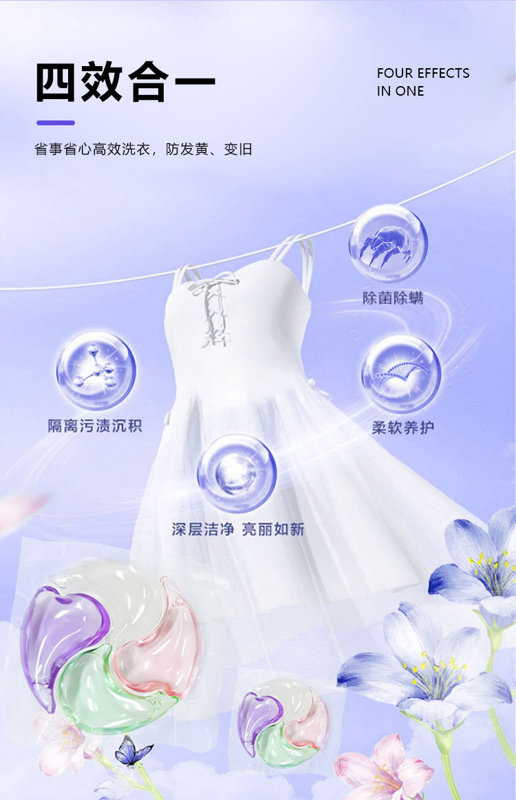 국경 간 4-in-1 세탁 비즈, 항균, 진드기 제거 및 향기, 다기능 농축 효소 4 챔버 세탁 비즈 OEM 사용자 정의