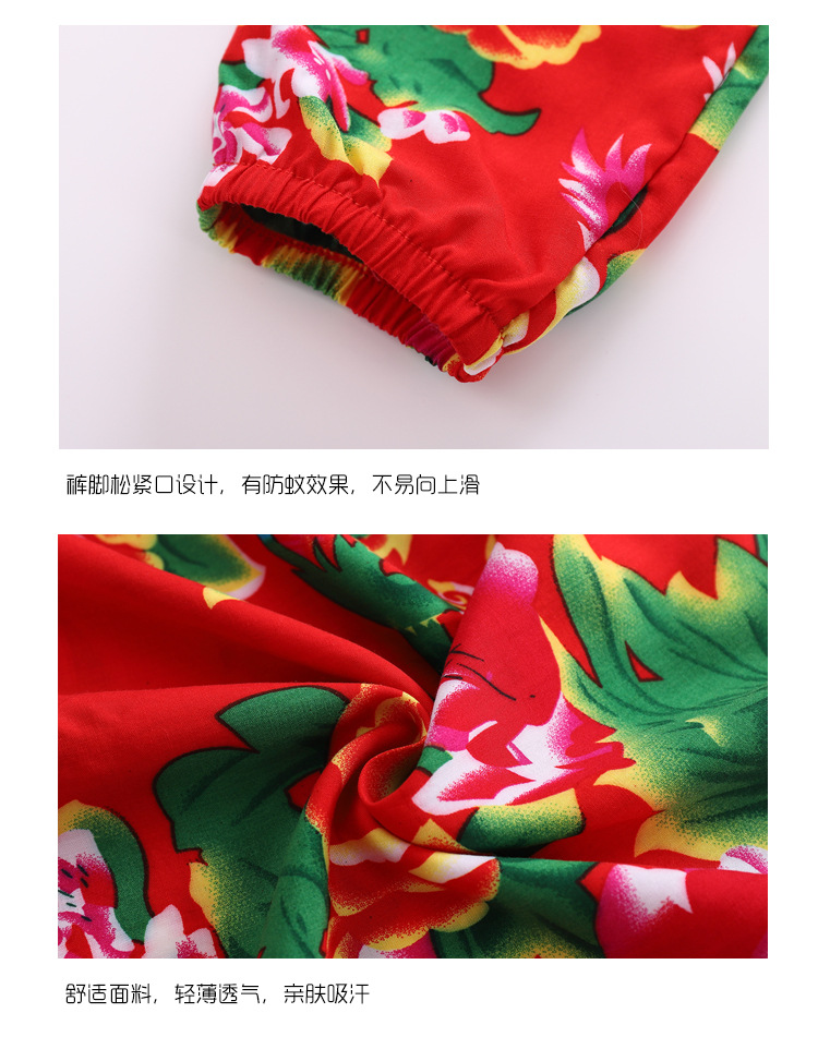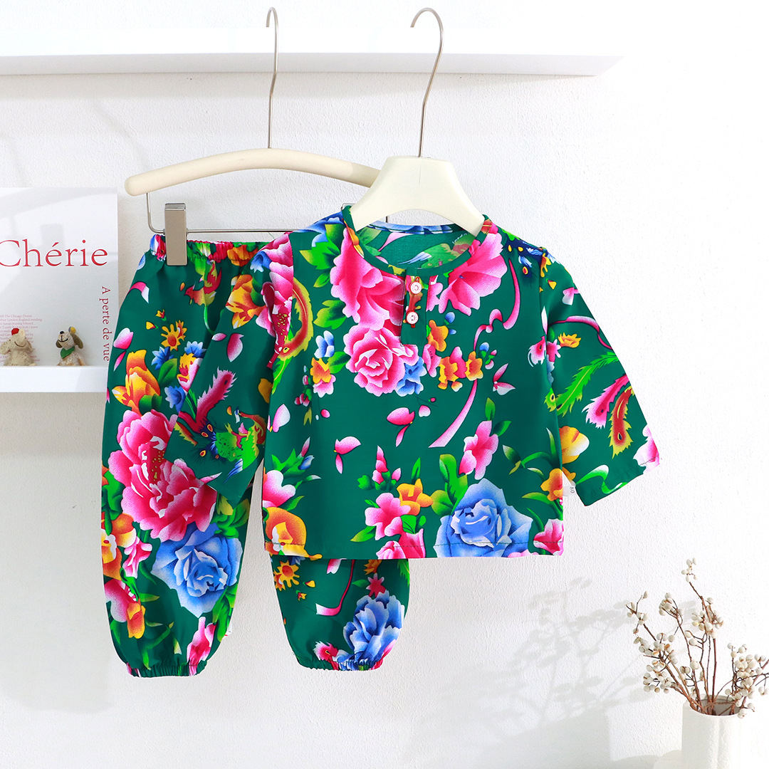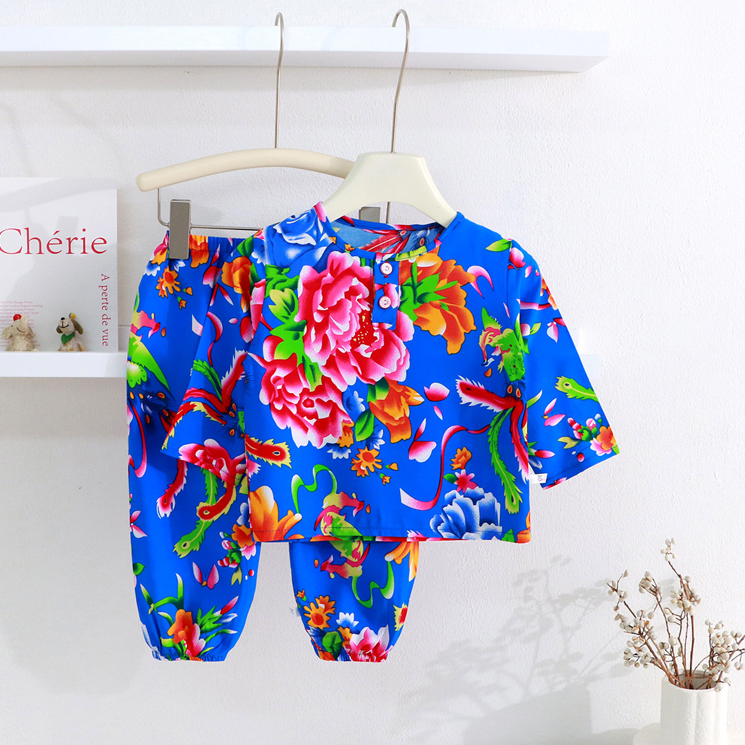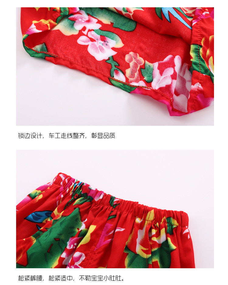 동북 큰 꽃 홈 의류 소년과 소녀 여름 인터넷 연예인 어린이 잠옷 여름 투피스 아기 옷 얇은 세트