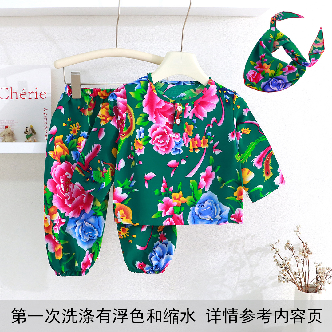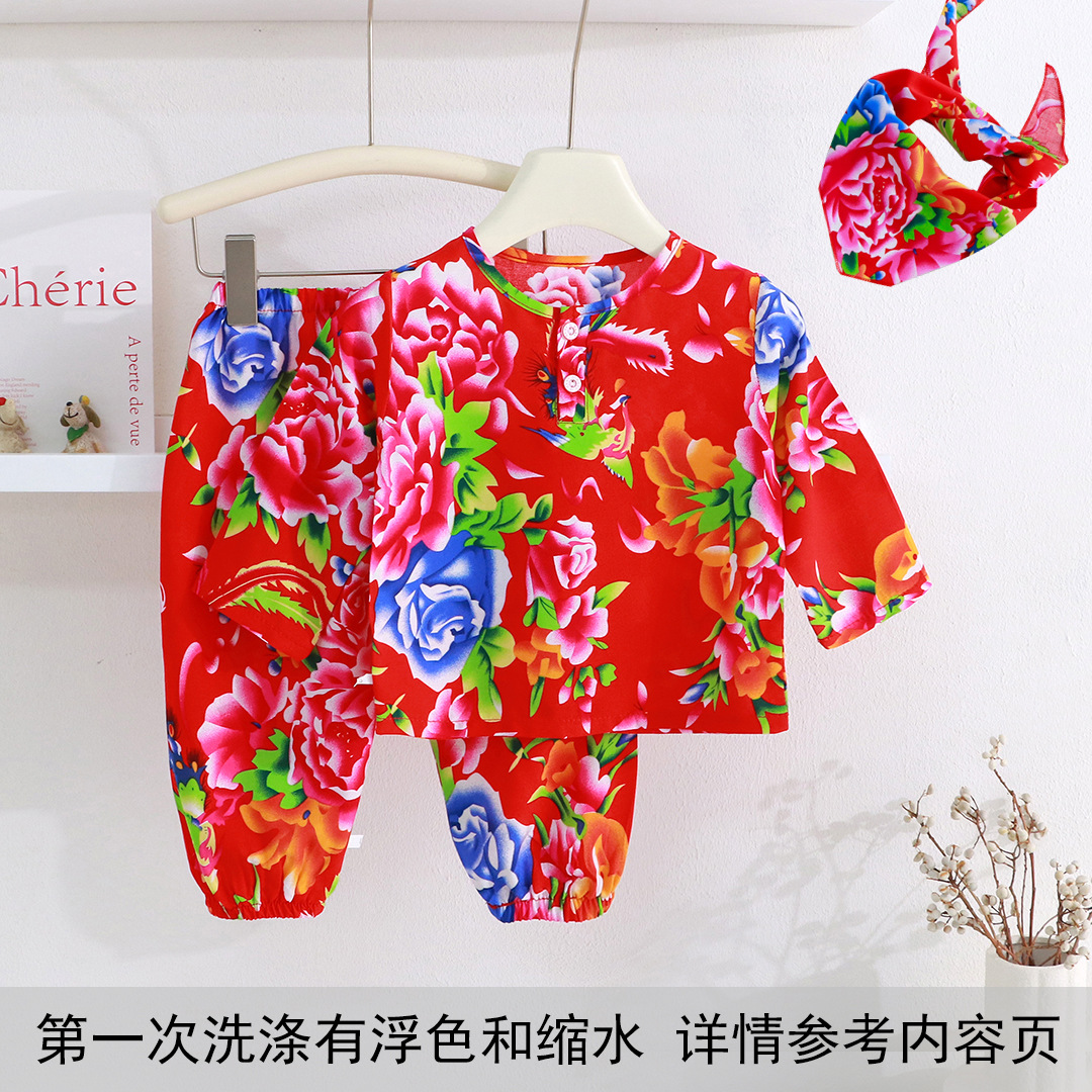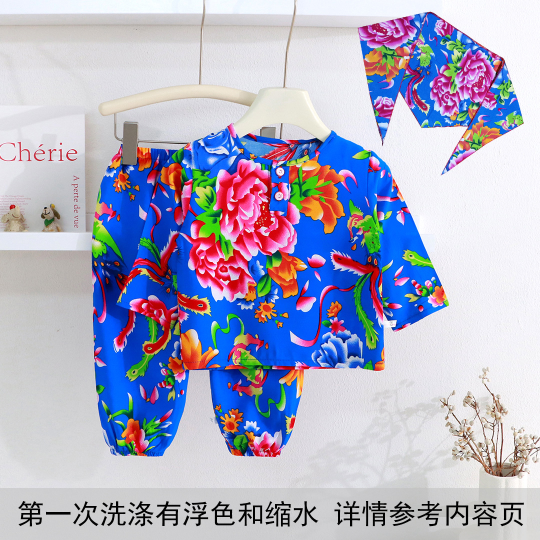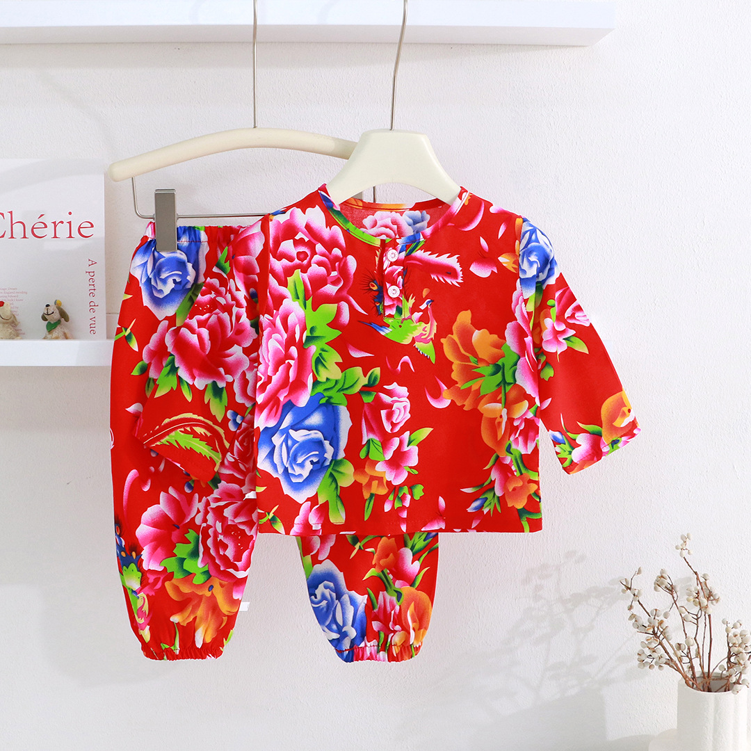 동북 큰 꽃 홈 의류 소년과 소녀 여름 인터넷 연예인 어린이 잠옷 여름 투피스 아기 옷 얇은 세트