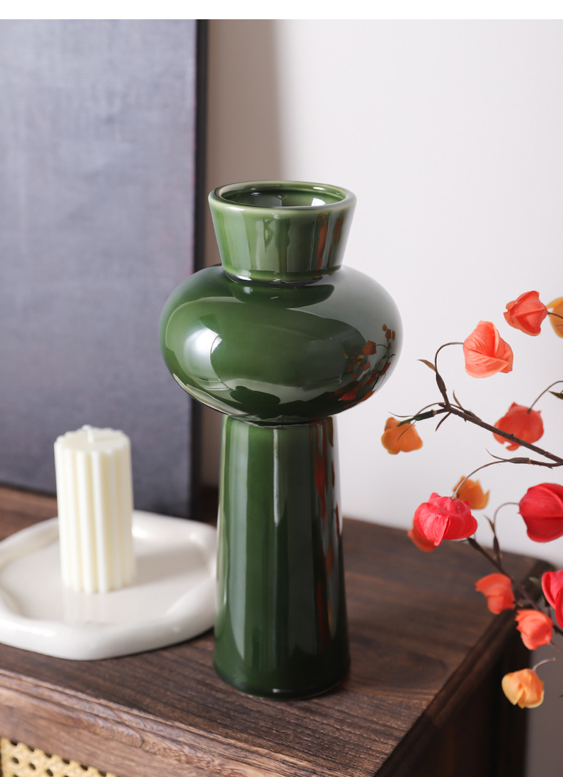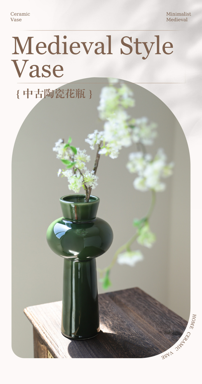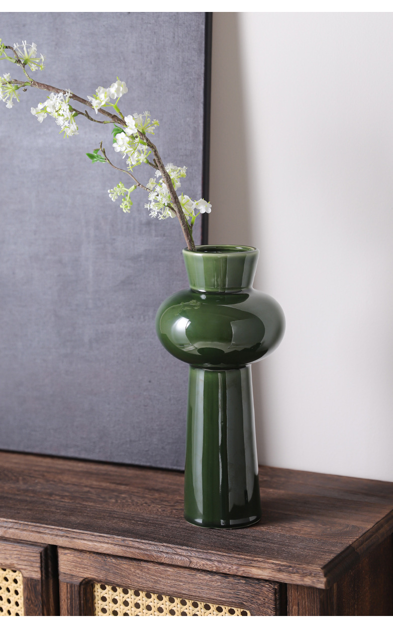 세라믹 골동품 꽃병 높은 색상 가치 새로운 중국 스타일 빈티지 녹색 꽃병 고급 감각 장식 수경 꽃 꽃병