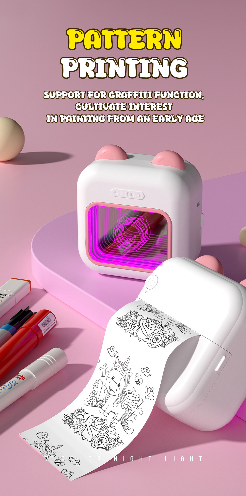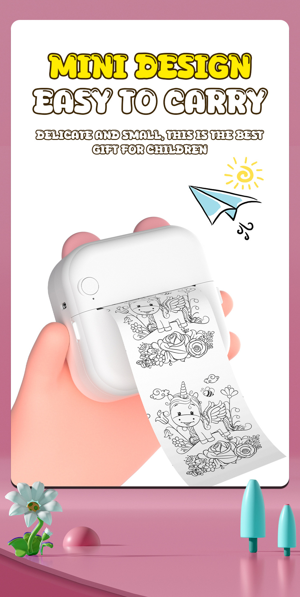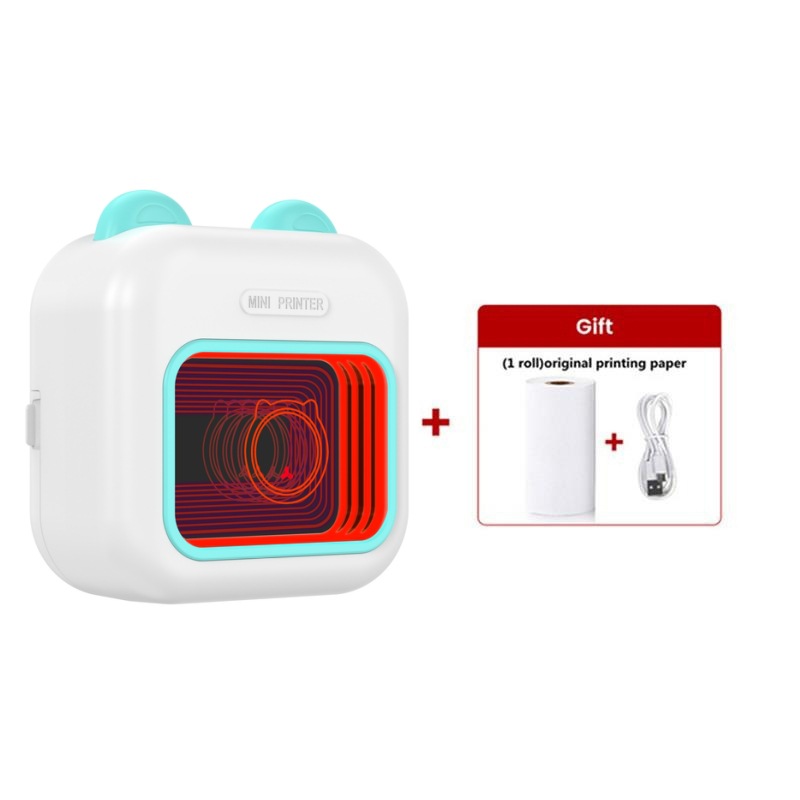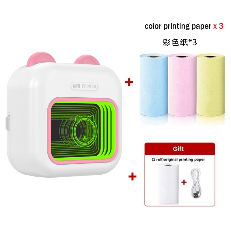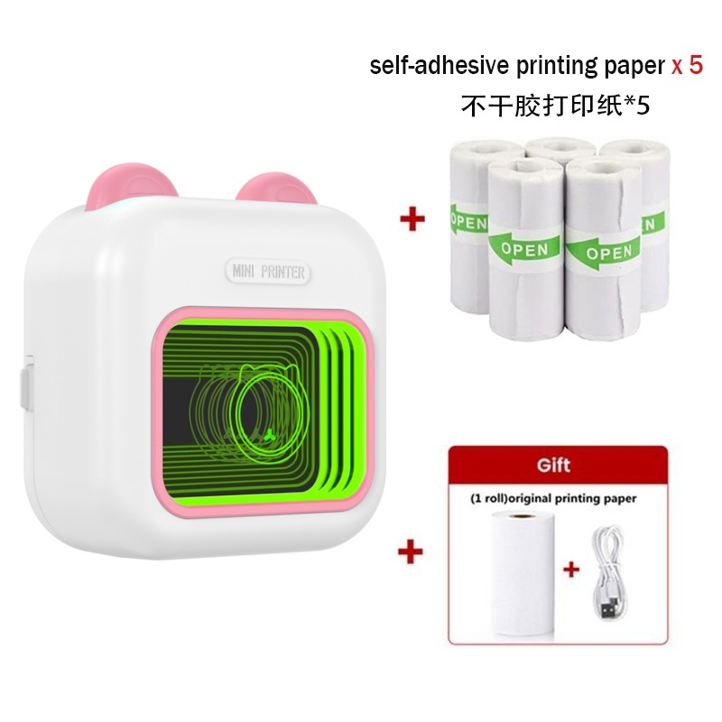 打印机1台+【自带1卷热敏纸+5卷热敏纸+5卷不干胶+3卷彩色纸+6支水彩笔+贴纸+布袋】为一整套。
