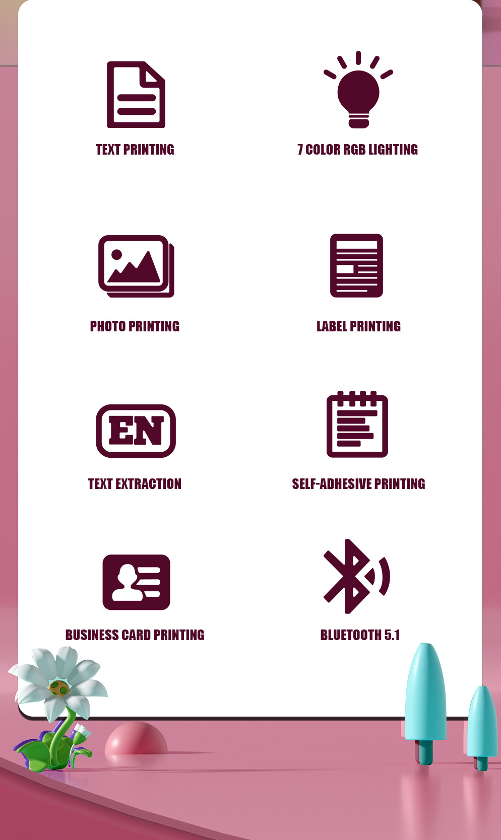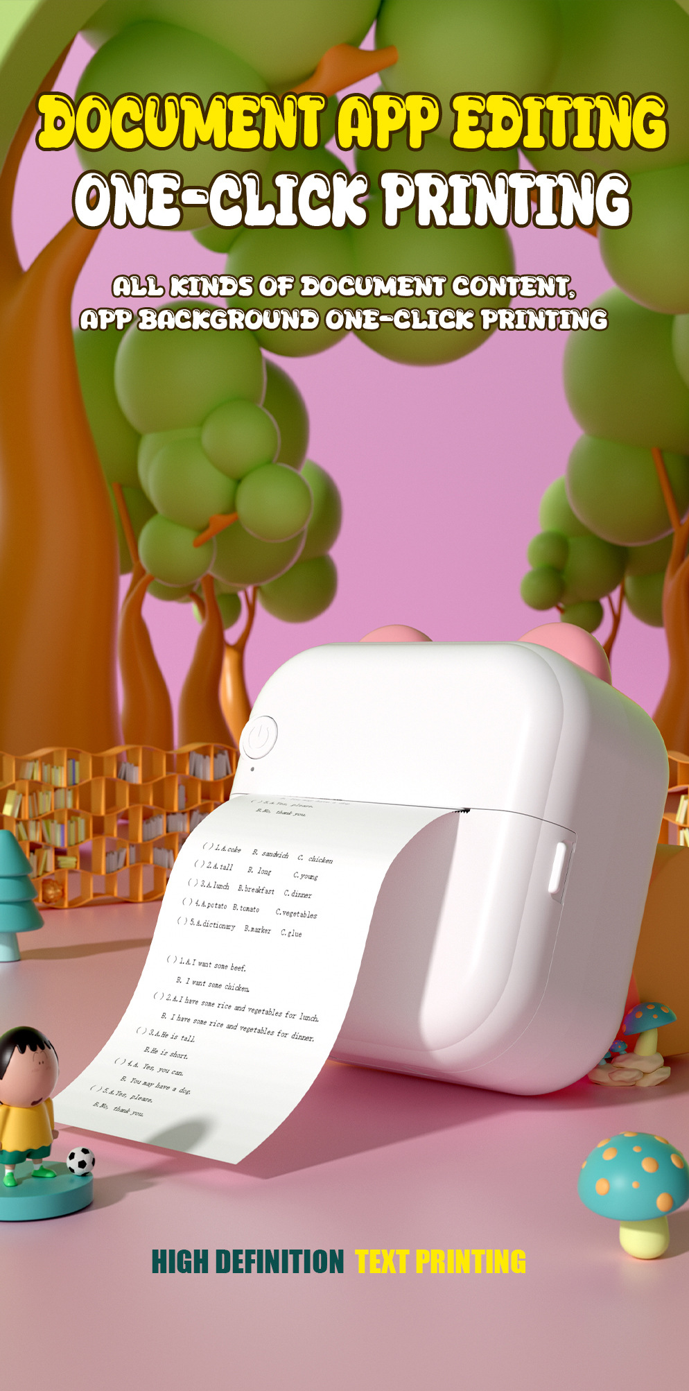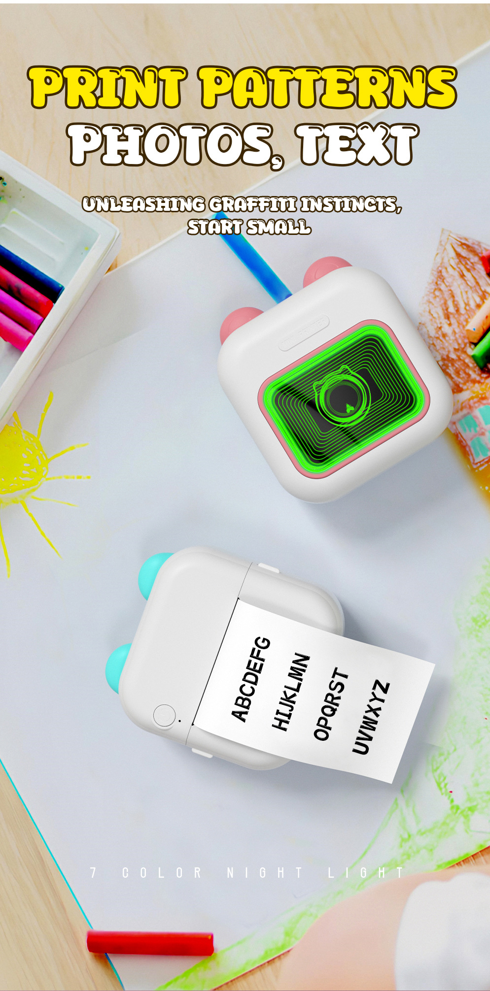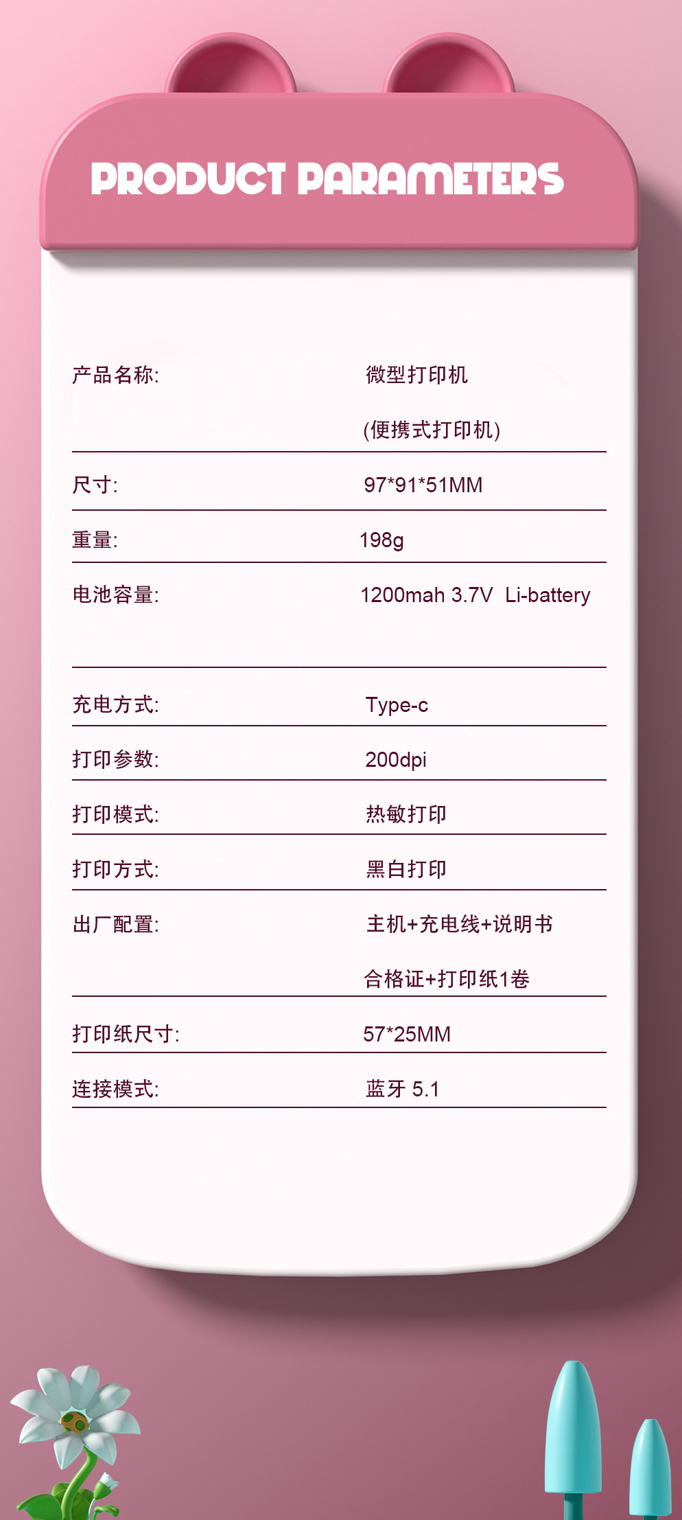 打印机1台+【自带1卷热敏纸+5卷热敏纸+5卷不干胶+3卷彩色纸+6支水彩笔+贴纸+布袋】为一整套。