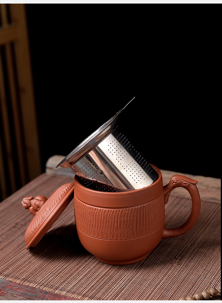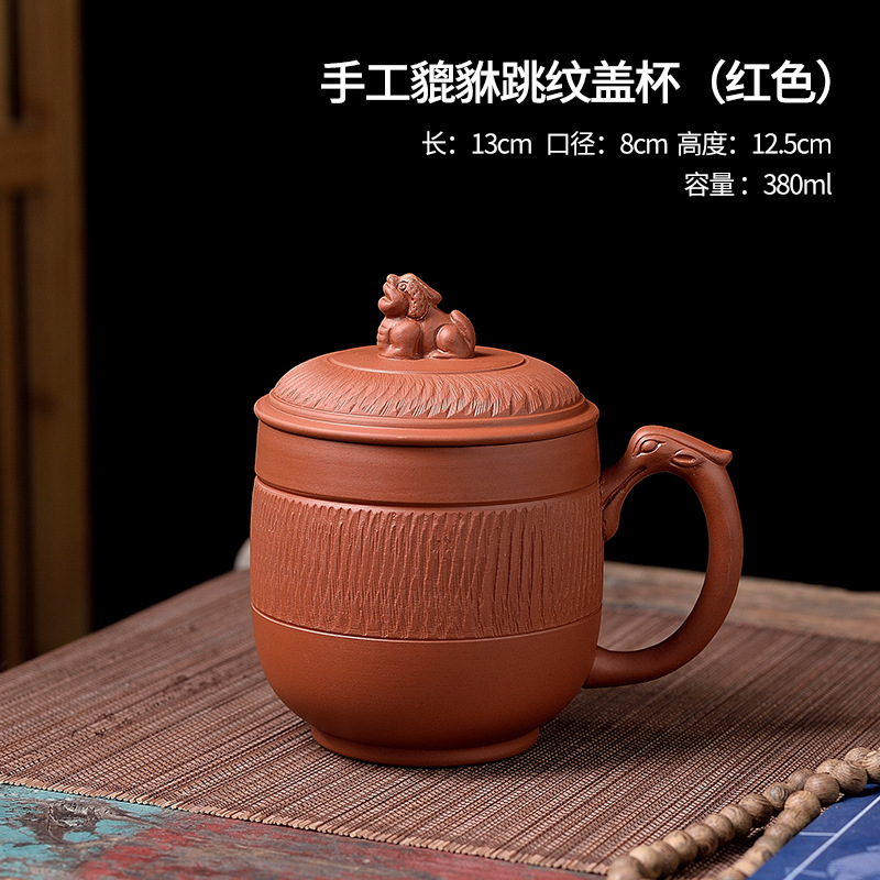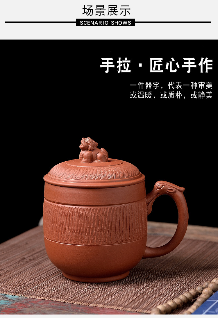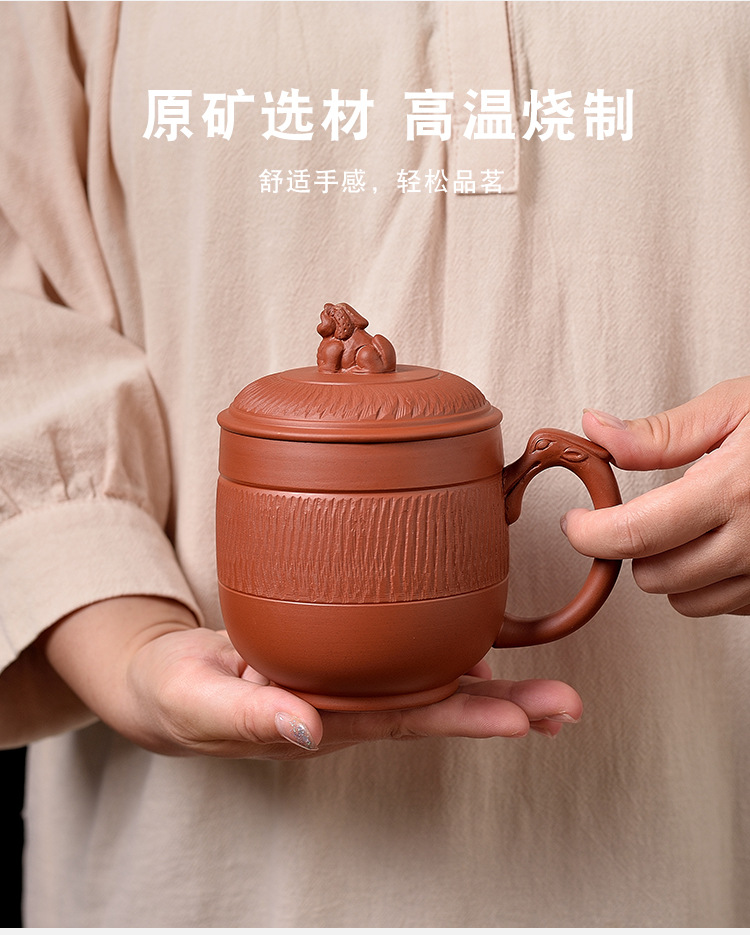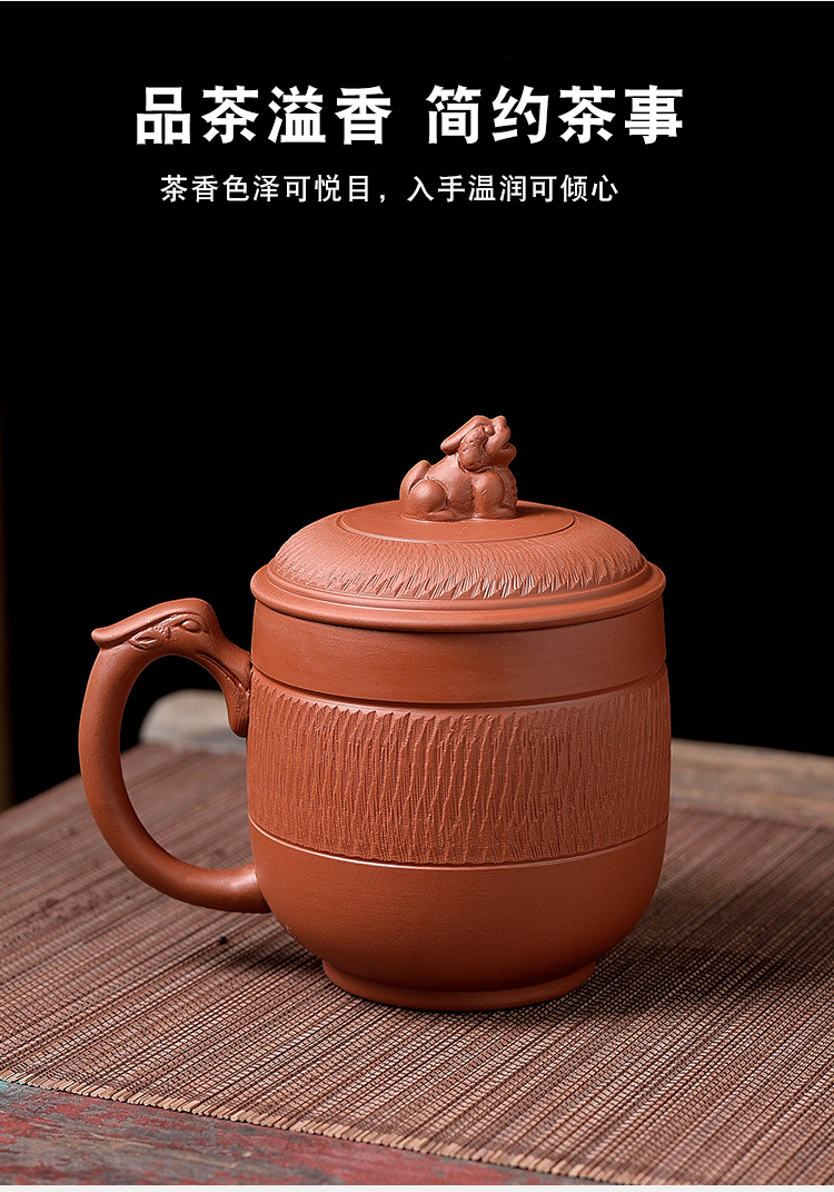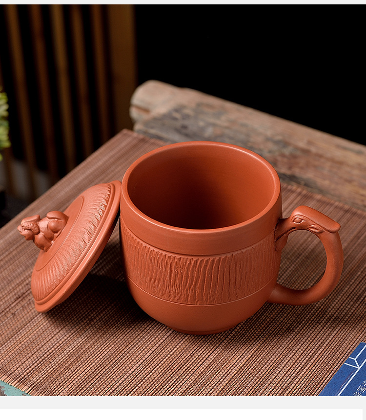 빈티지 Zisha Cinnabar 오피스 컵 티 컵 티 컵 스페셜 마스터 컵 세라믹 회의 티 컵 티 컵 핸들