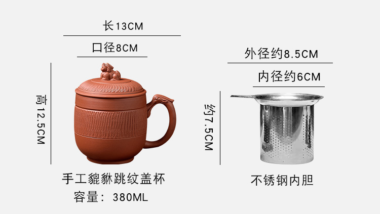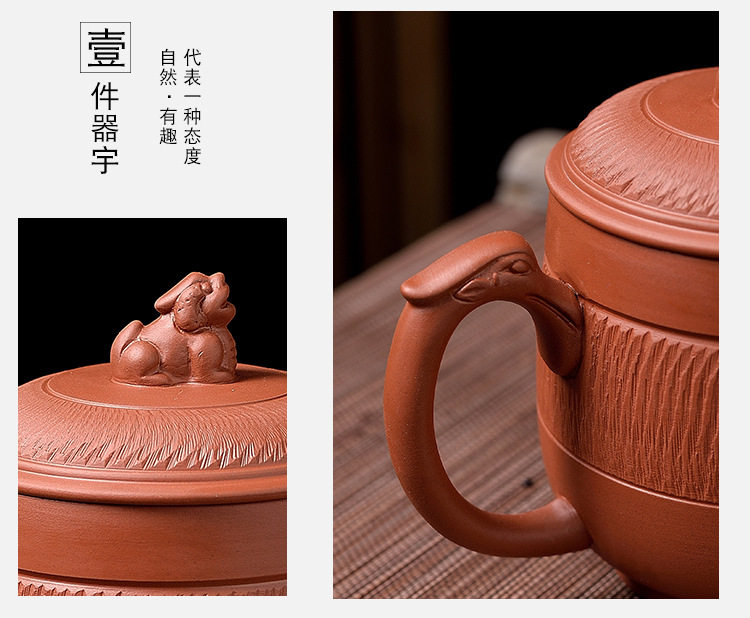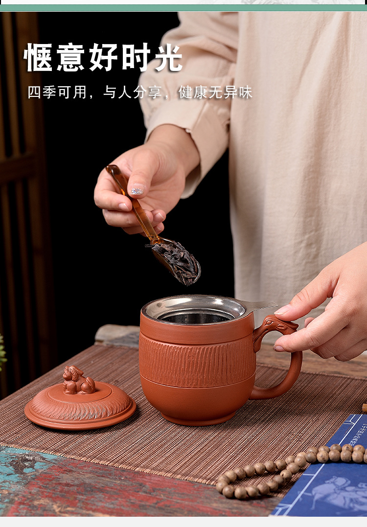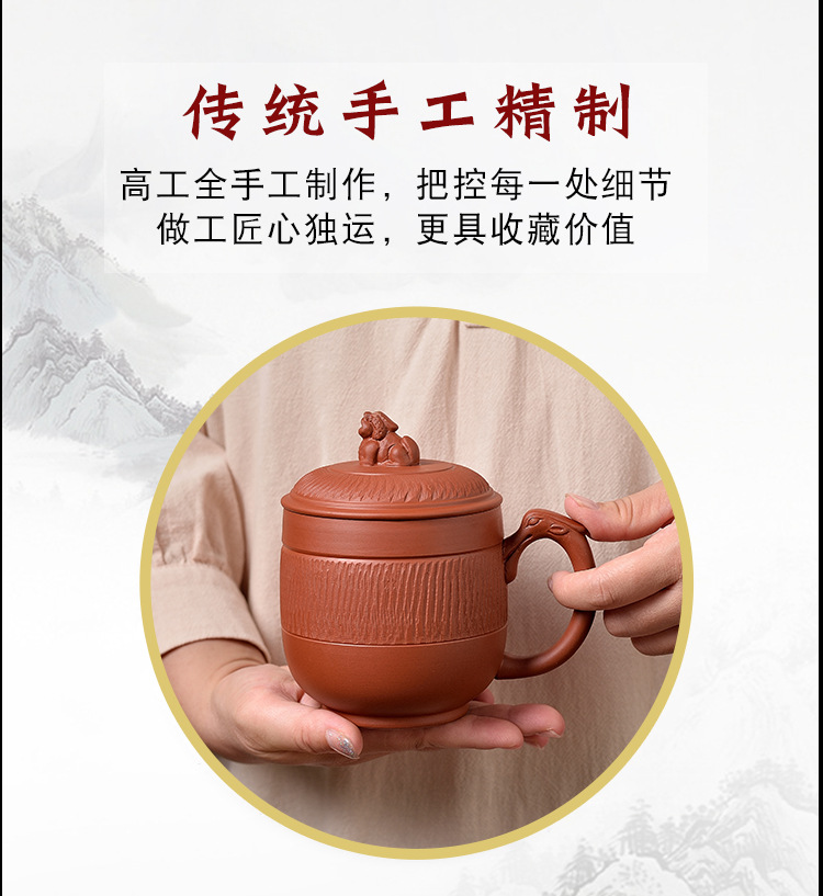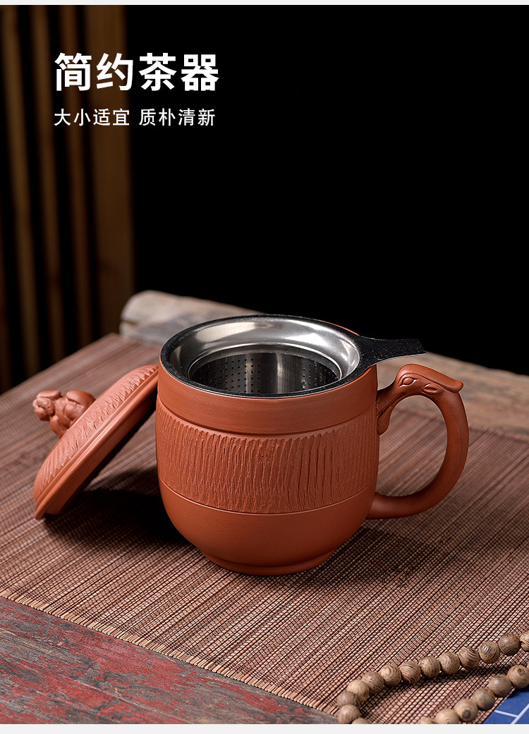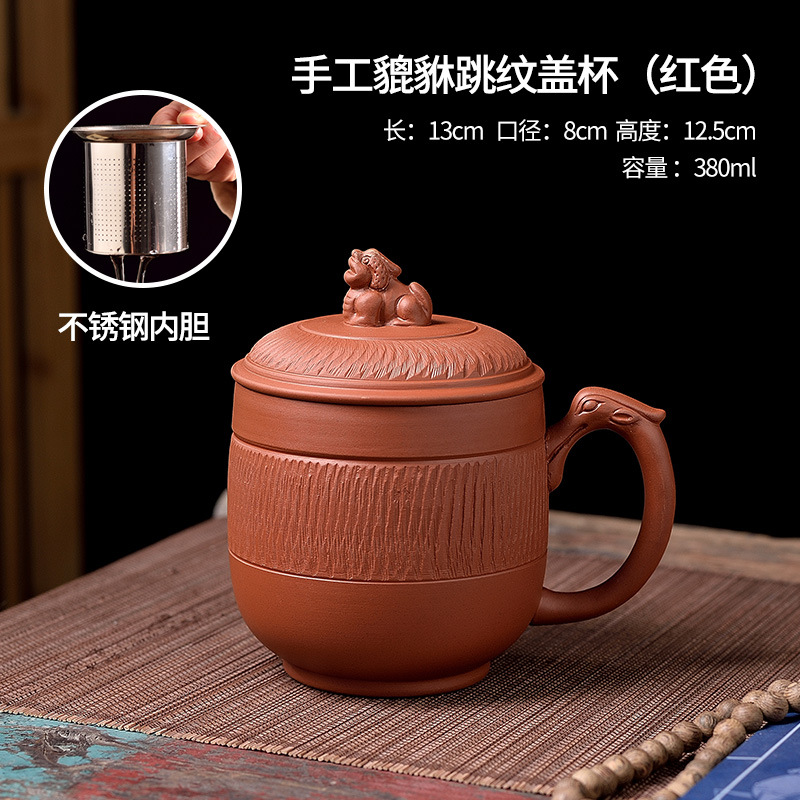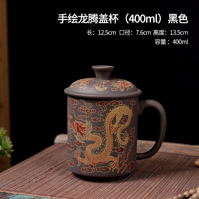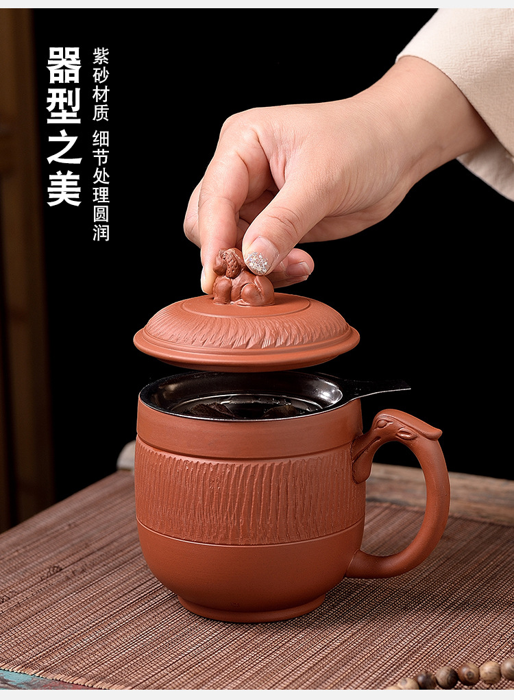 빈티지 Zisha Cinnabar 오피스 컵 티 컵 티 컵 스페셜 마스터 컵 세라믹 회의 티 컵 티 컵 핸들
