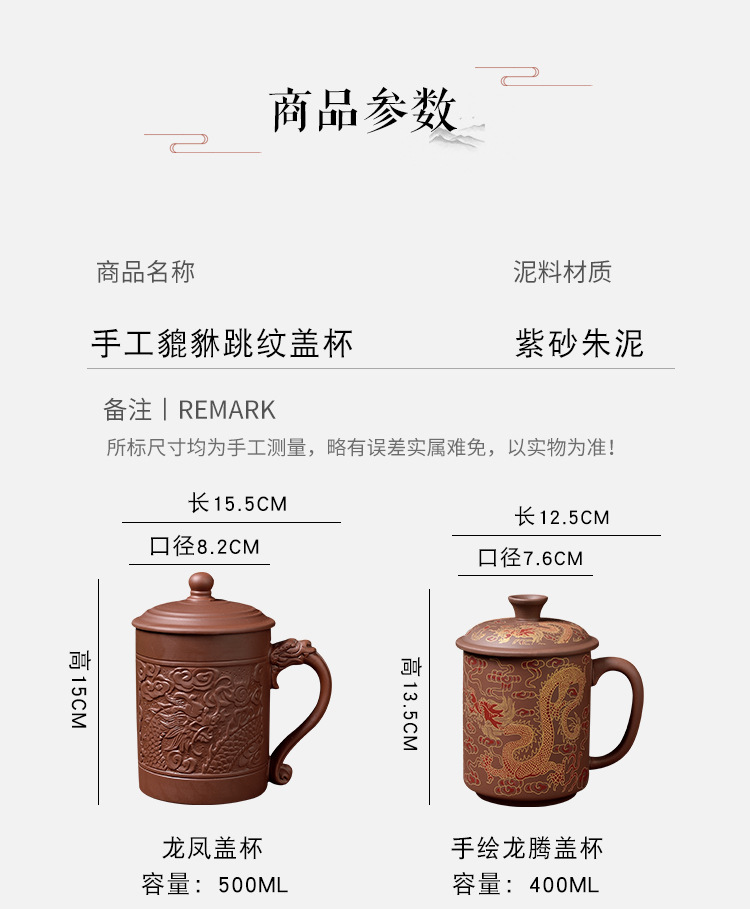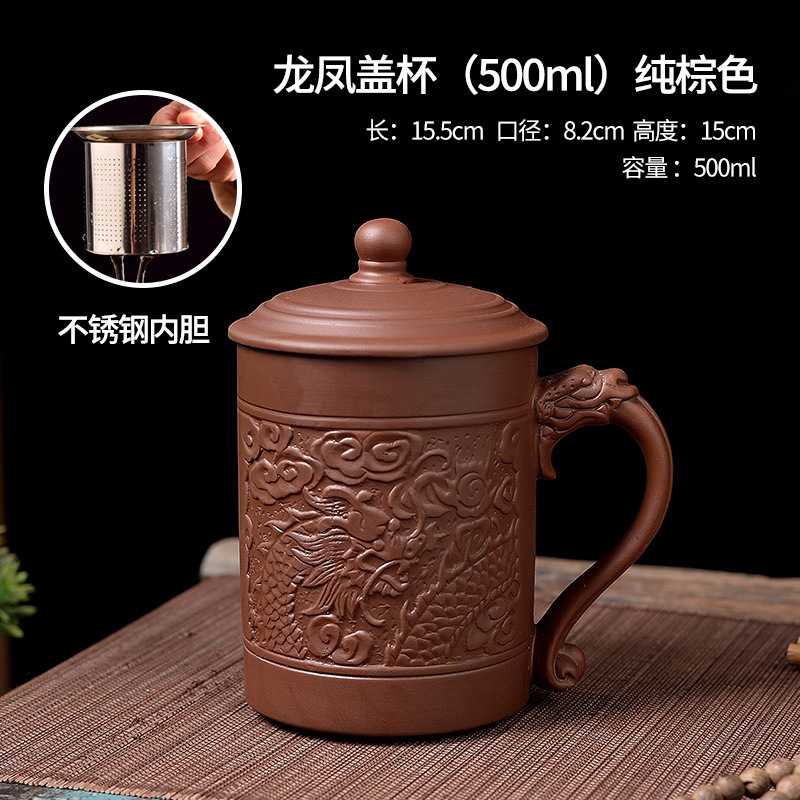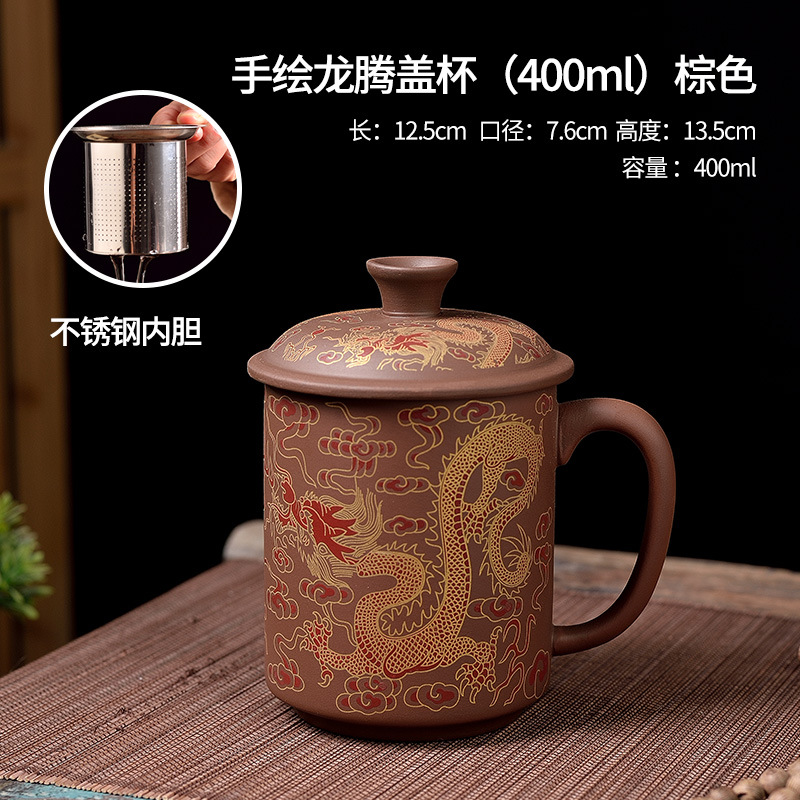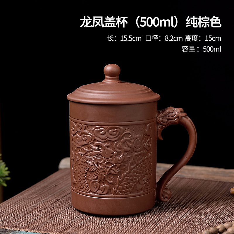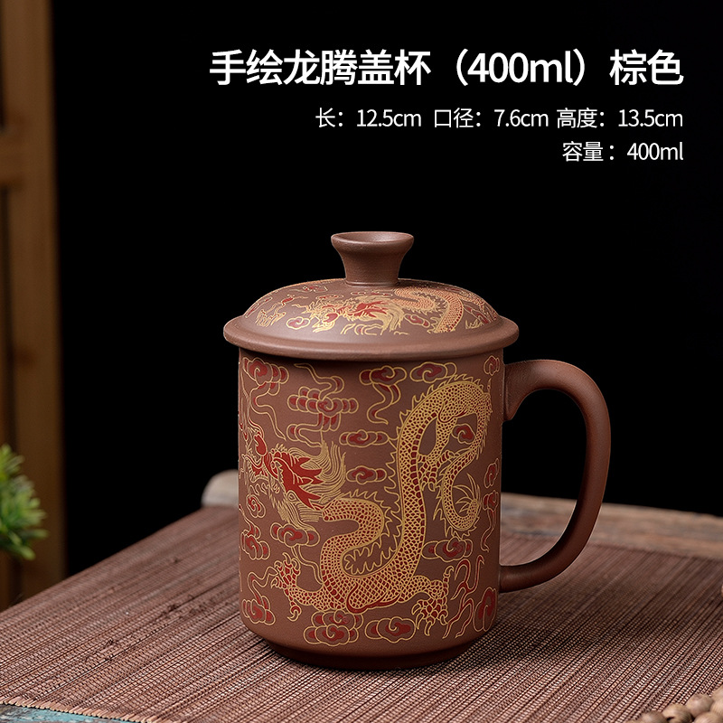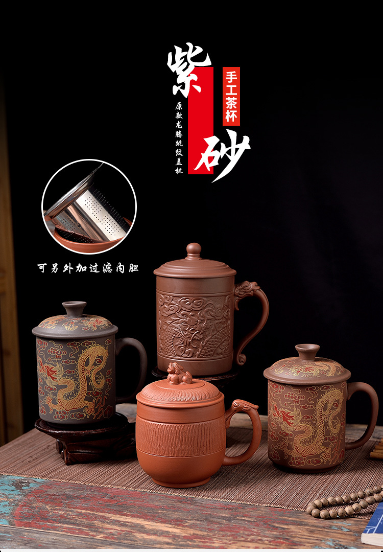 빈티지 Zisha Cinnabar 오피스 컵 티 컵 티 컵 스페셜 마스터 컵 세라믹 회의 티 컵 티 컵 핸들스토어 가기