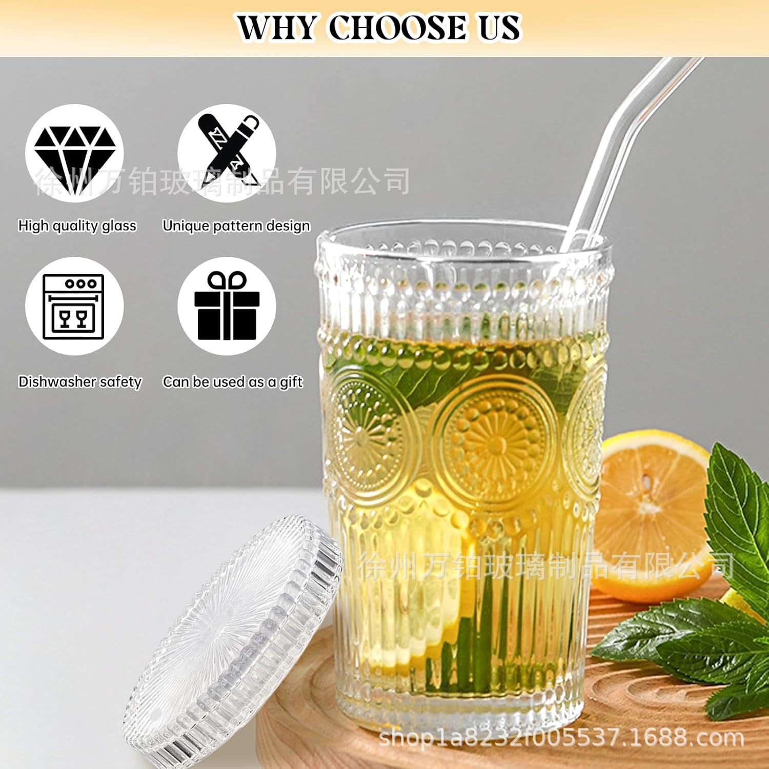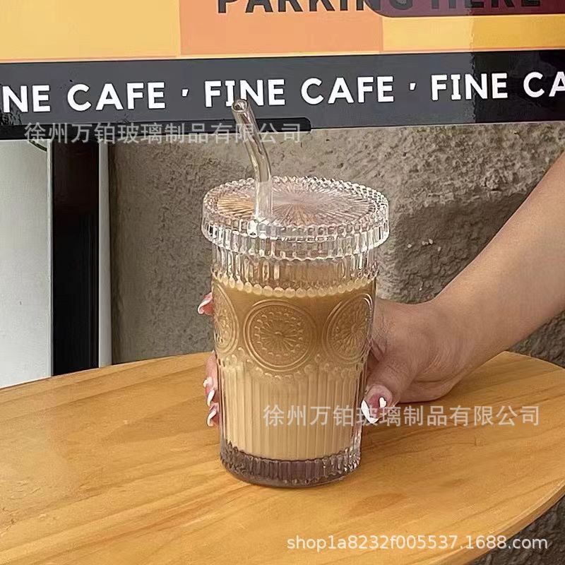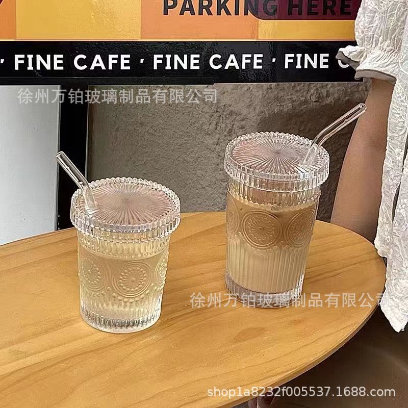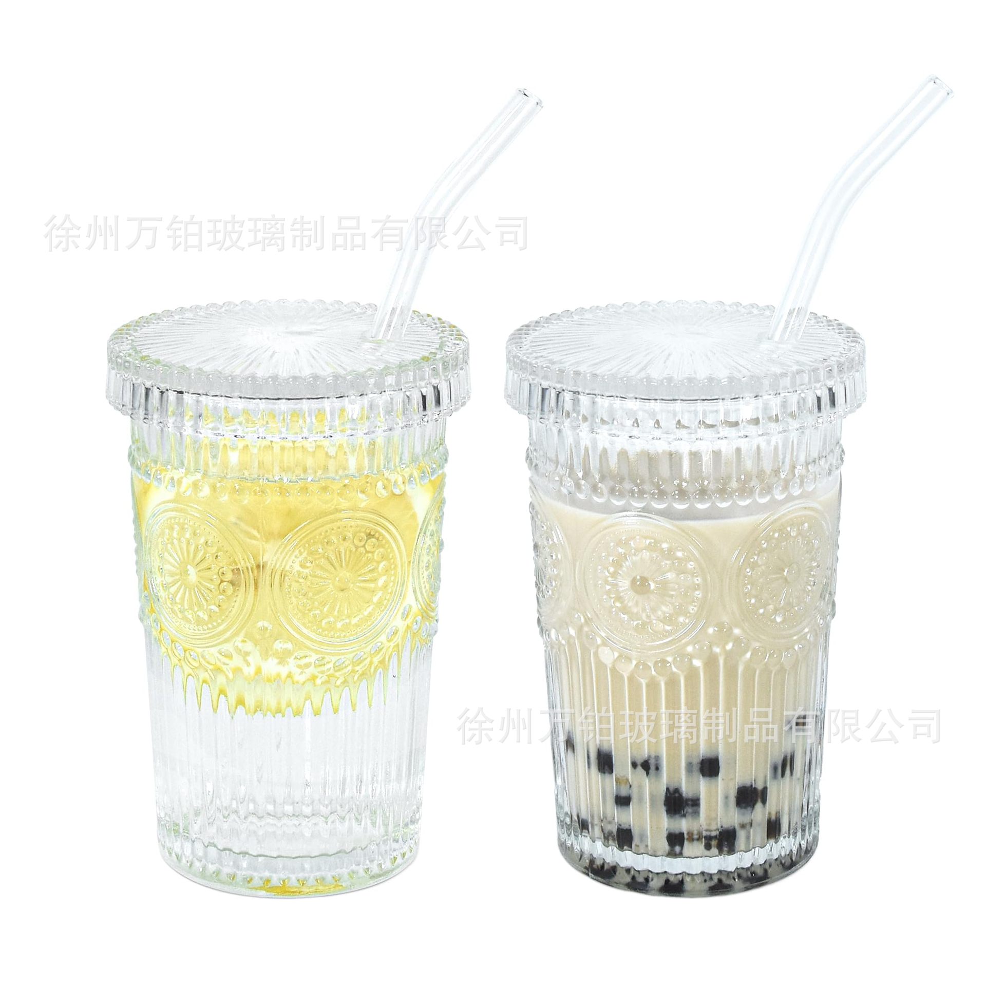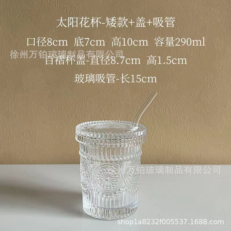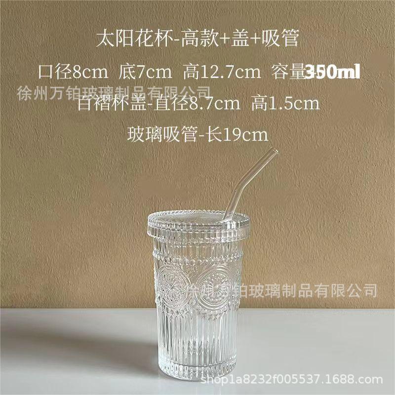 국경 간 해바라기 유리 워터 컵 뚜껑 흡입 튜브 컵 차가운 음료 우유 차 커피 컵 선물 위스키 맥주 컵