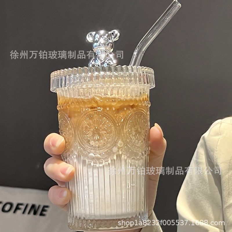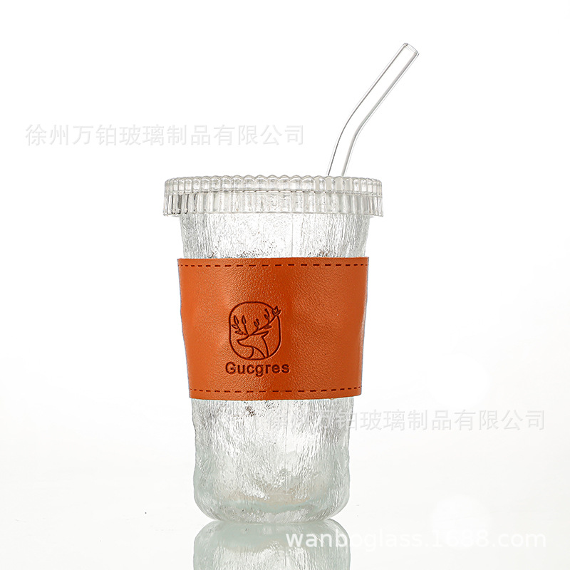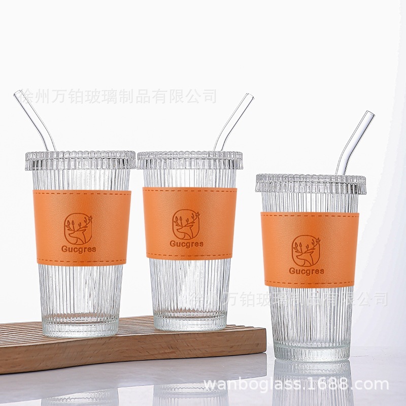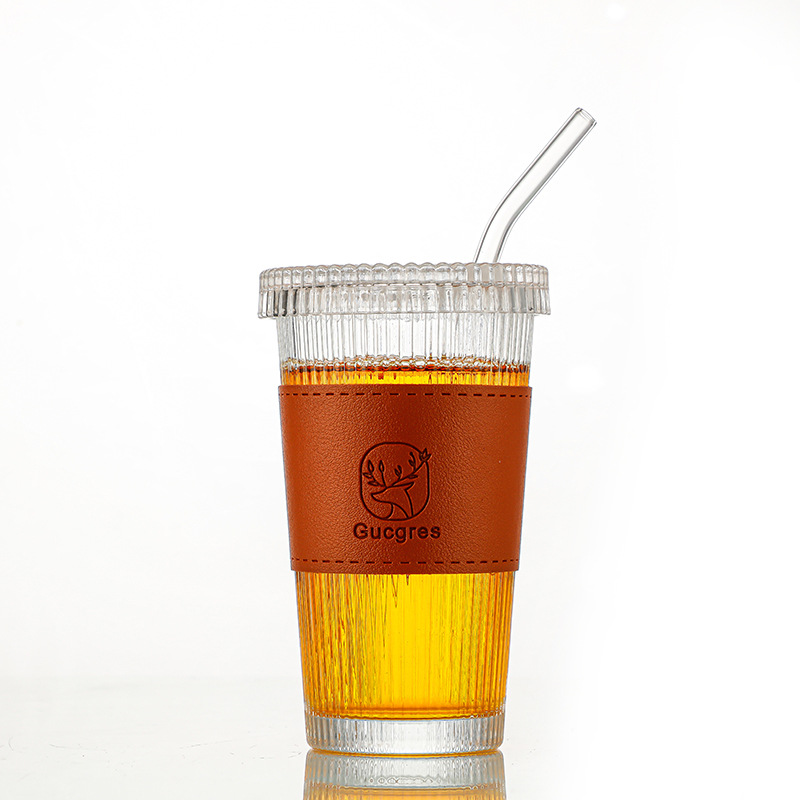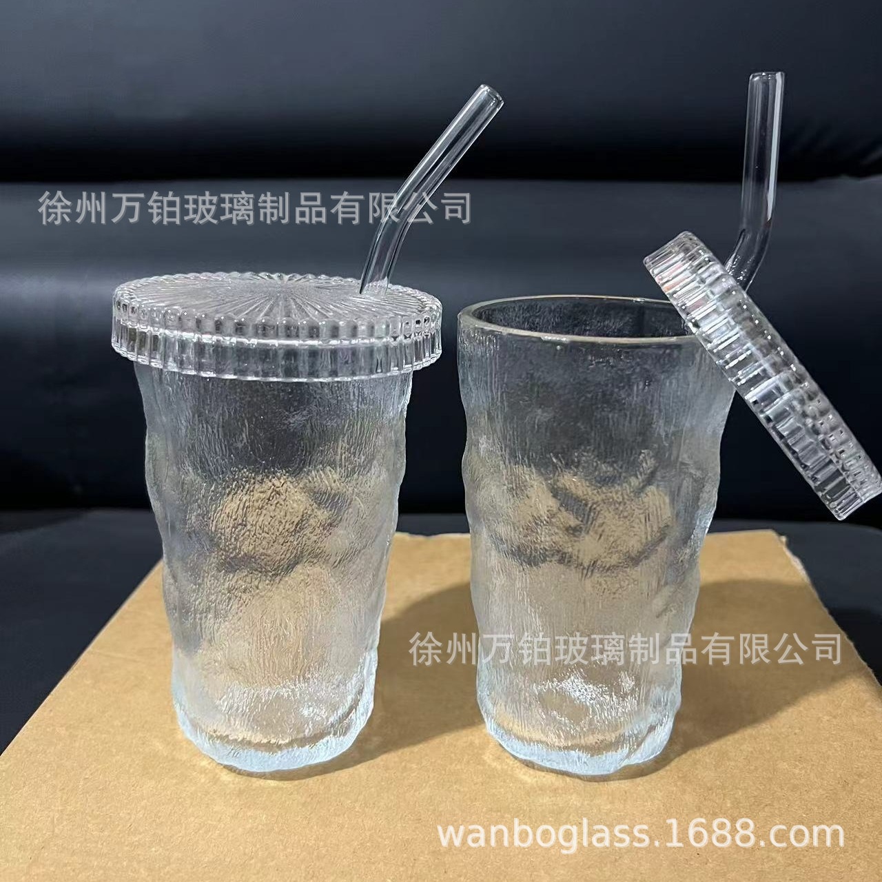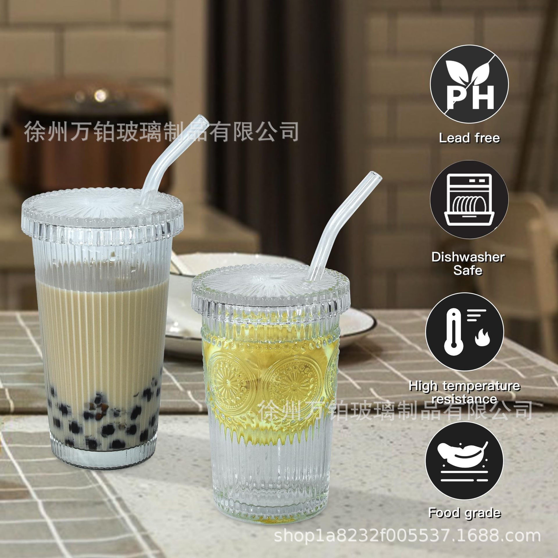 국경 간 해바라기 유리 워터 컵 뚜껑 흡입 튜브 컵 차가운 음료 우유 차 커피 컵 선물 위스키 맥주 컵