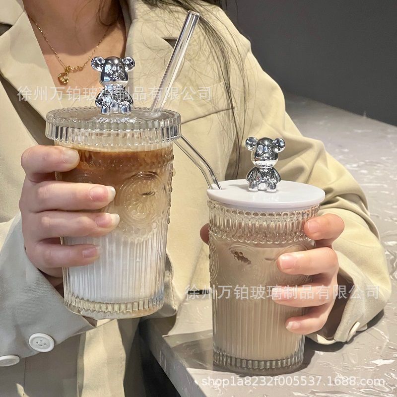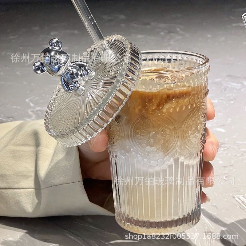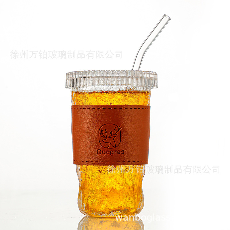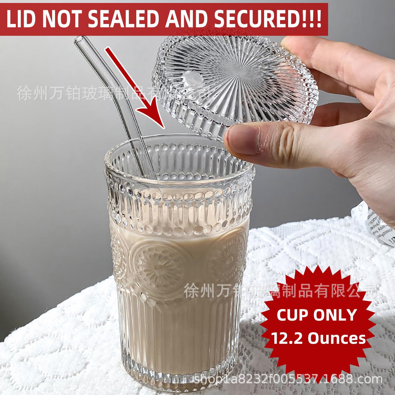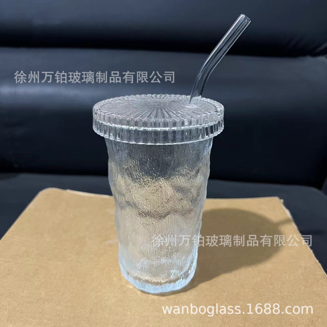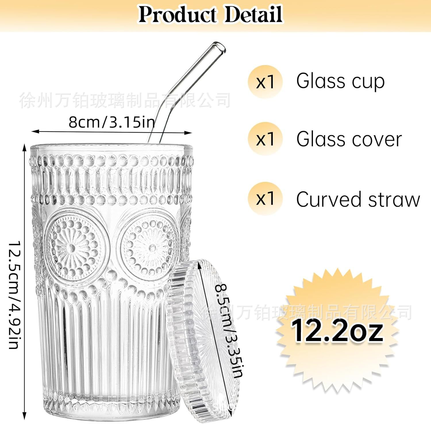 국경 간 해바라기 유리 워터 컵 뚜껑 흡입 튜브 컵 차가운 음료 우유 차 커피 컵 선물 위스키 맥주 컵