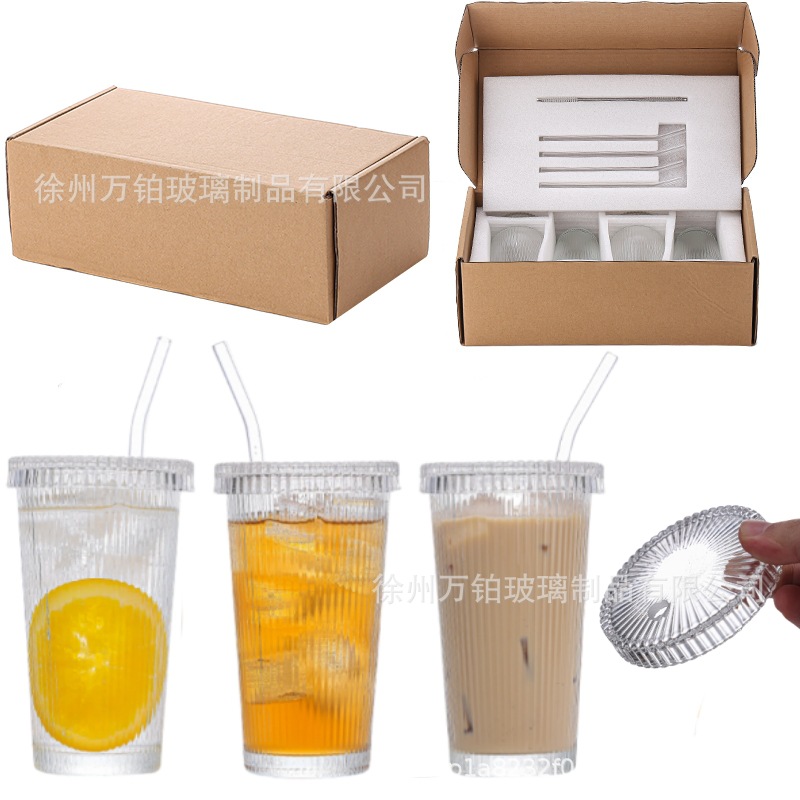 • 줄무늬 1 컵 1 뚜껑 1 컵 세트 1 짚 (국경 간 진주면)