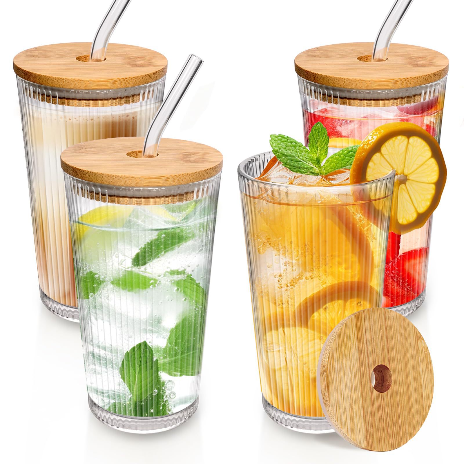 • 얼음 균열 4 컵 4 개의 뚜껑 4 컵 세트 4 개의 빨대 2 개의 빨대 브러쉬 (국경 간 진주면)