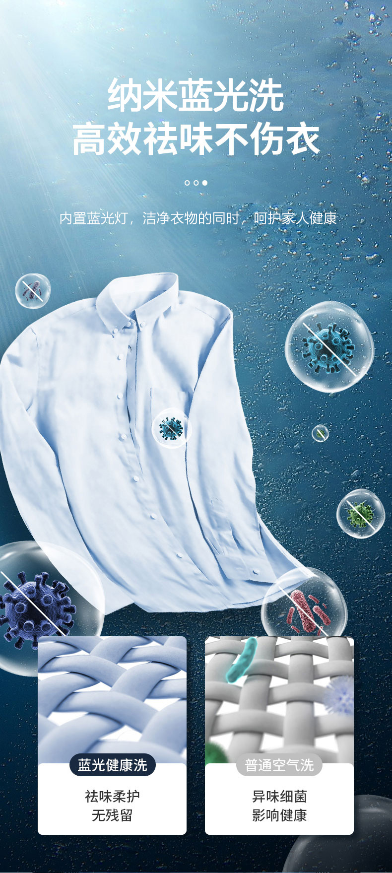 • 9KG 나노 블루라이트 + 지능형 공기 건조, 청소 필요 없음