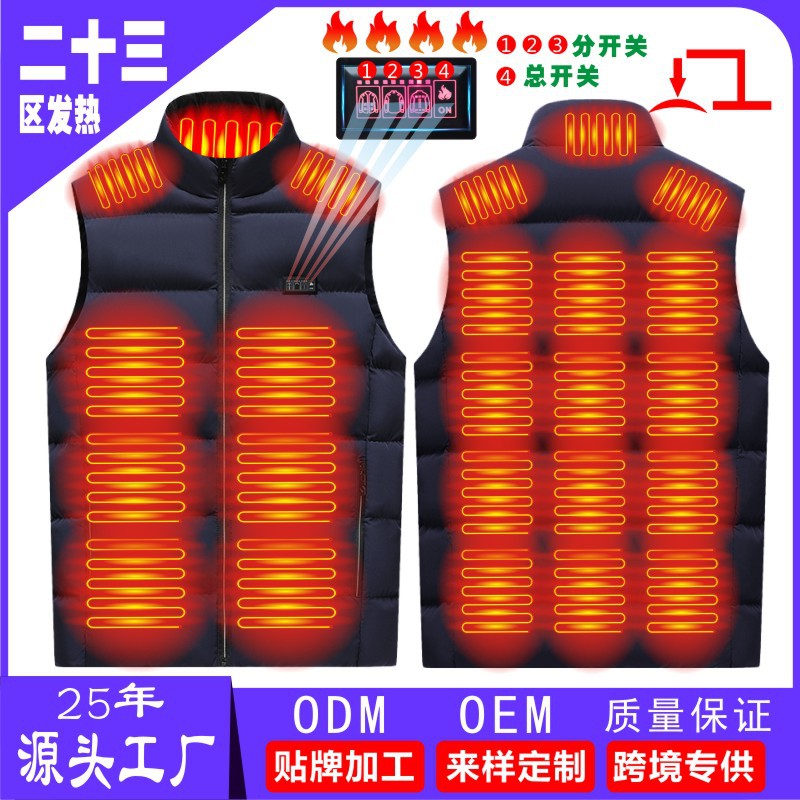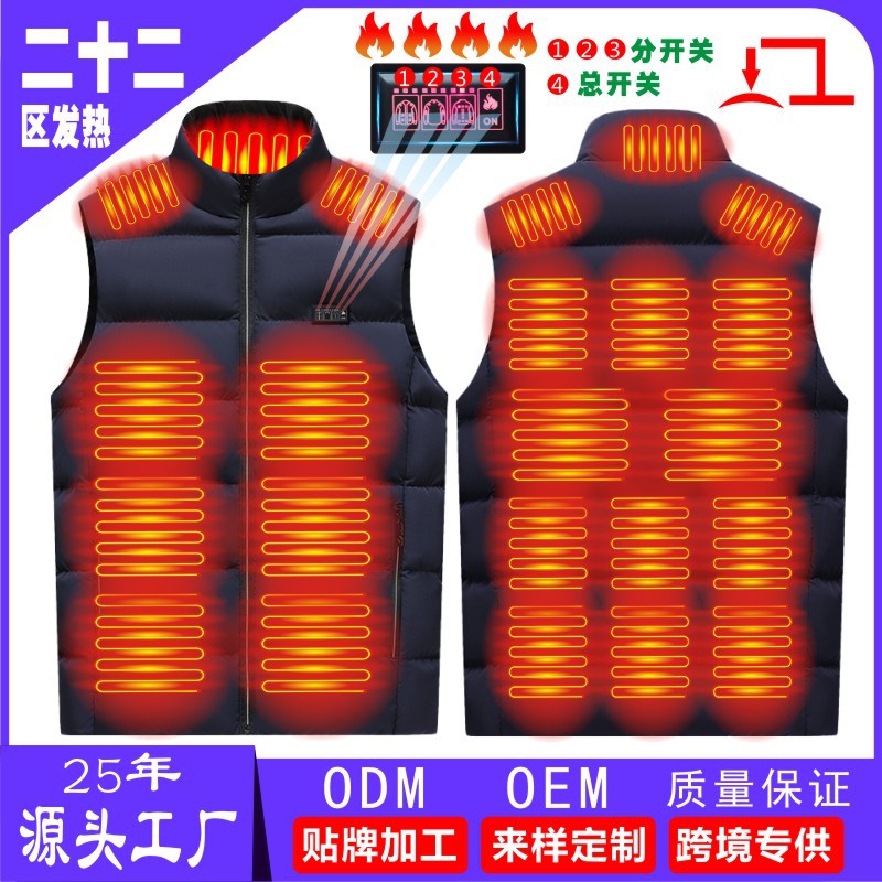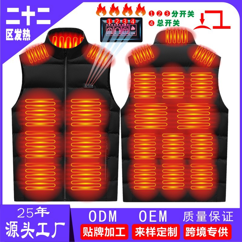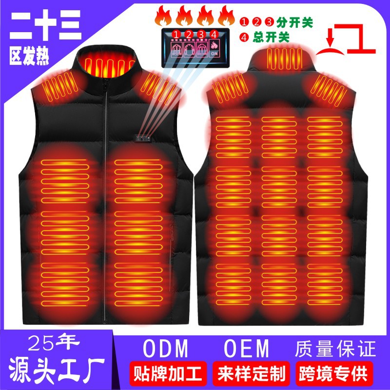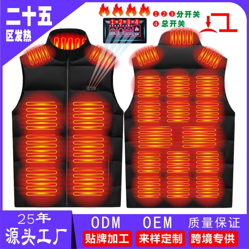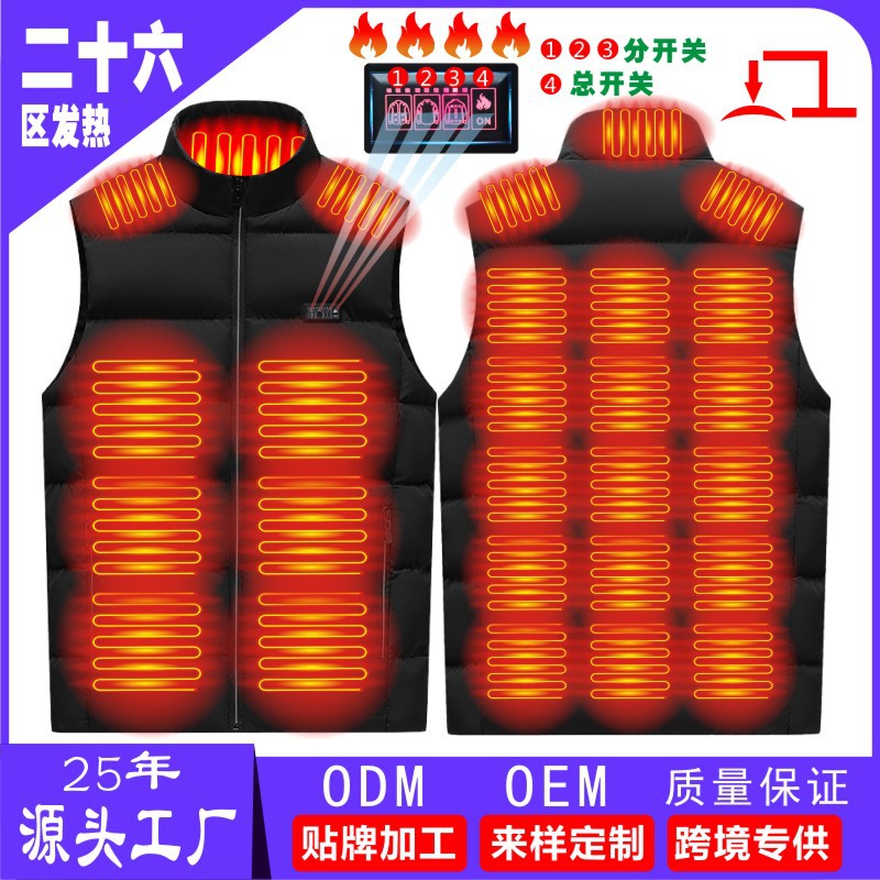 국경 간 난방 조끼 구역 26 난방 남자의 수직 칼라 전기 난방 면 조끼 지능형 일정한 온도 난방 따뜻한 면 재킷
