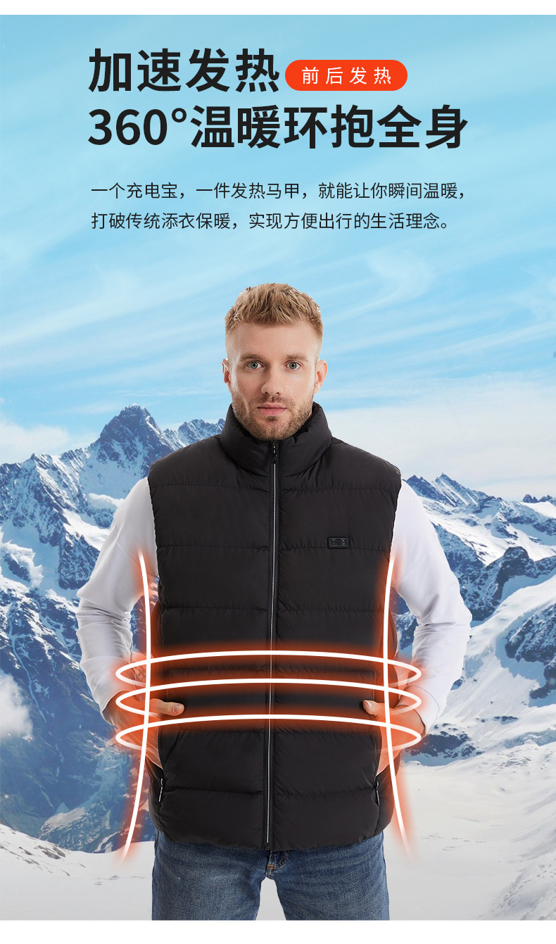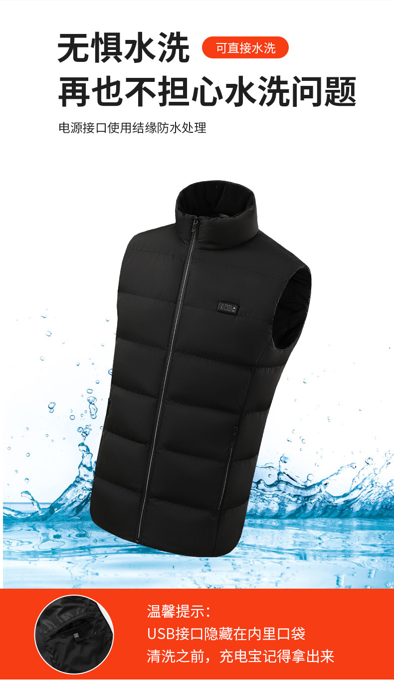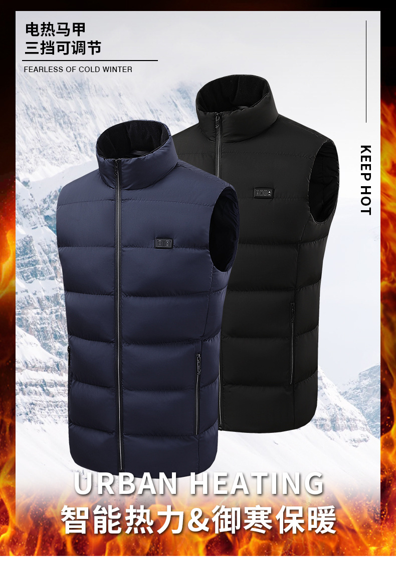 국경 간 난방 조끼 구역 26 난방 남자의 수직 칼라 전기 난방 면 조끼 지능형 일정한 온도 난방 따뜻한 면 재킷스토어 가기