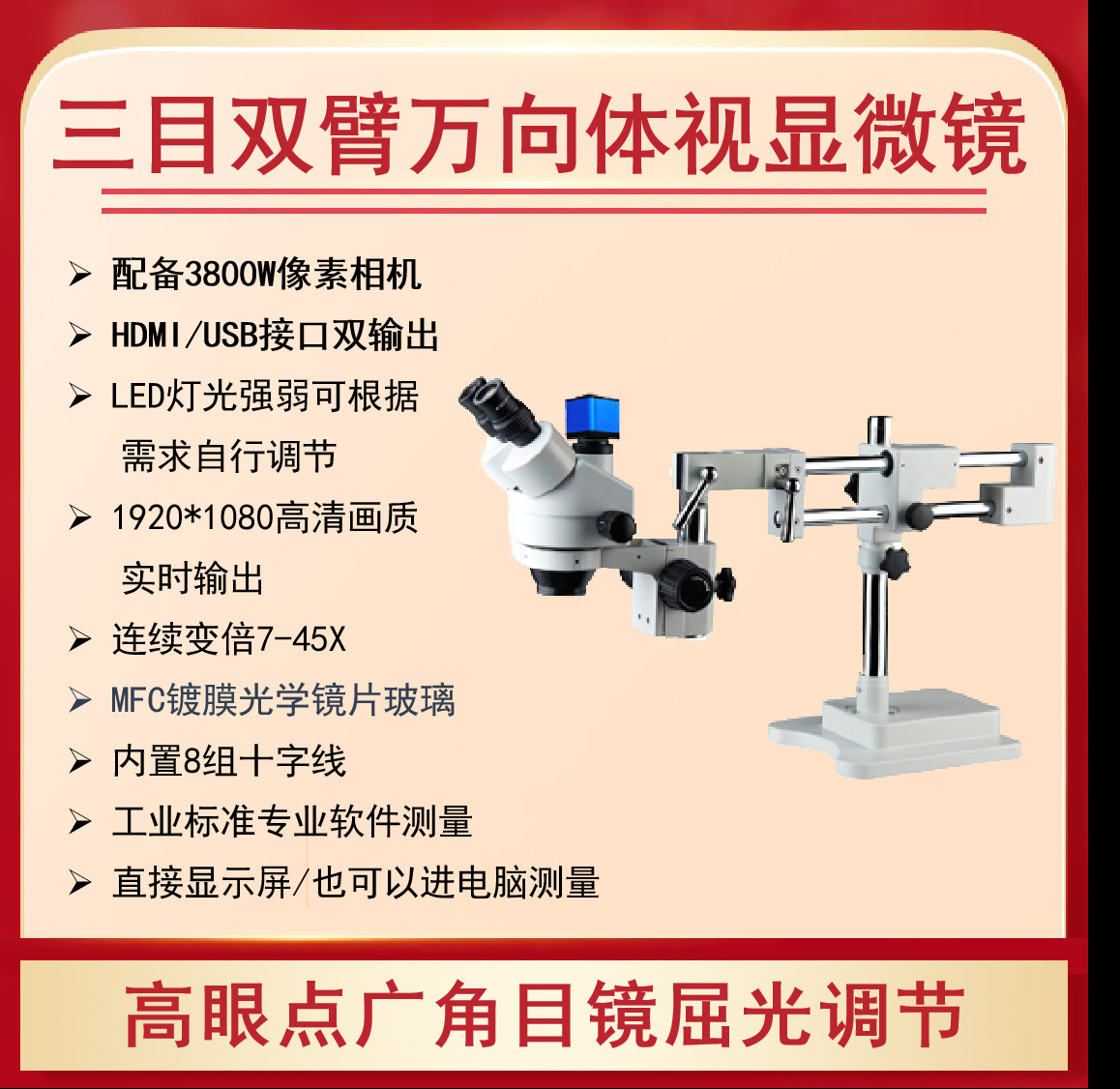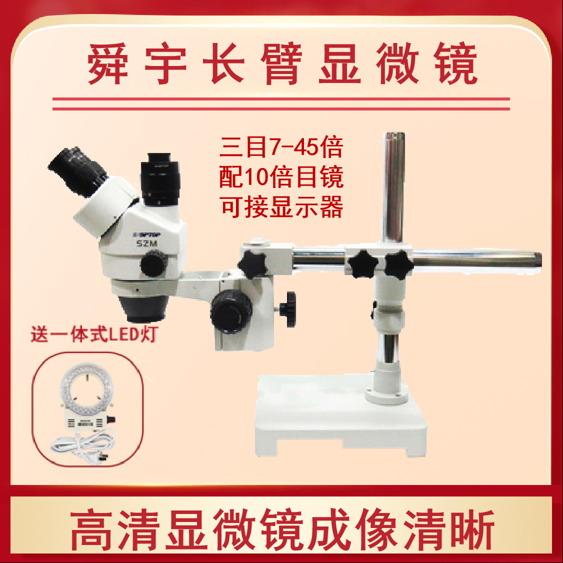 • 7-45x 삼안 단일 극 긴 팔 범용 현미경(4800W 카메라 포함)