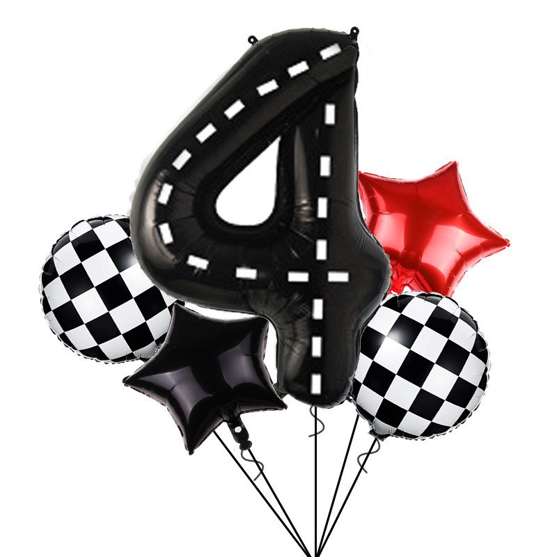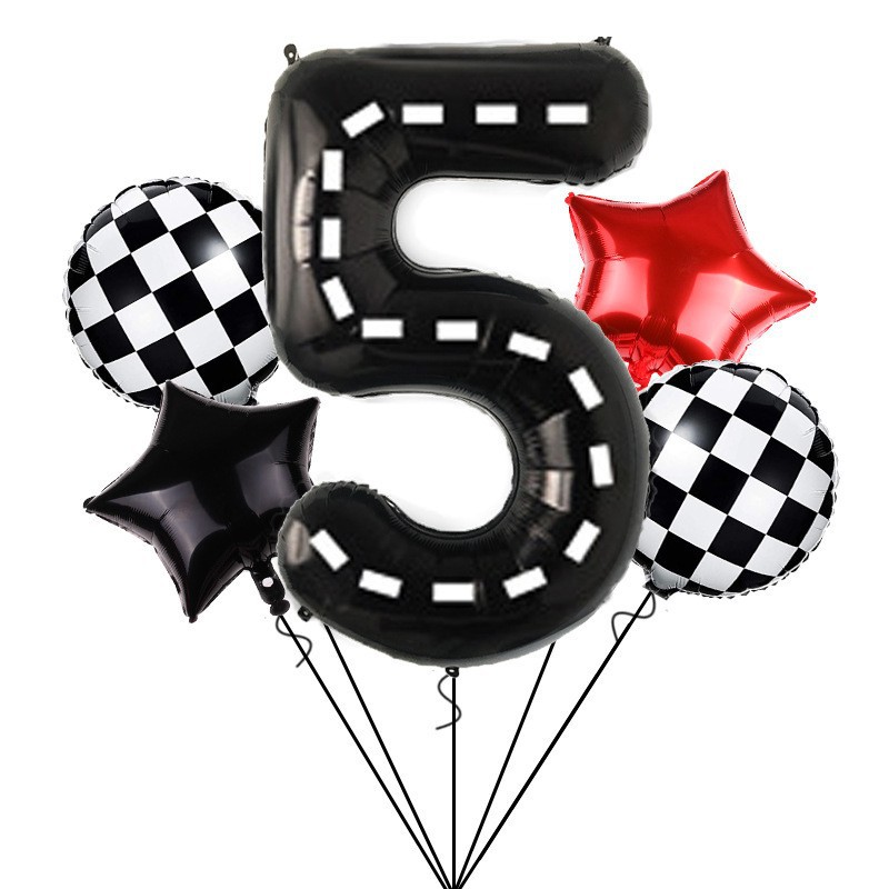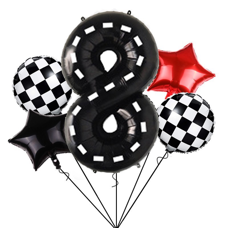 새로운 레이싱 40 인치 흑백 줄무늬 디지털 풍선 세트 생일 레이싱 테마 파티 장식 용품