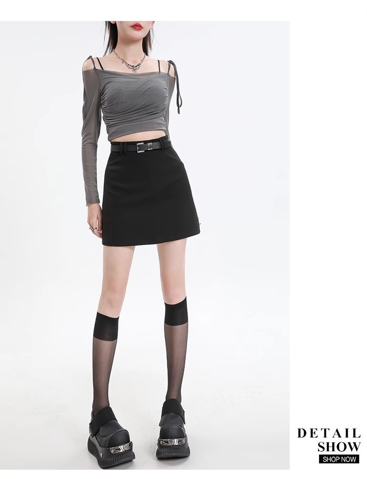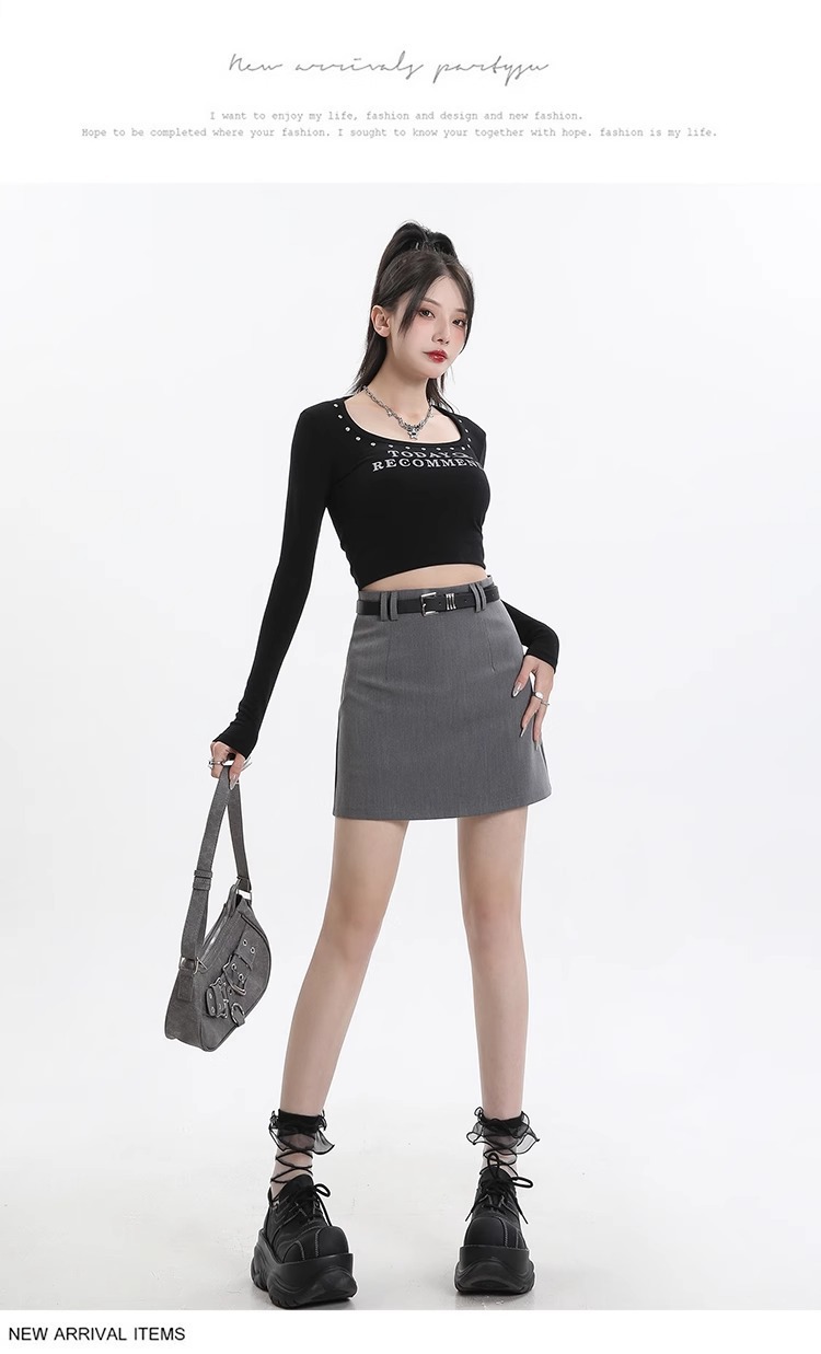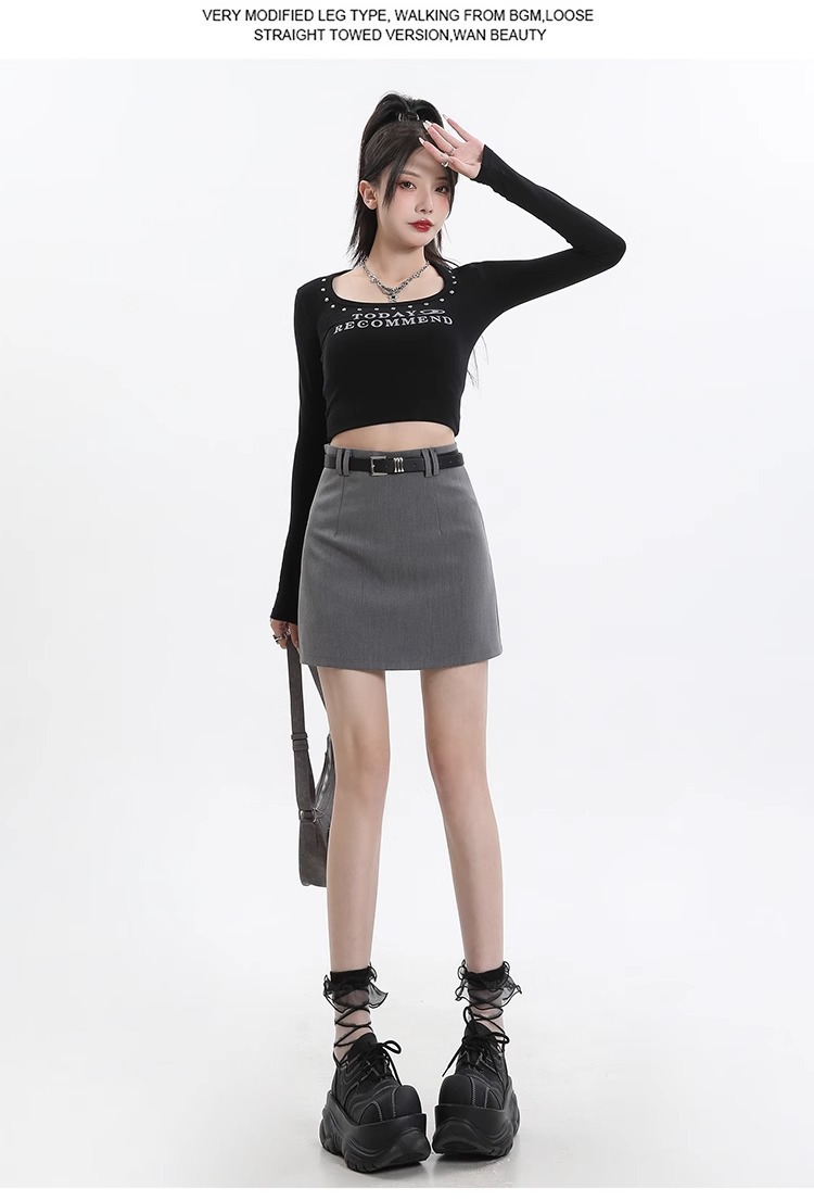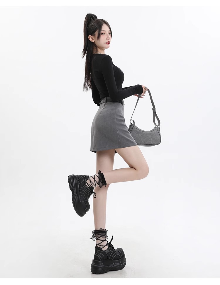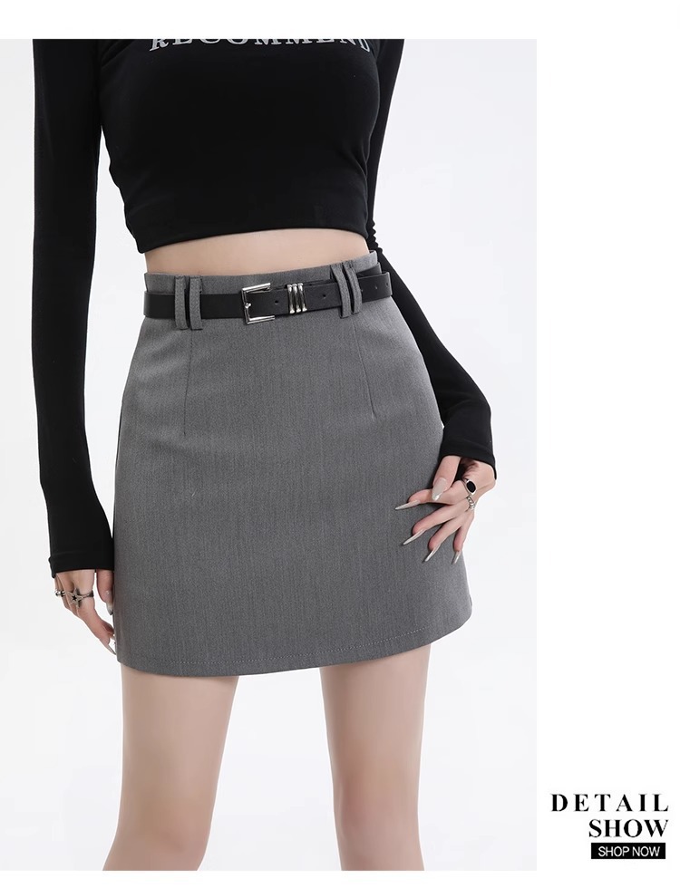 회색 세트 스커트 여성의 봄과 가을 폭발 작은 높은 허리 슬림 핏 유행 A 라인 스커트 슬리밍 엉덩이 스커트스토어 가기