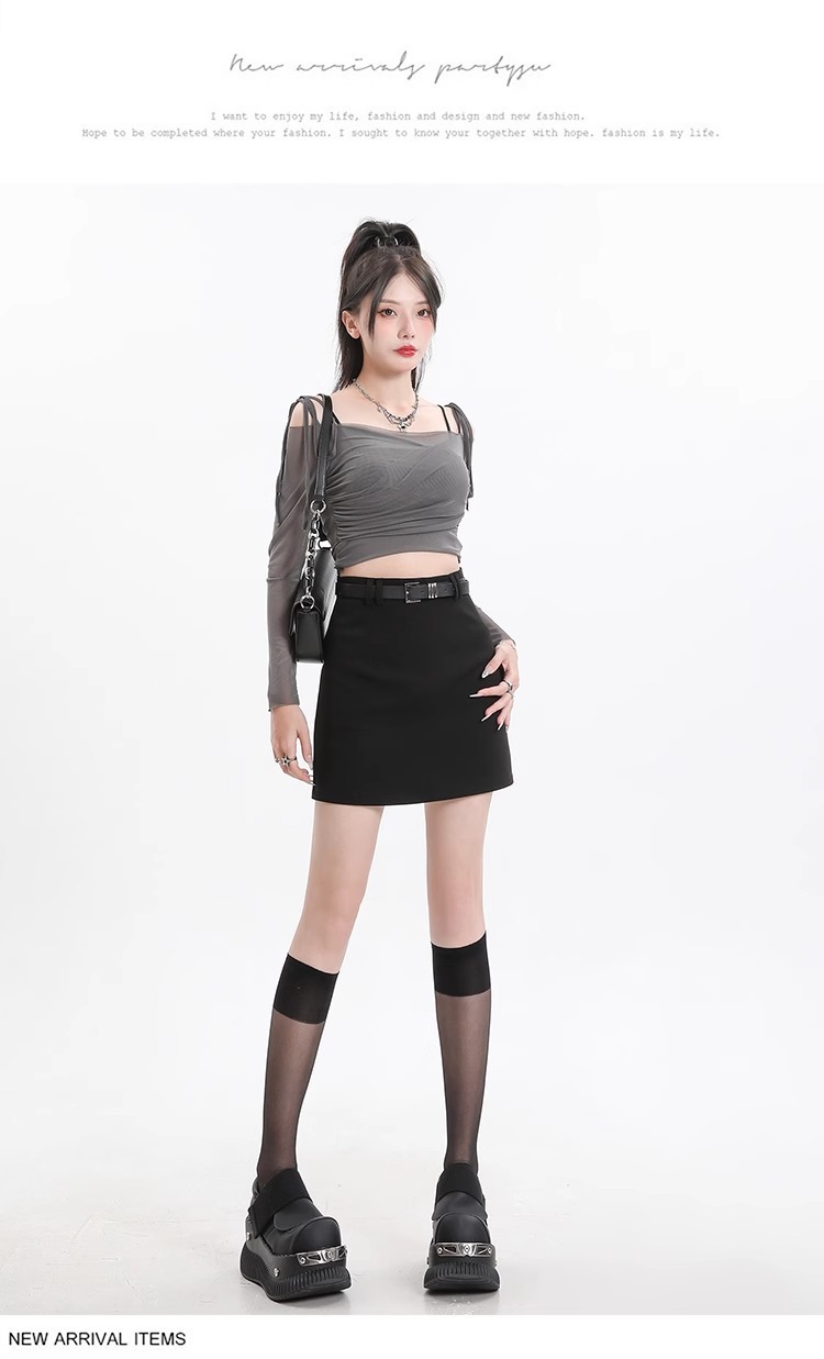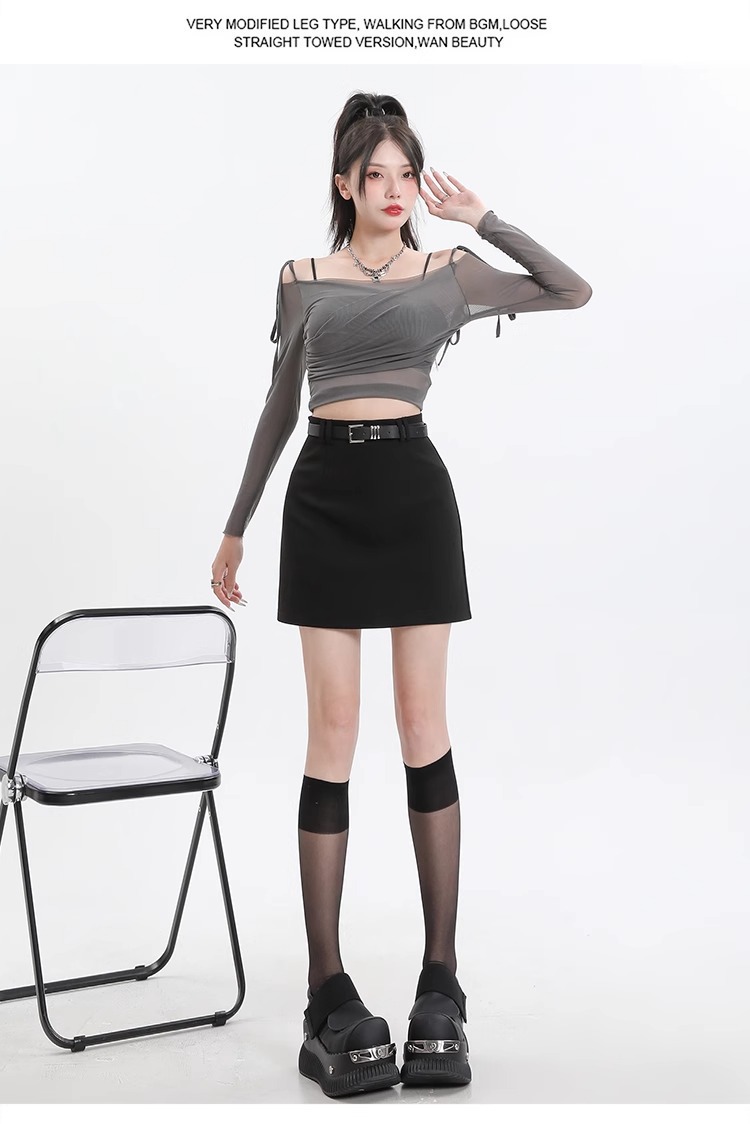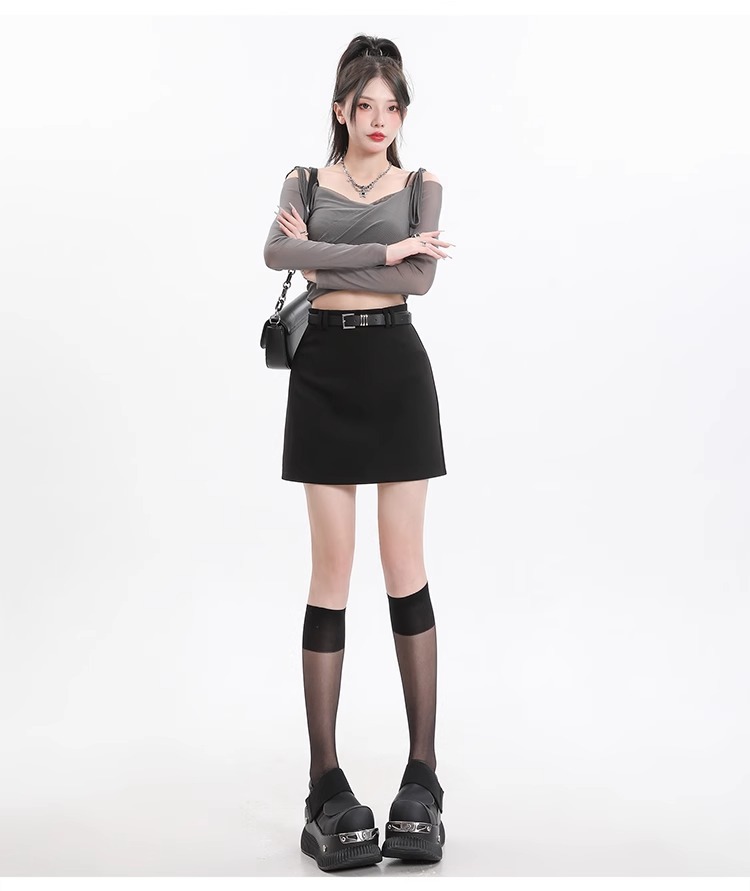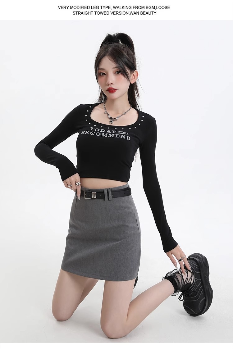 회색 세트 스커트 여성의 봄과 가을 폭발 작은 높은 허리 슬림 핏 유행 A 라인 스커트 슬리밍 엉덩이 스커트스토어 가기