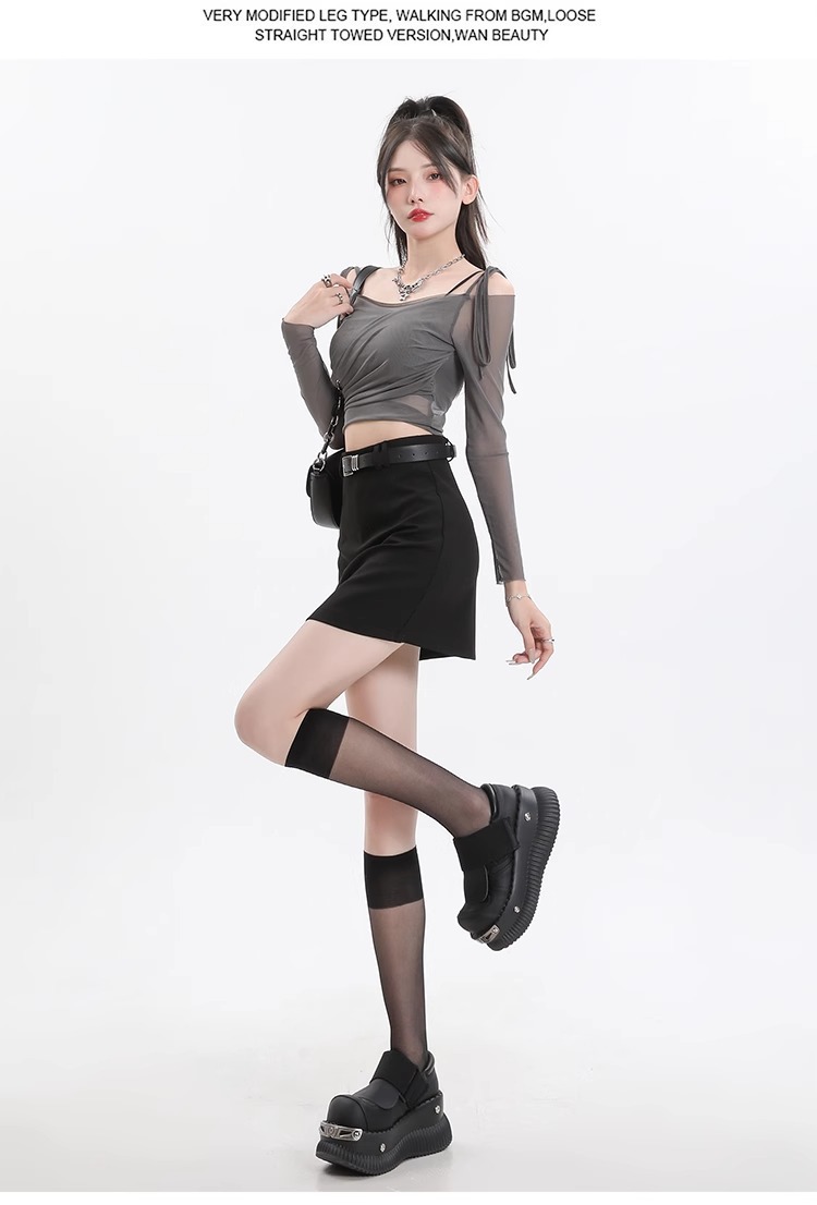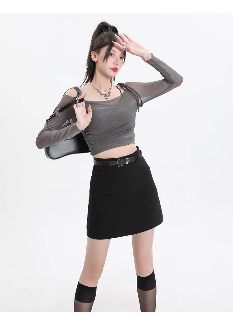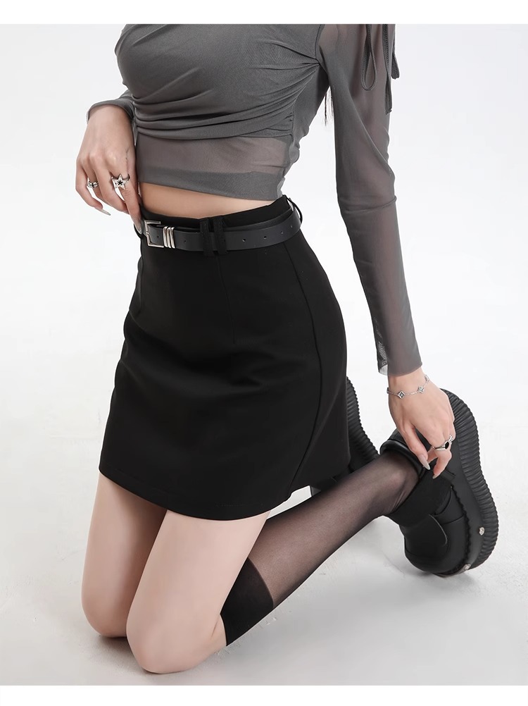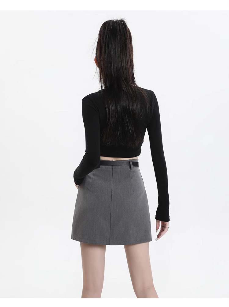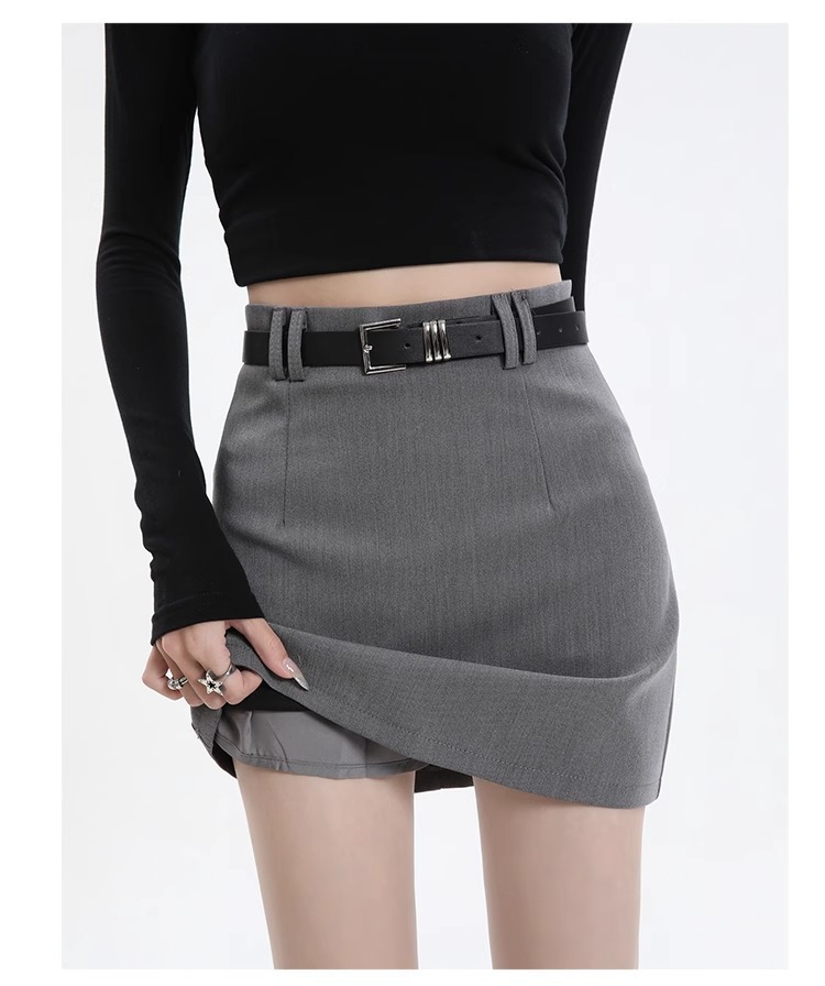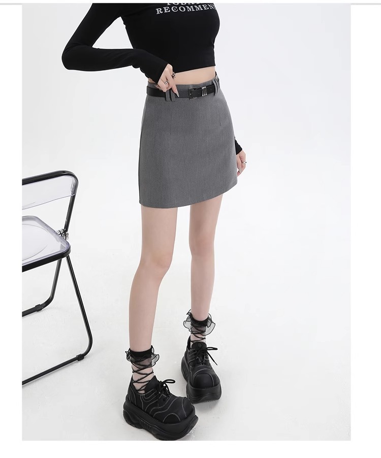 회색 세트 스커트 여성의 봄과 가을 폭발 작은 높은 허리 슬림 핏 유행 A 라인 스커트 슬리밍 엉덩이 스커트