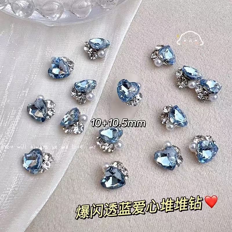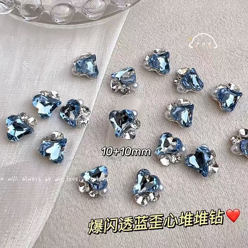 • Z226 - 완제품 큐빅 장식 - 블루 하트 비대칭