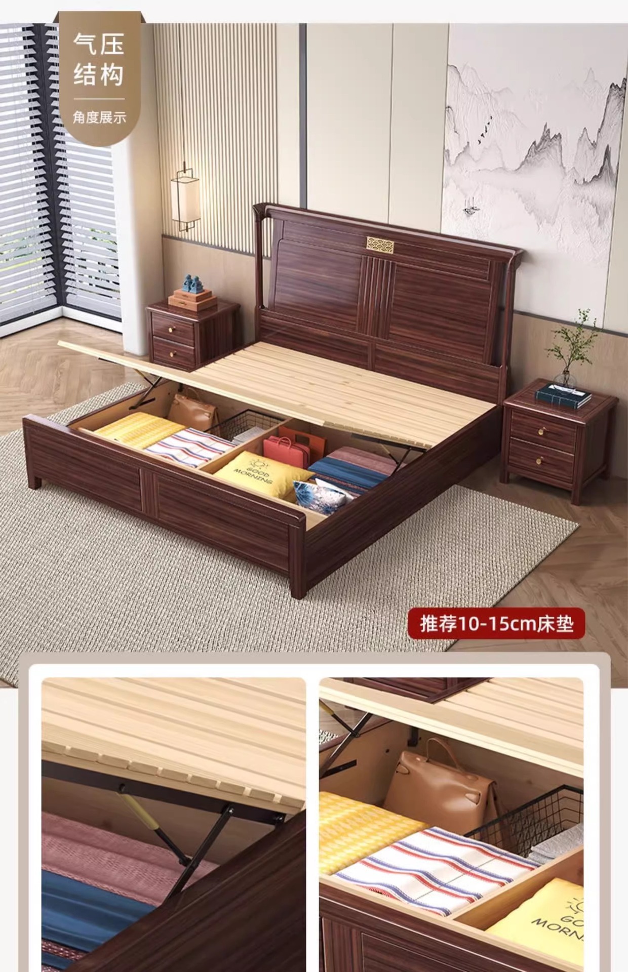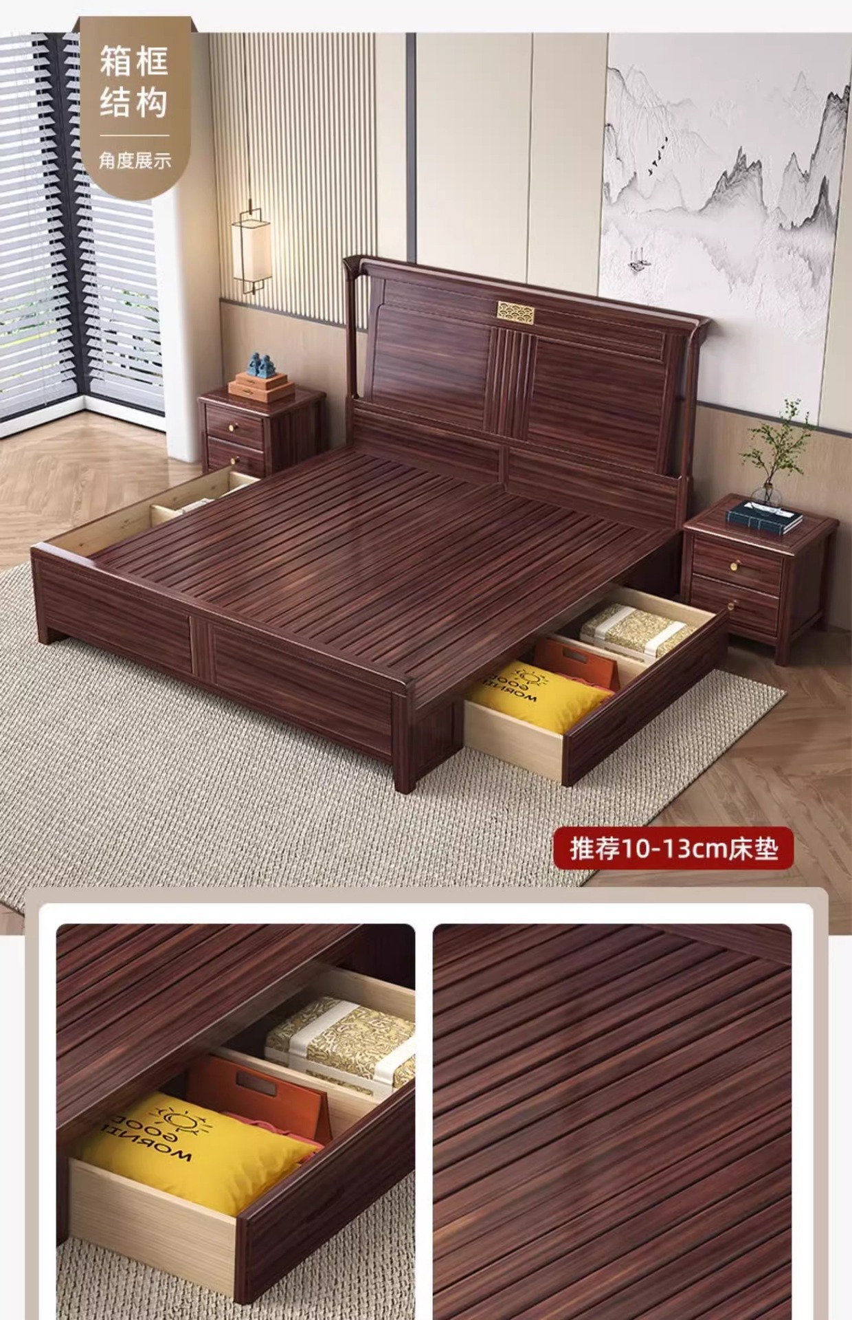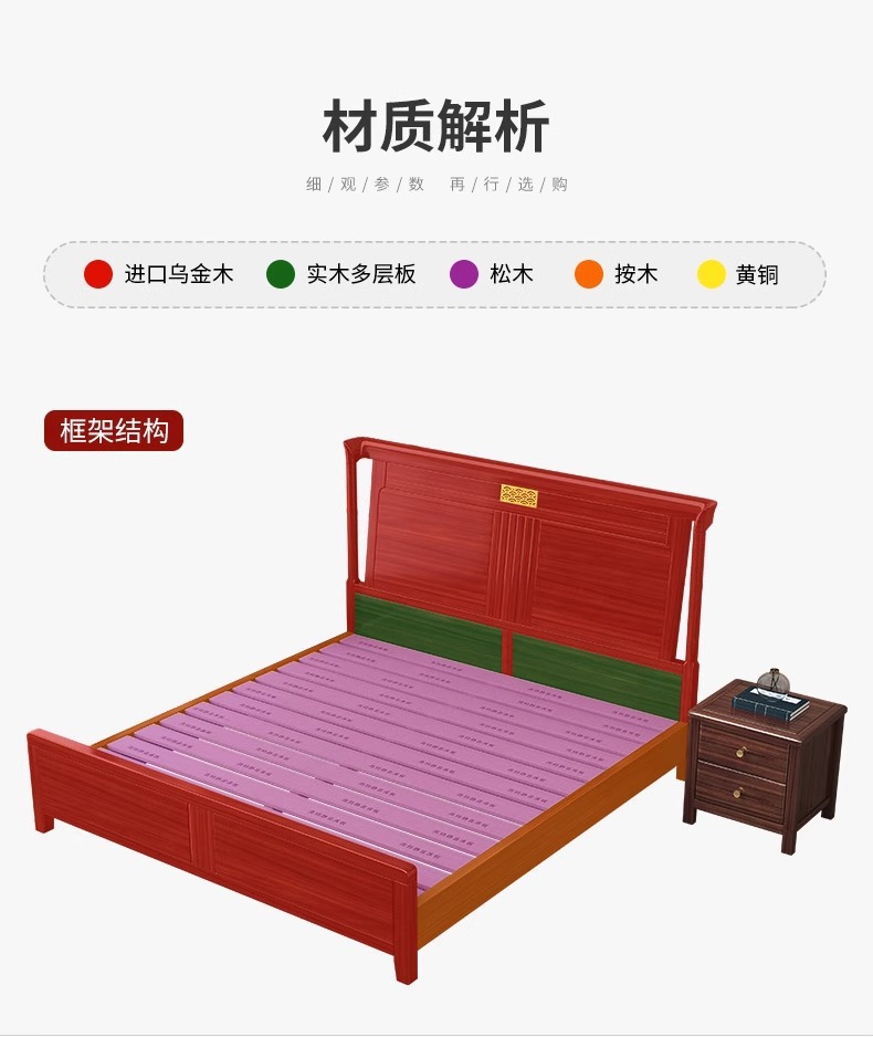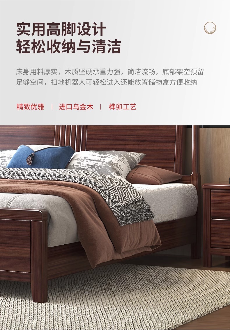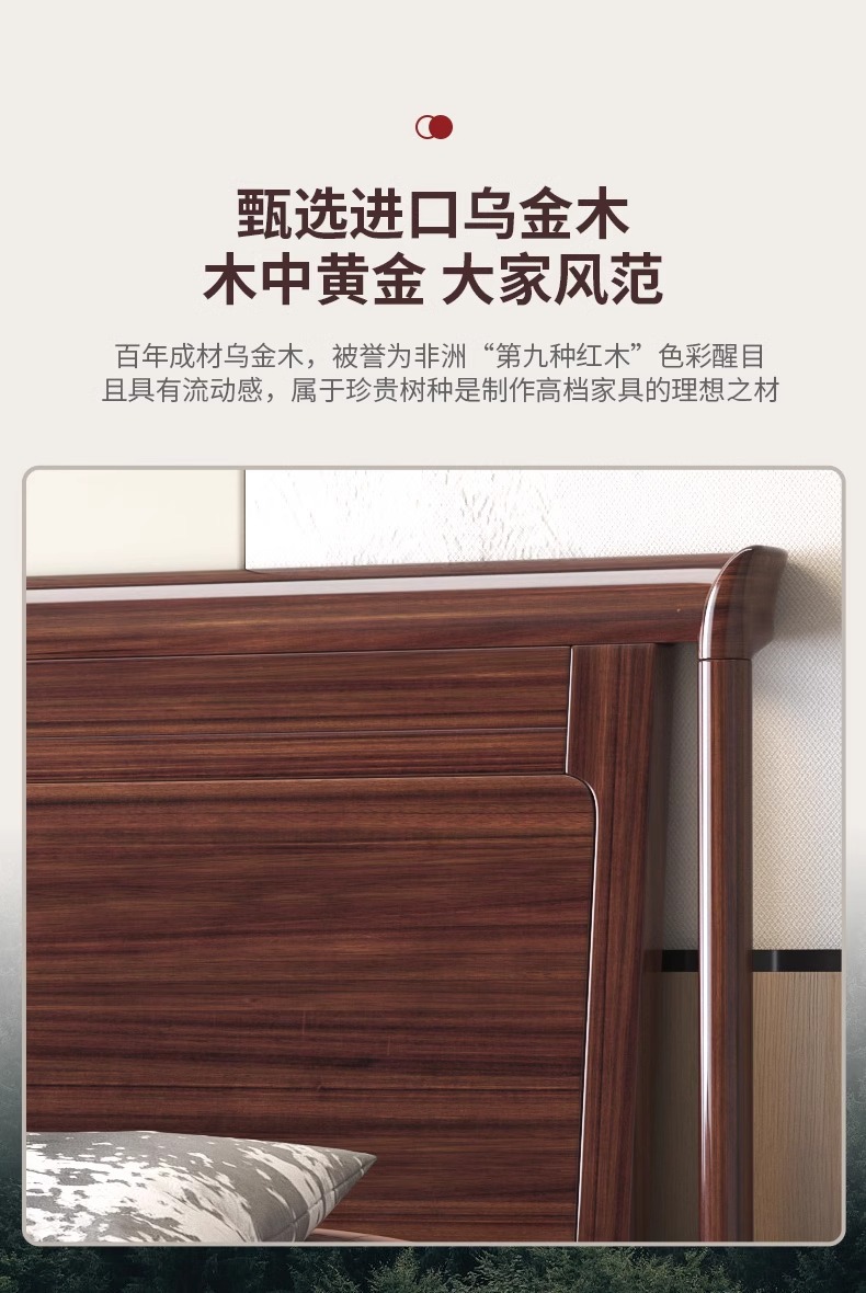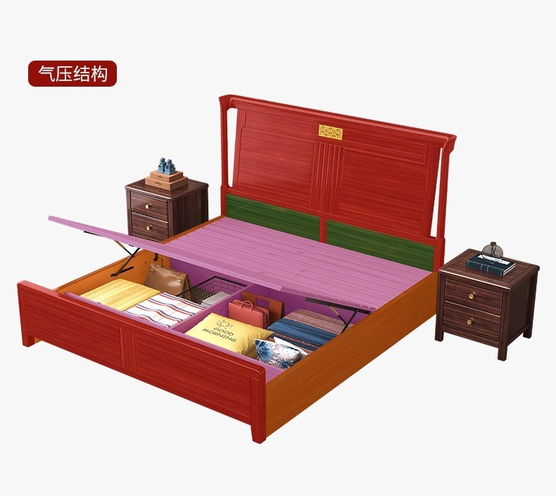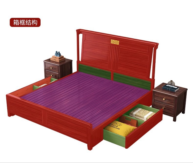 새로운 중국 스타일의 Ebony 단단한 나무 침대 1.8 m 더블 침실 높은 상자 저장 중국 스타일 2*2.2 m 빌라 큰 침대
