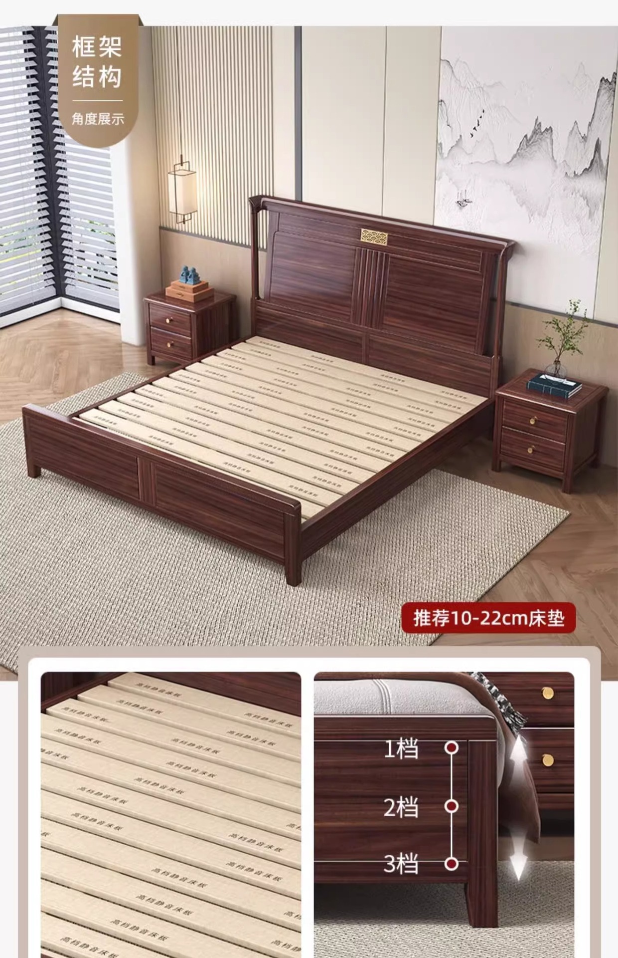 • 다크 브라운 매트와 함께 10cm 높이 침대