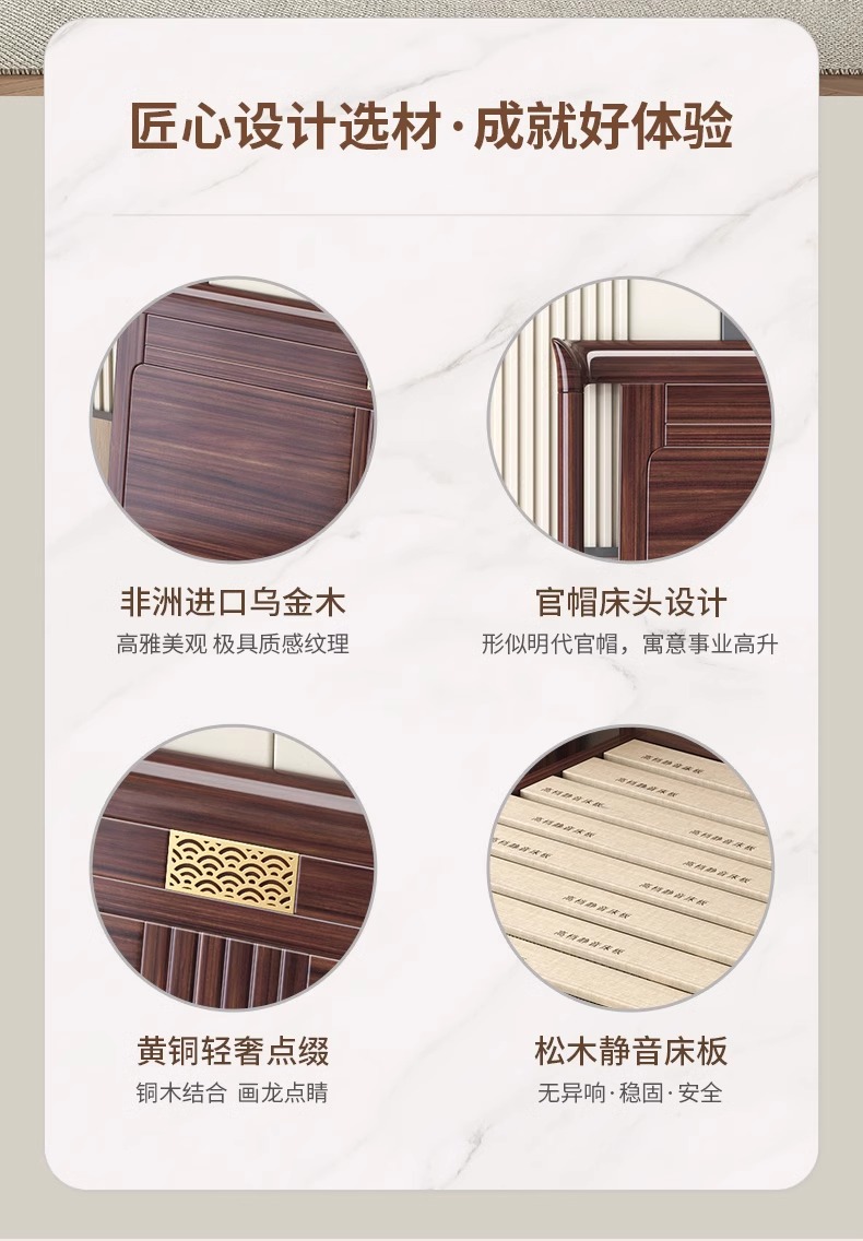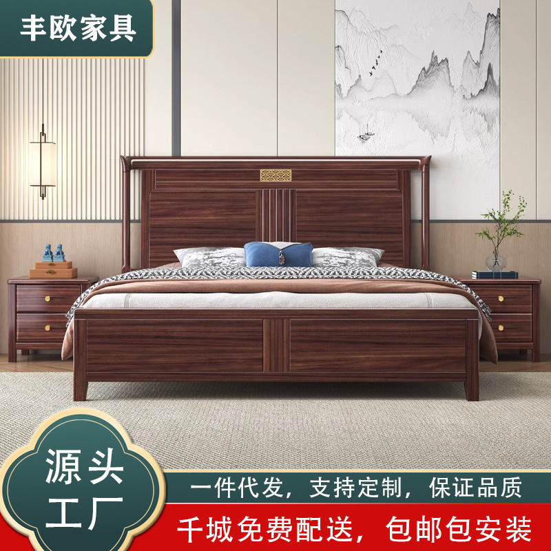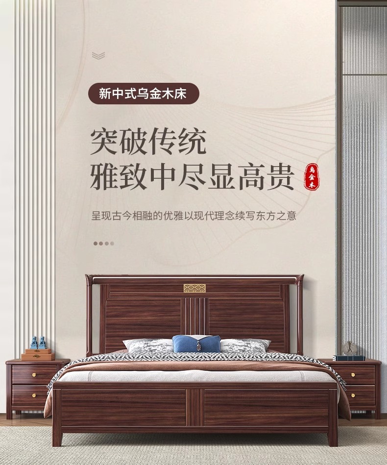새로운 중국 스타일의 Ebony 단단한 나무 침대 1.8 m 더블 침실 높은 상자 저장 중국 스타일 2*2.2 m 빌라 큰 침대스토어 가기