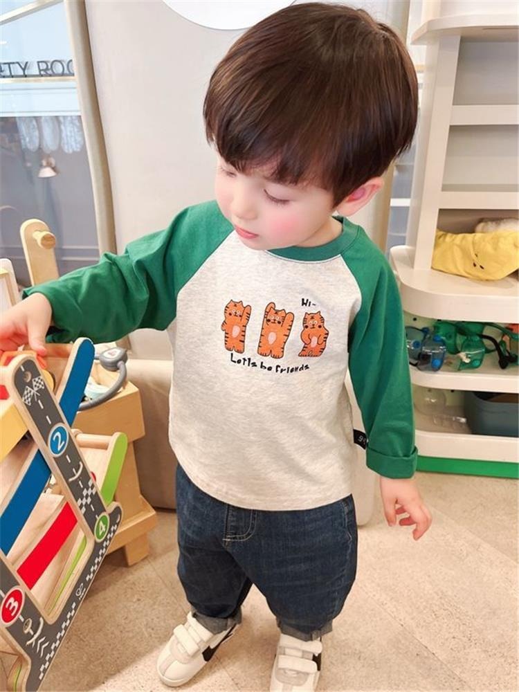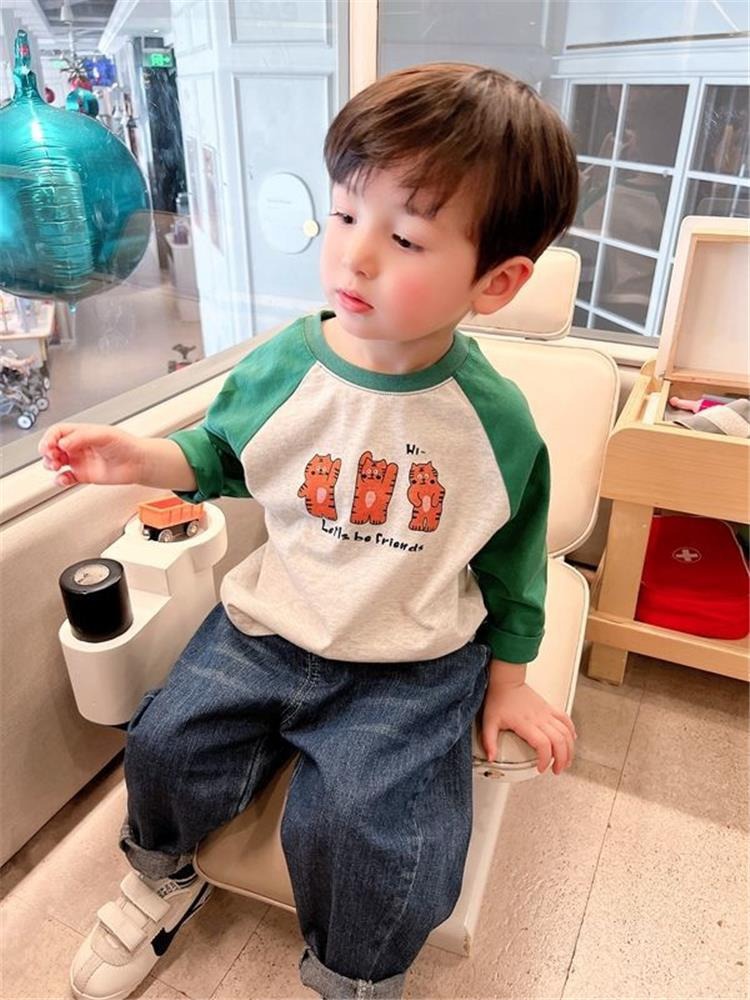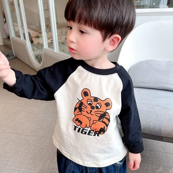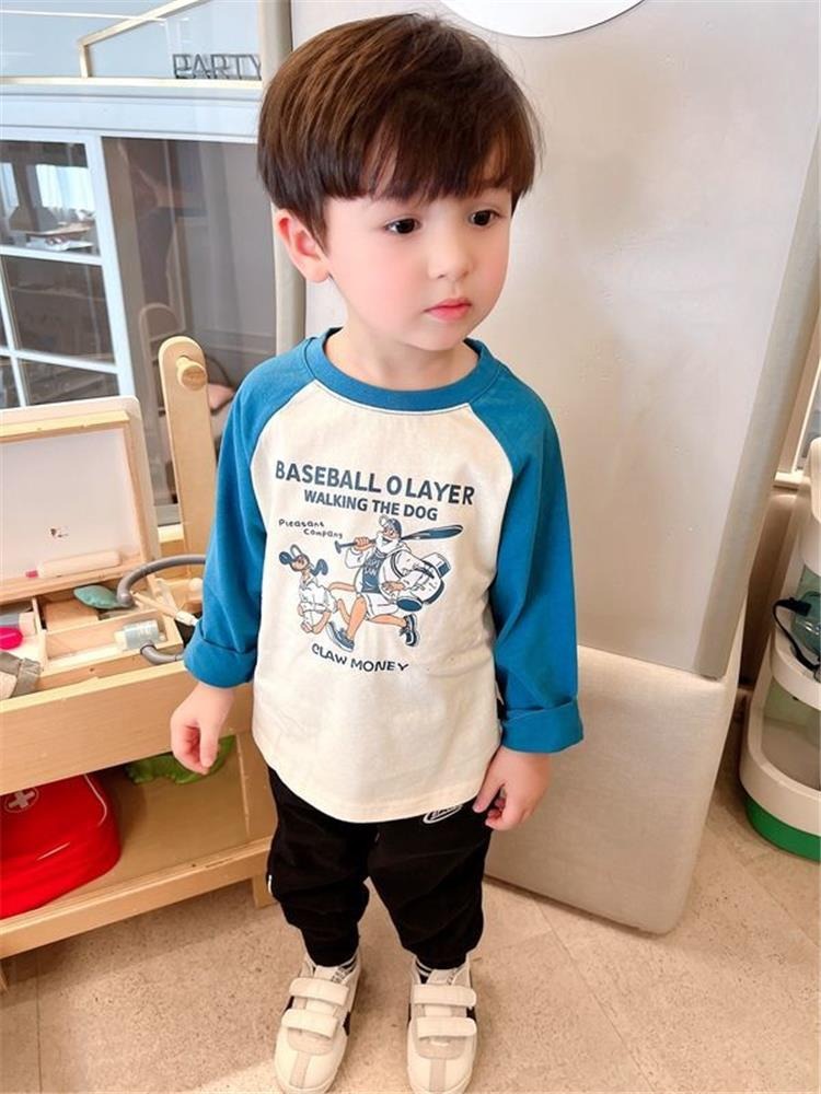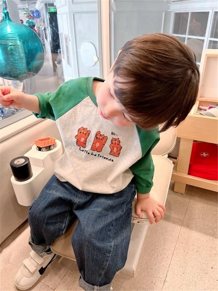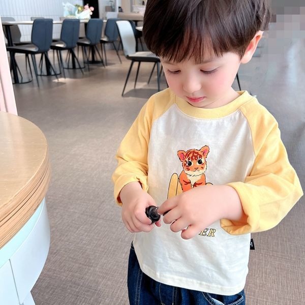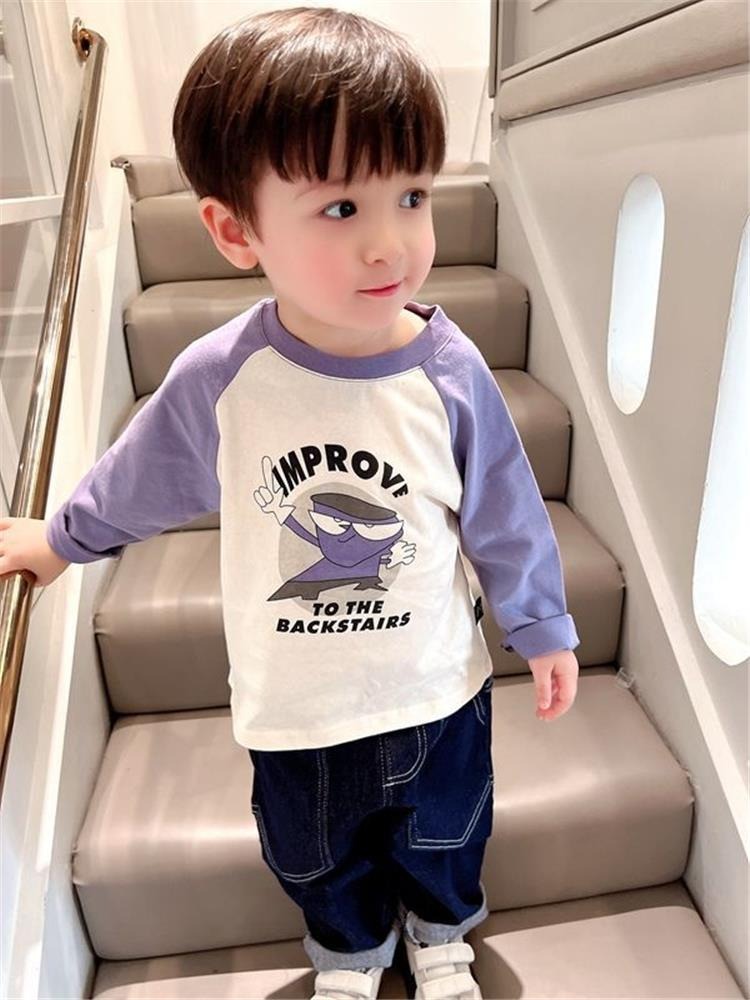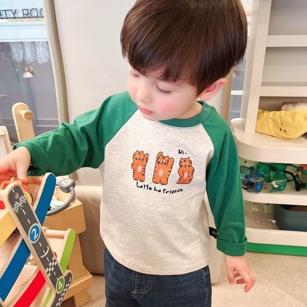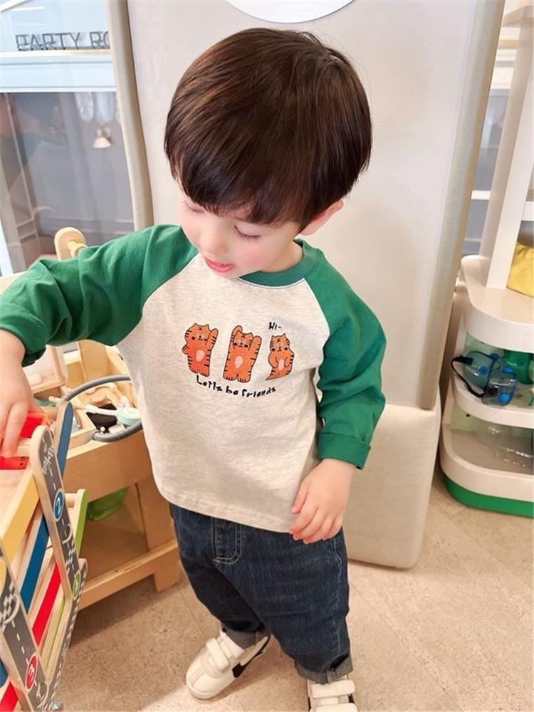 거대한 부드러운 찹쌀 ~ 빗질면 아동복 어깨 긴팔 티셔츠 2024 가을 새 아기 만화 탑 셔츠 조수스토어 가기