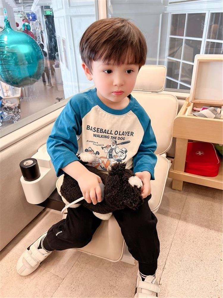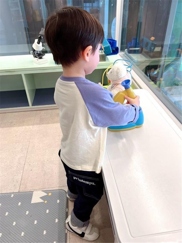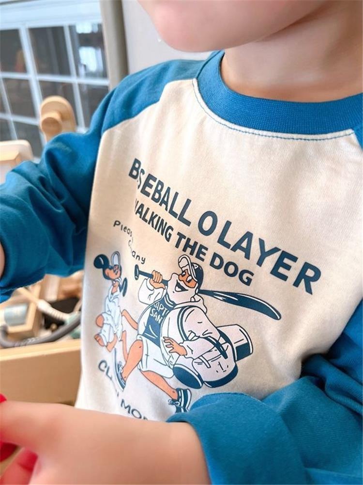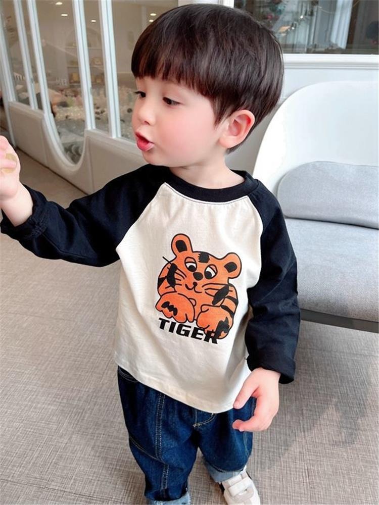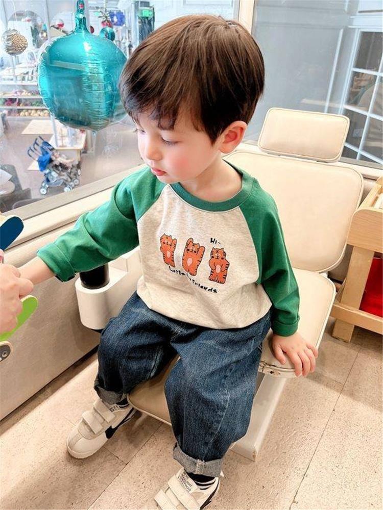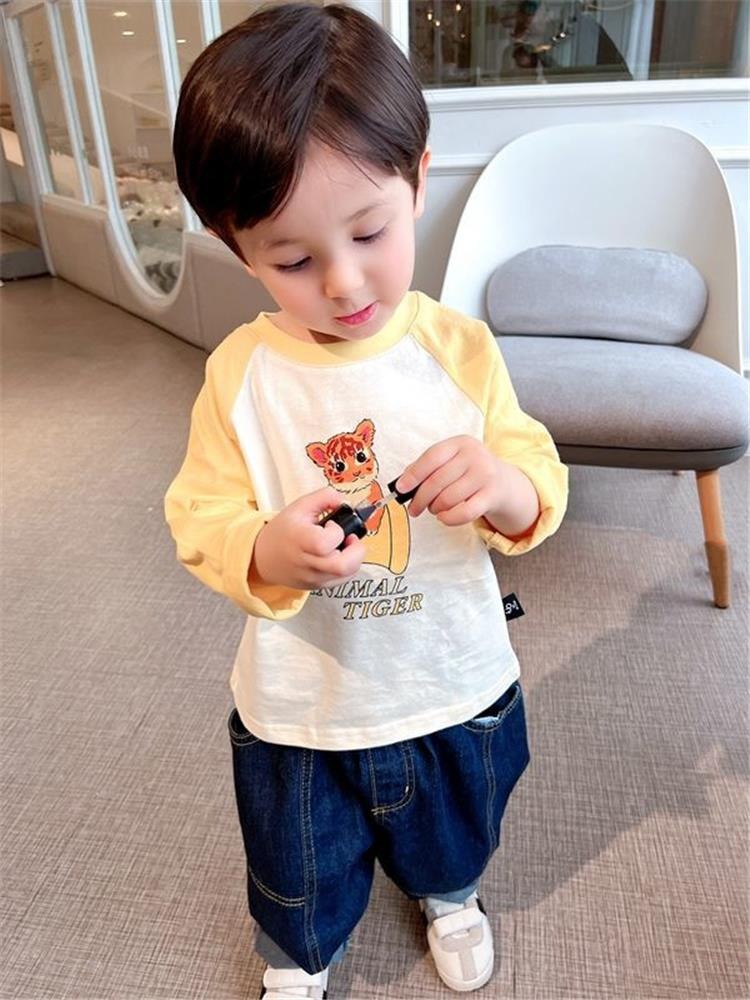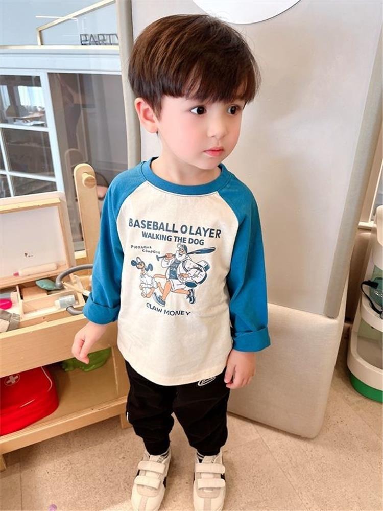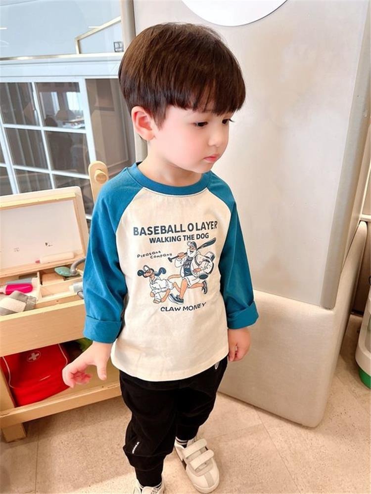 거대한 부드러운 찹쌀 ~ 빗질면 아동복 어깨 긴팔 티셔츠 2024 가을 새 아기 만화 탑 셔츠 조수스토어 가기