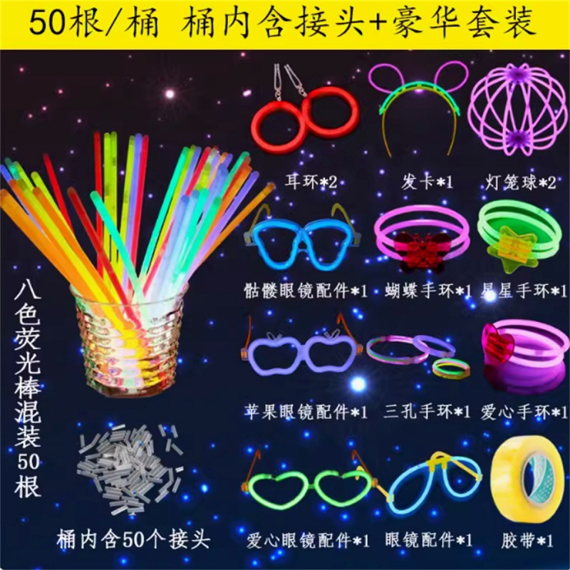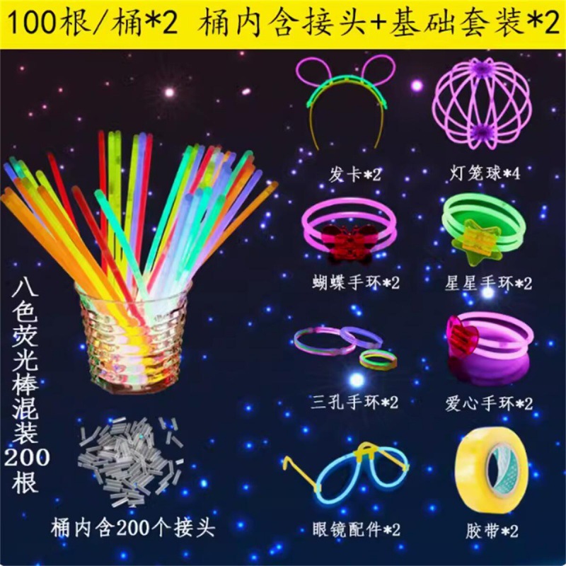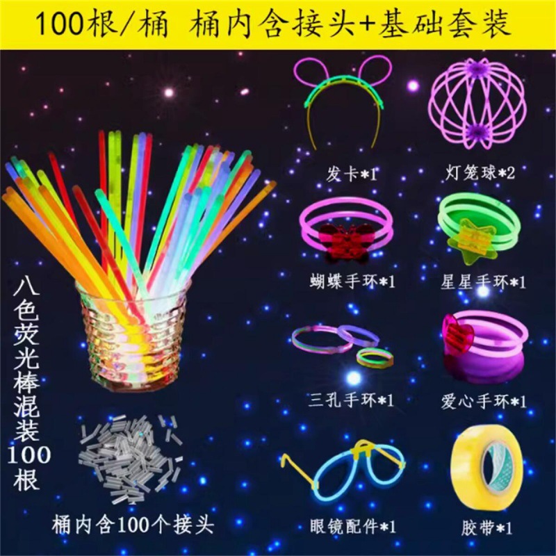글로우 스틱 어린이 빛나는 팔찌 DIY 장난감 티크 토크 부모-아동 형광 댄스 휴일 파티 야외 캠핑