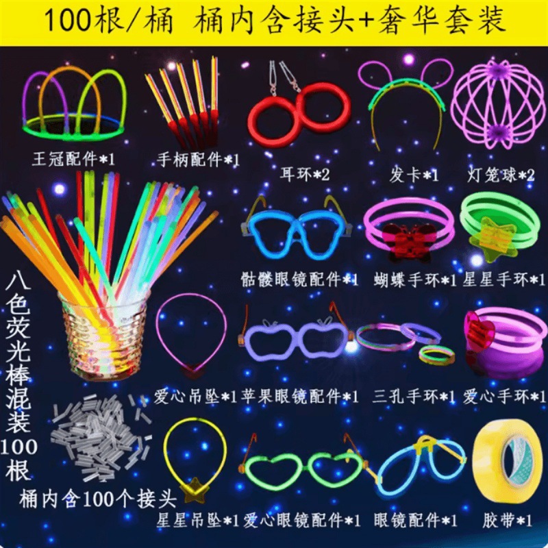 글로우 스틱 어린이 빛나는 팔찌 DIY 장난감 티크 토크 부모-아동 형광 댄스 휴일 파티 야외 캠핑스토어 가기