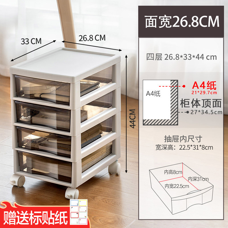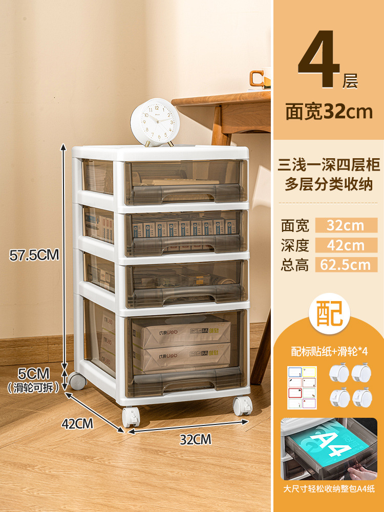 • 2023 신형 [투명 커피] 32cm 얕은 3개와 깊은 1개 4단 캐비닛에는 범용 바퀴가 함께 제공됩니다.