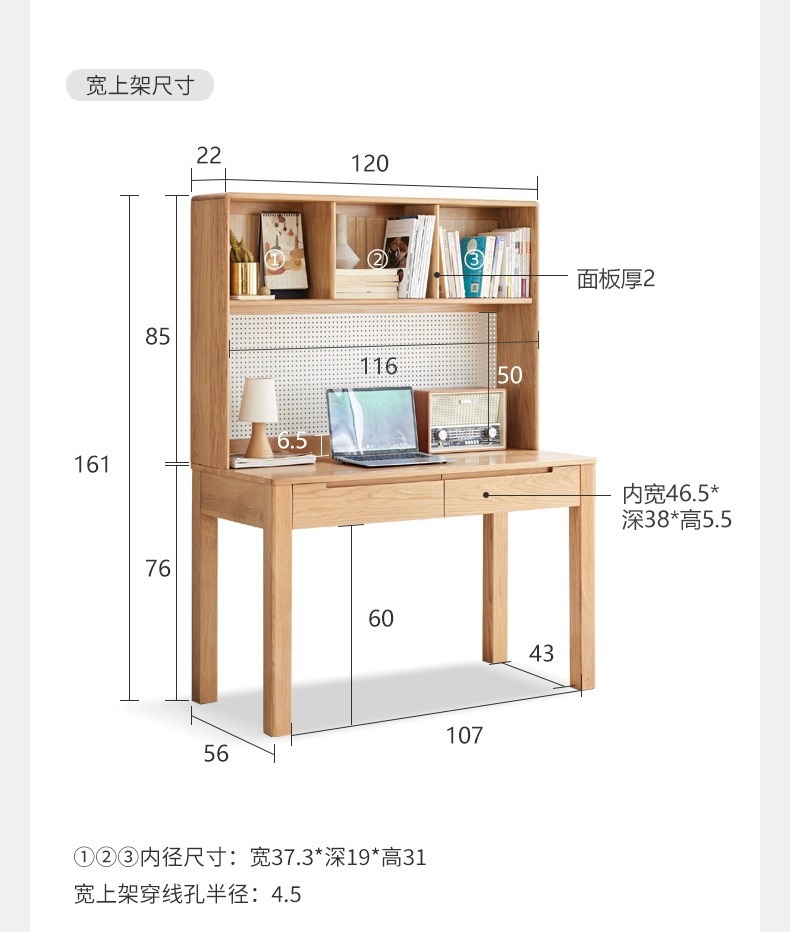 • 책장이 있는 1.2m 책상: 1200*560*1610