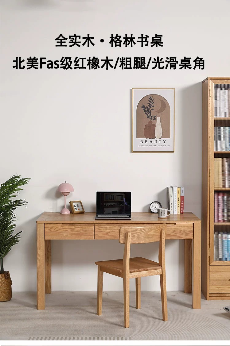 모든 솔리드 우드 데스크 북미 퓨어 레드 오크 로그 스터디 테이블 간단한 필기 데스크 스터디 룸스토어 가기