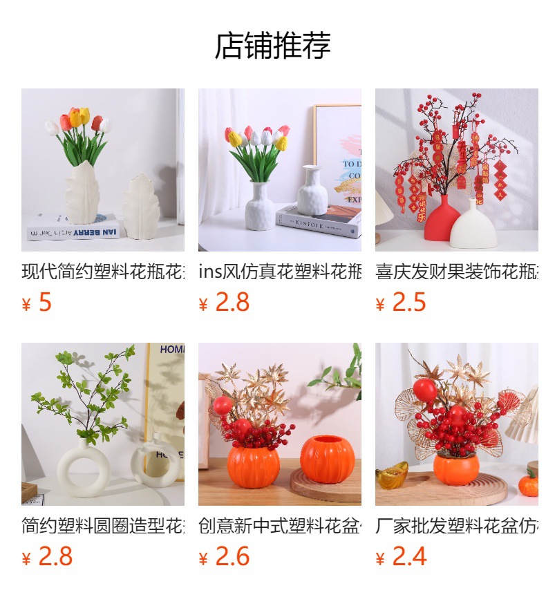 창조적 인 Ins 스타일 플라스틱 꽃병 가짜 꽃 꽃병 테이블 장식 거실 말린 꽃 꽃병 홈 장식스토어 가기