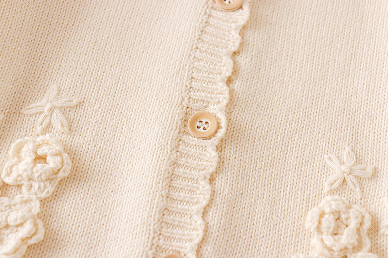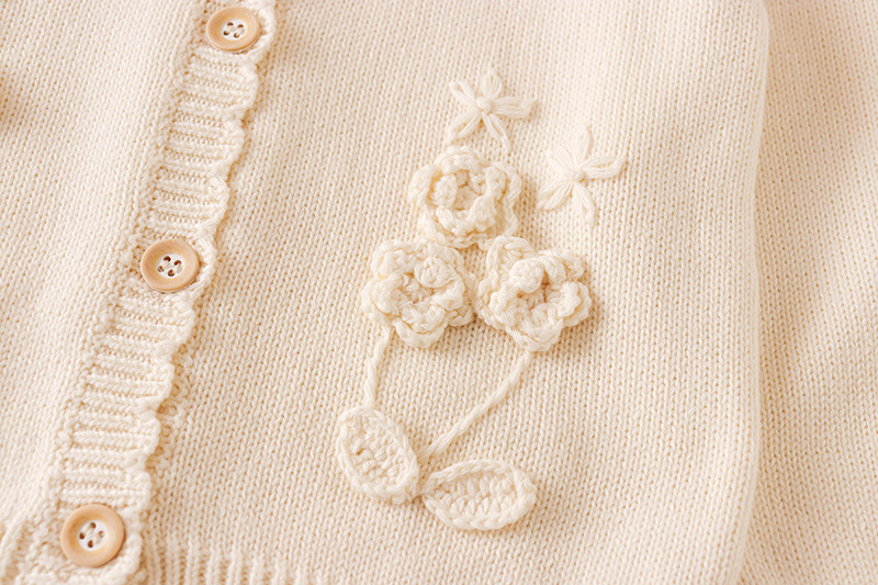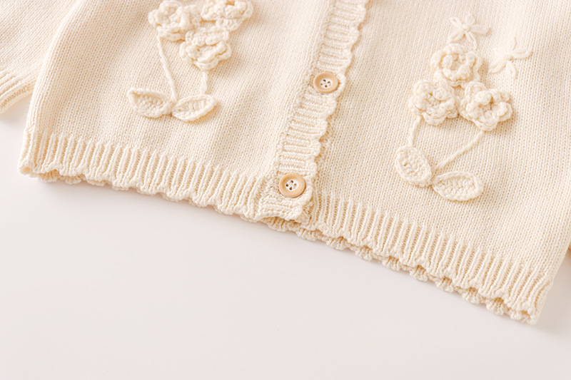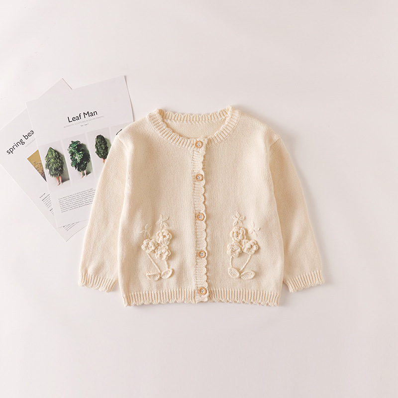 ins2025 가을 의류 영유아 핸드 후크 입체 꽃 스웨터 니트 가디건 코트 면사 심플 필수품