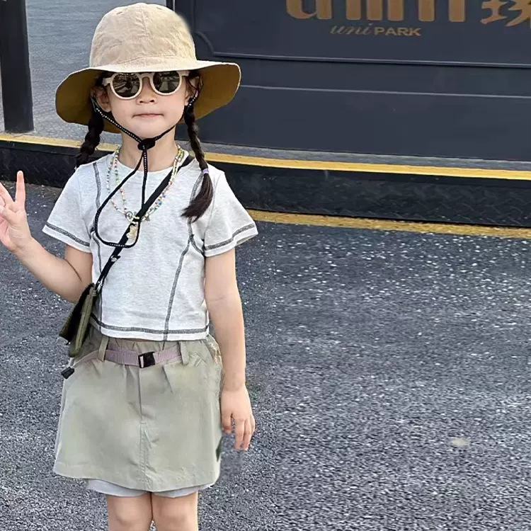 여자 여름 한국 스타일 디자인 센스 반팔 티셔츠 어린이 올매치 워크 스커트