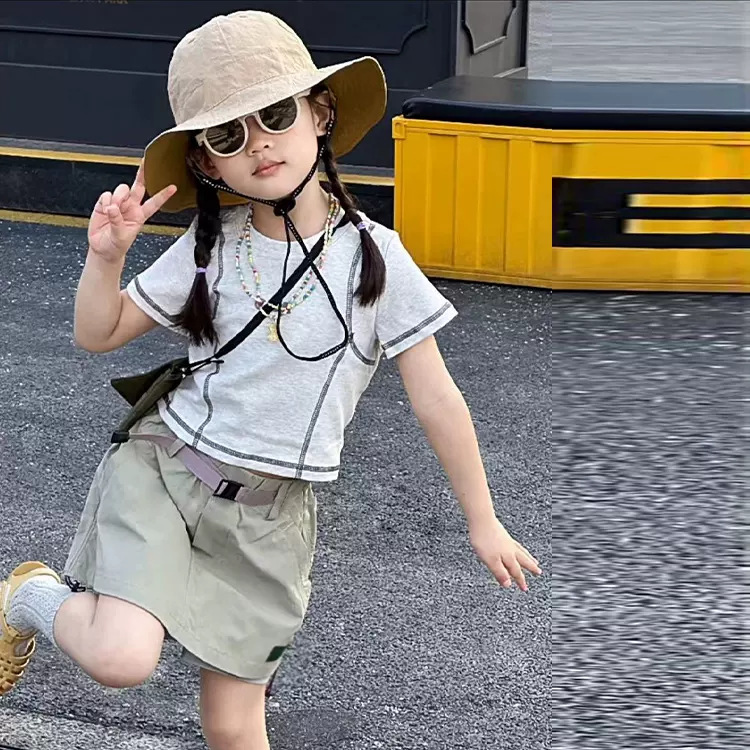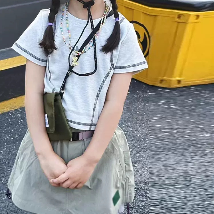 여자 여름 한국 스타일 디자인 센스 반팔 티셔츠 어린이 올매치 워크 스커트스토어 가기