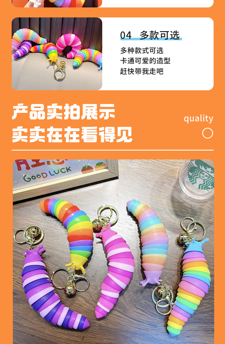 감압 애벌레 장난감 키 체인 손가락 끝 관절 슬러그 가방 작은 펜던트 자동차 선물 컬러 키 체인스토어 가기