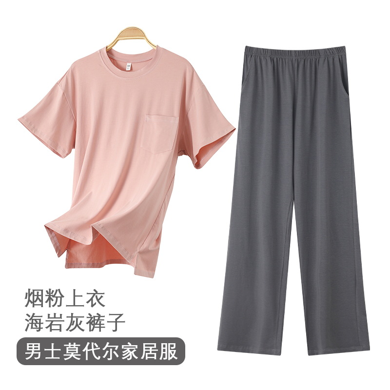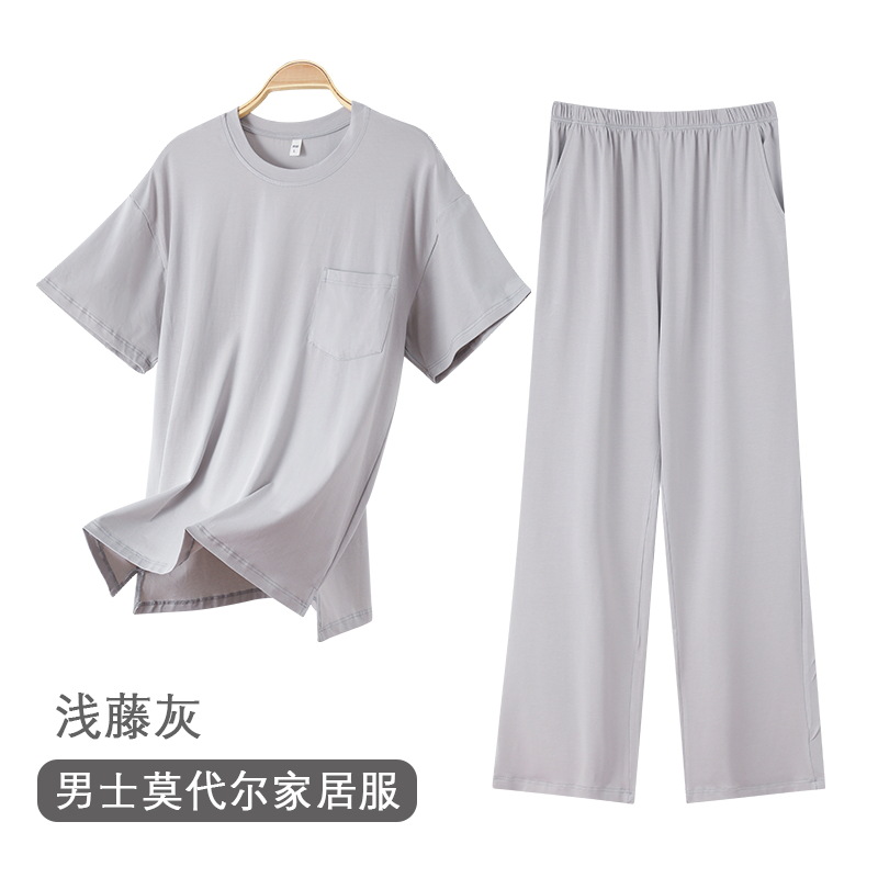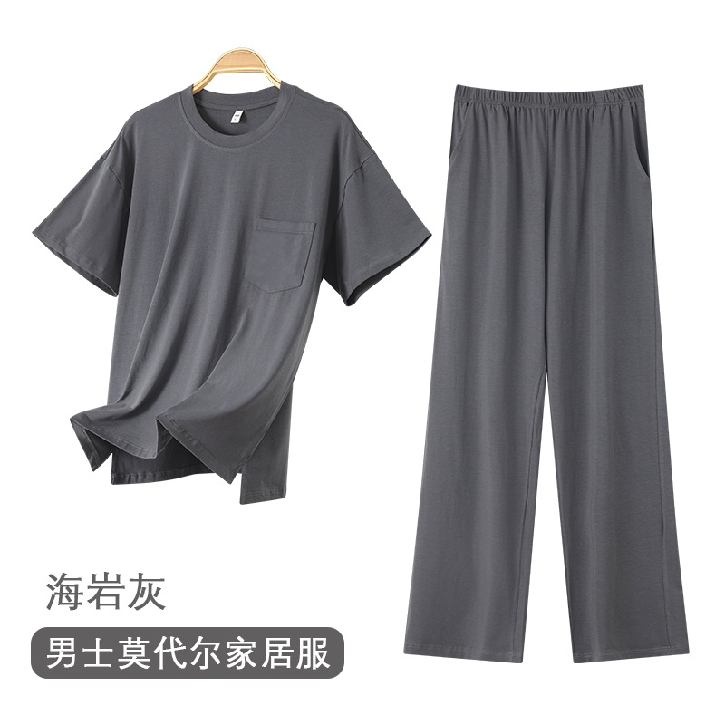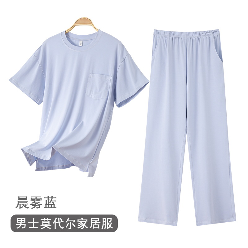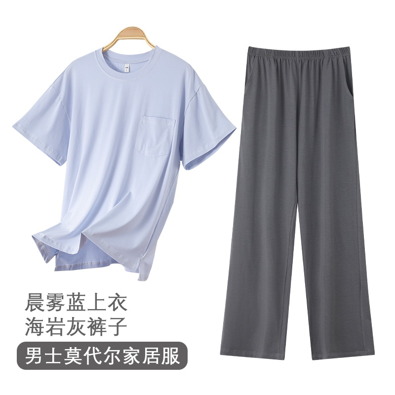 여름 남자 파자마 반팔 바지 모달 얇은 쿨 한국식 T-핏 느슨한 바지 겉옷 홈 웨어