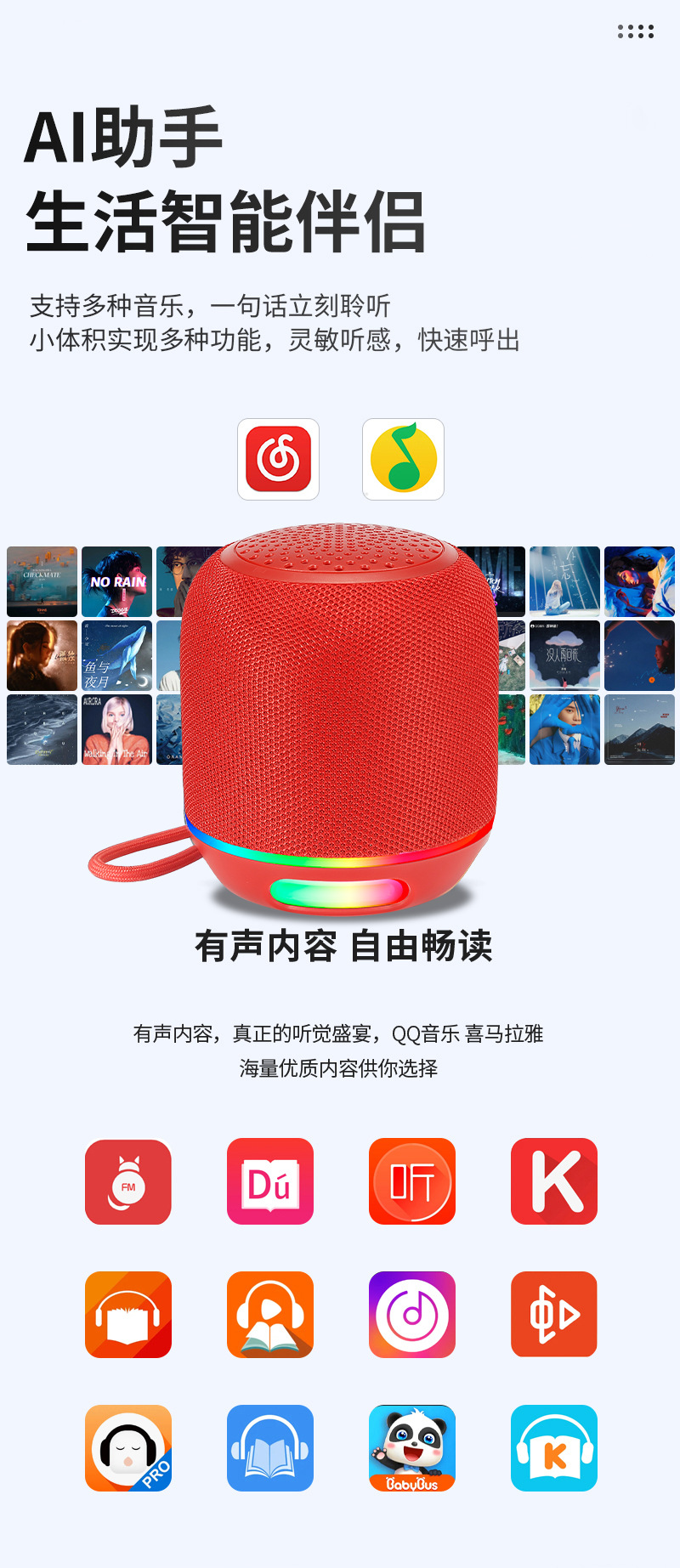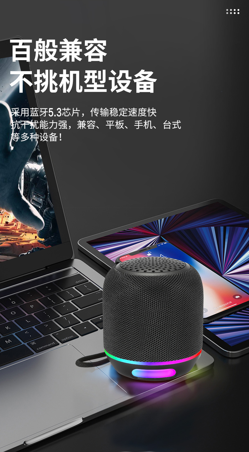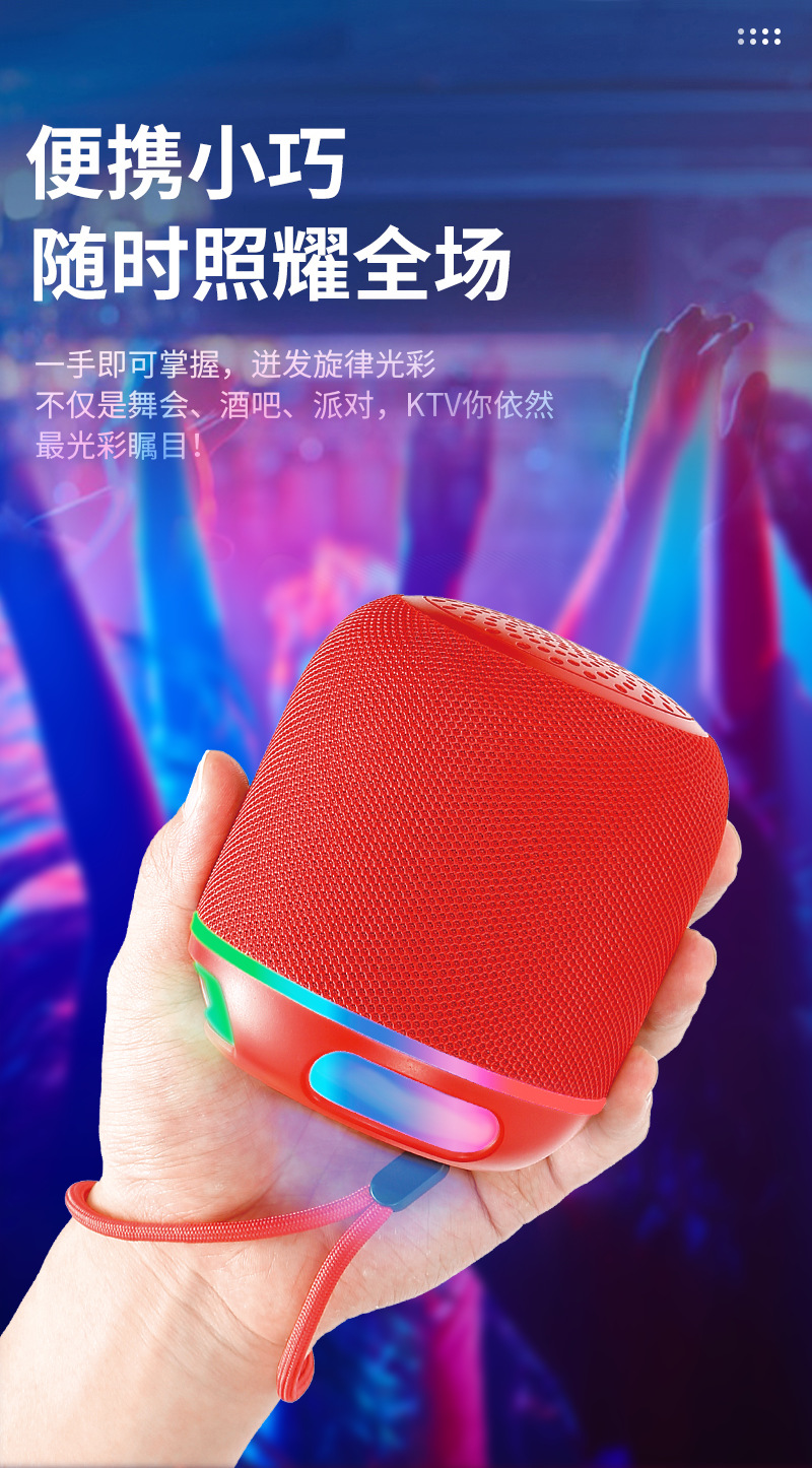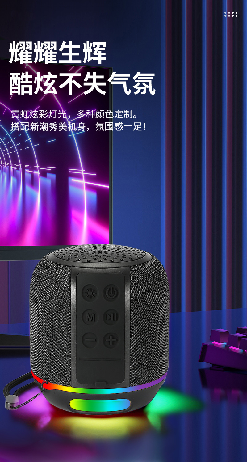 功能(FUTION):蓝牙播放,读U盘,TF卡,FM收音,自拍,TWS,5档RGB彩灯