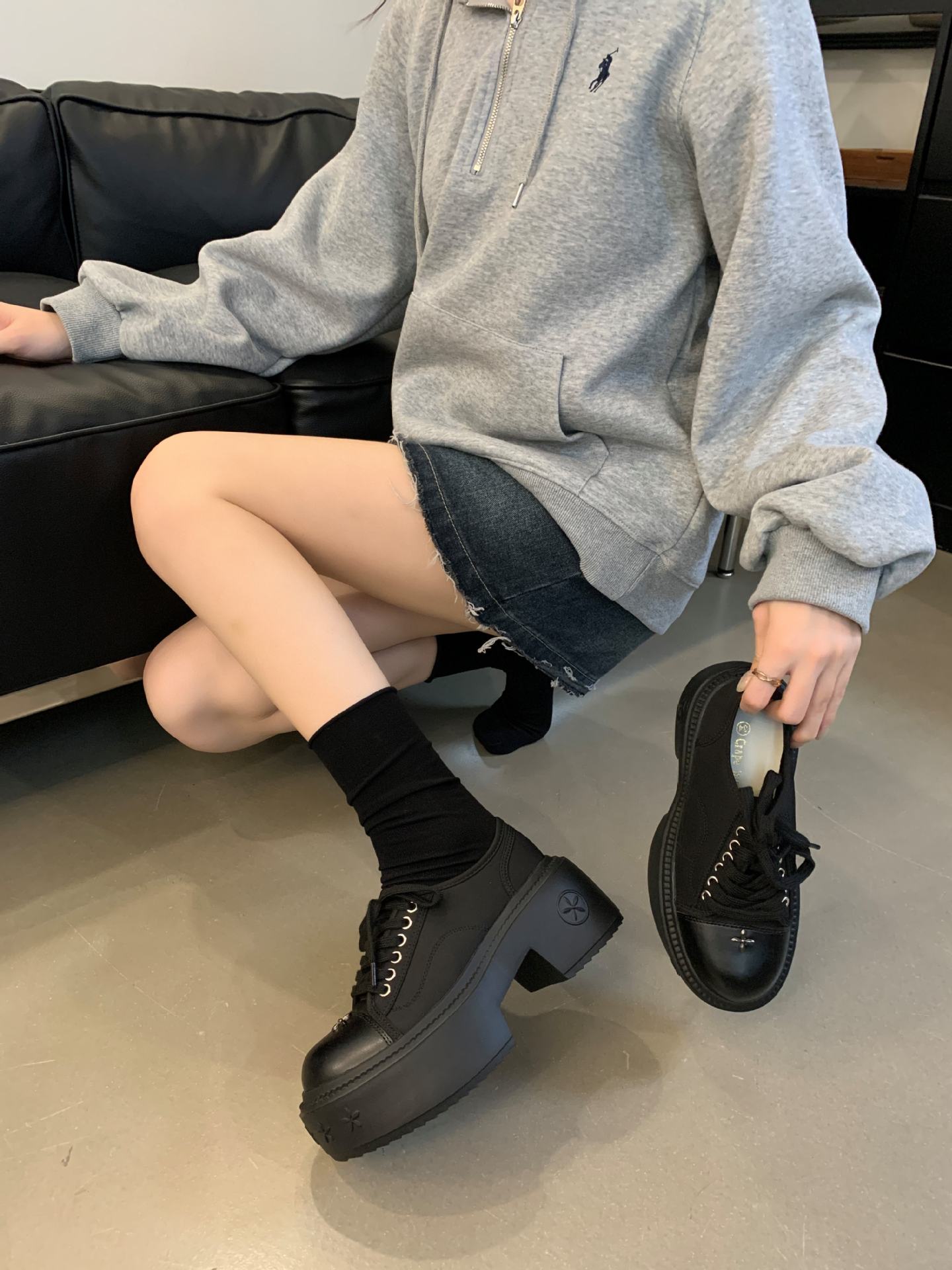새로운 네이선 도로 코너에 가을을 가진 포도 엄마 ~ 8cm 두꺼운 바닥 큰 둥근 머리 두꺼운 바닥 캐주얼 캔버스 신발 여성