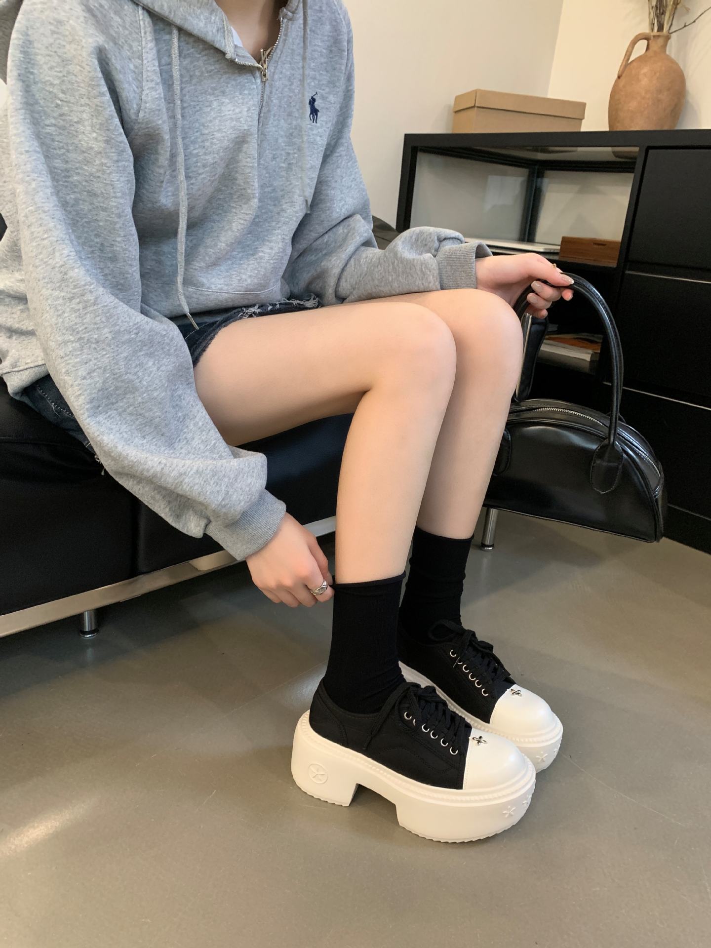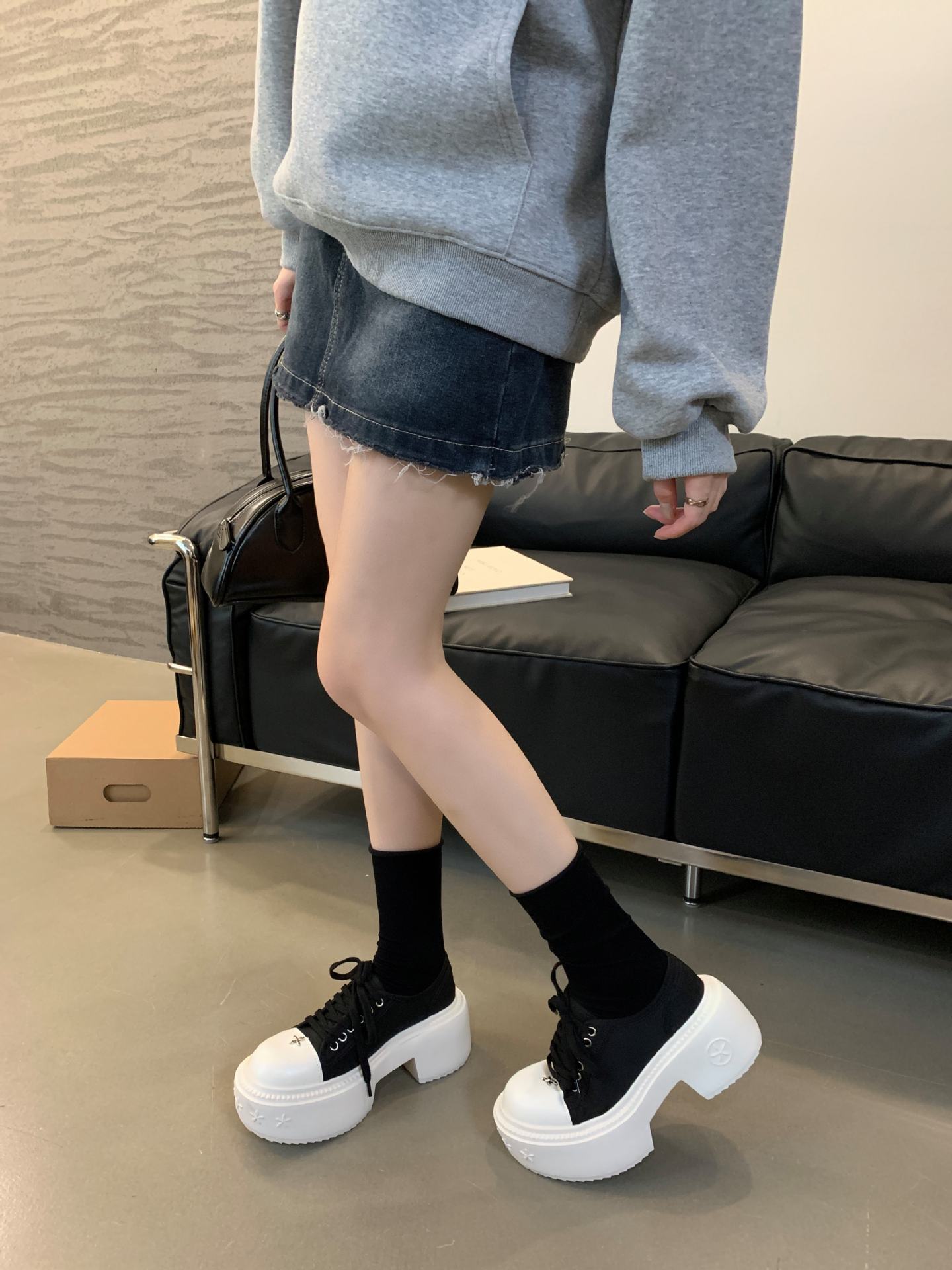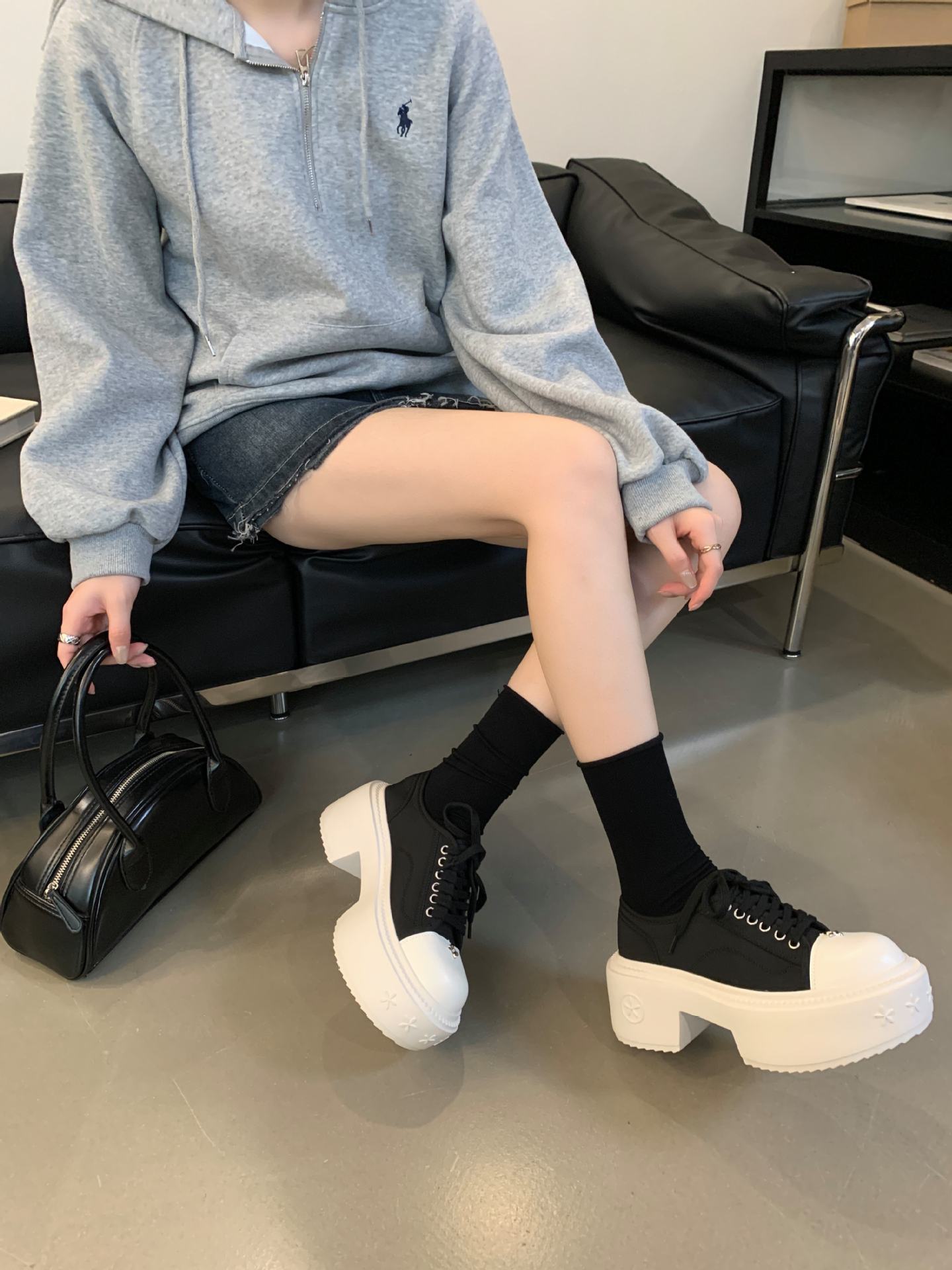 새로운 네이선 도로 코너에 가을을 가진 포도 엄마 ~ 8cm 두꺼운 바닥 큰 둥근 머리 두꺼운 바닥 캐주얼 캔버스 신발 여성스토어 가기