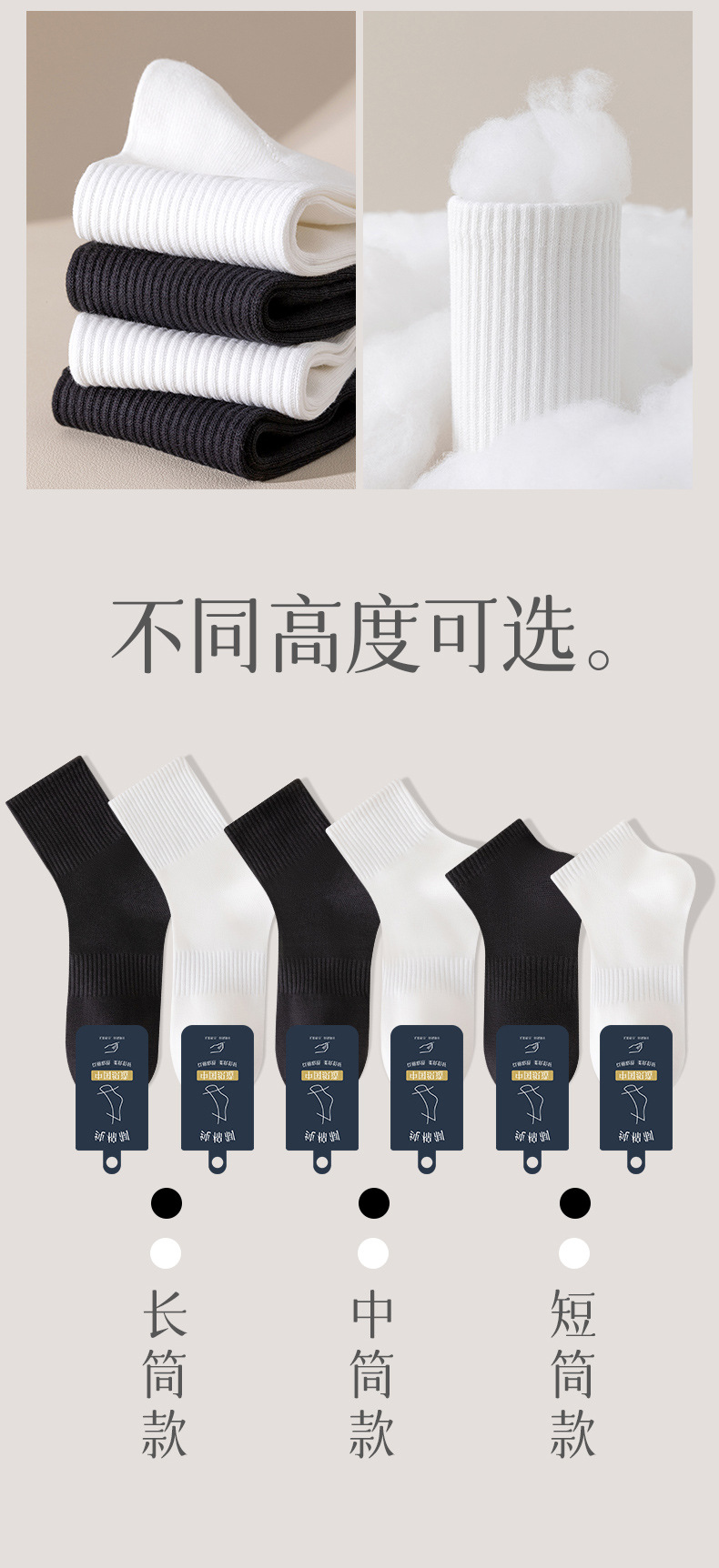 순면 뼈없는 양말 남성용 종아리 중반 양말 항균, 보온 및 탈취 가을 겨울 남성용 신장 장단면 스타킹스토어 가기