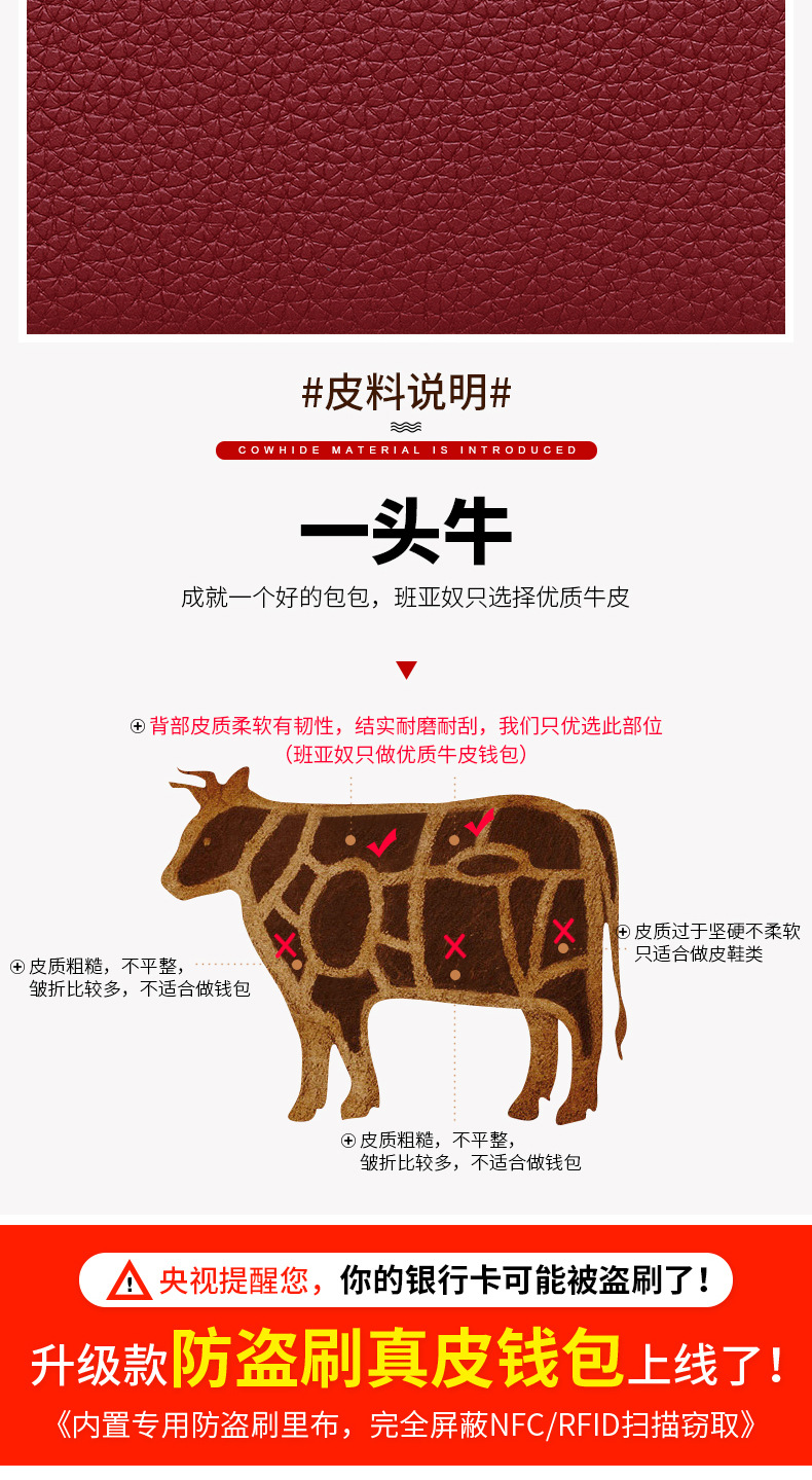 • 버건디 (첫 번째 레이어 소 가죽) 도난 방지 브러시