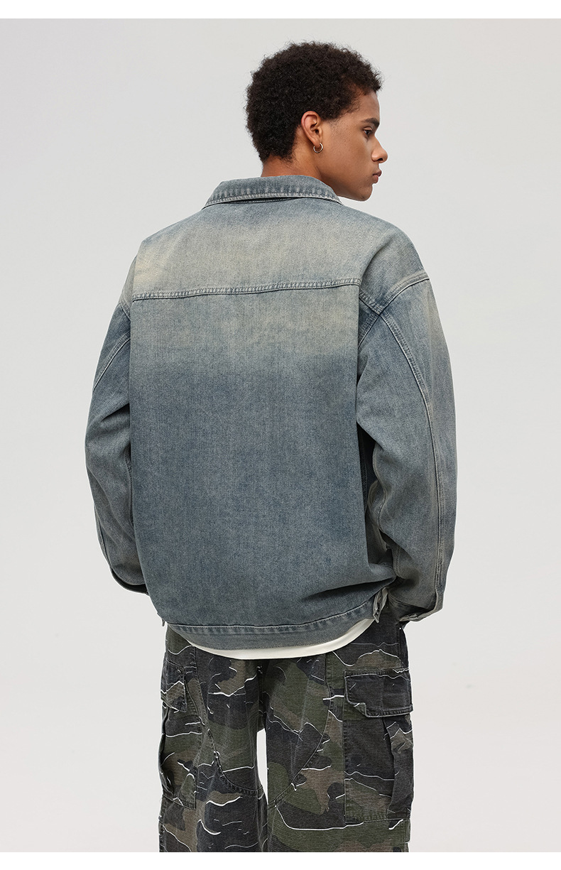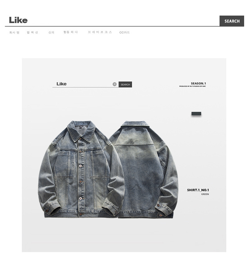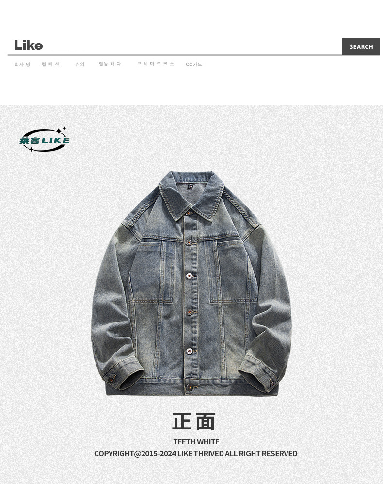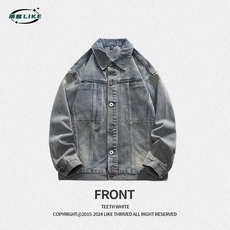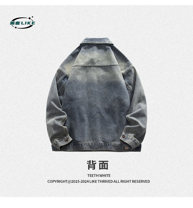 라이커 아메리칸 레트로 하이 스트리트 데님 재킷 남성용 고급 루즈핏 캐주얼 다용도 워싱 데님 재킷스토어 가기