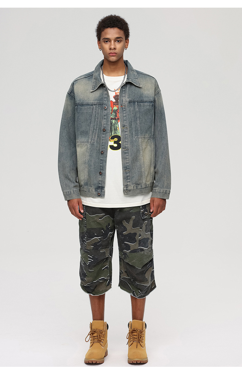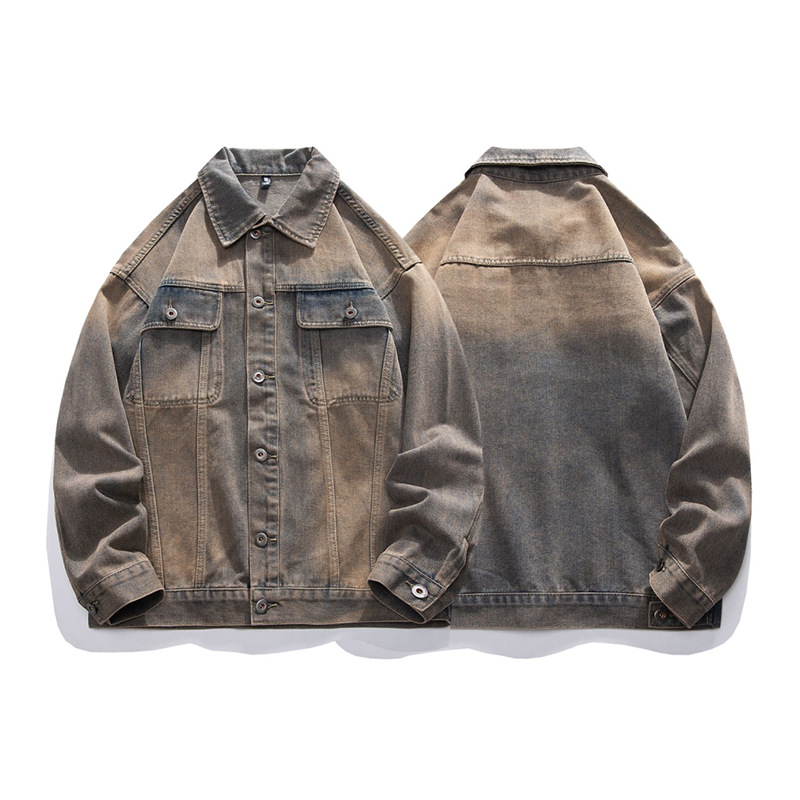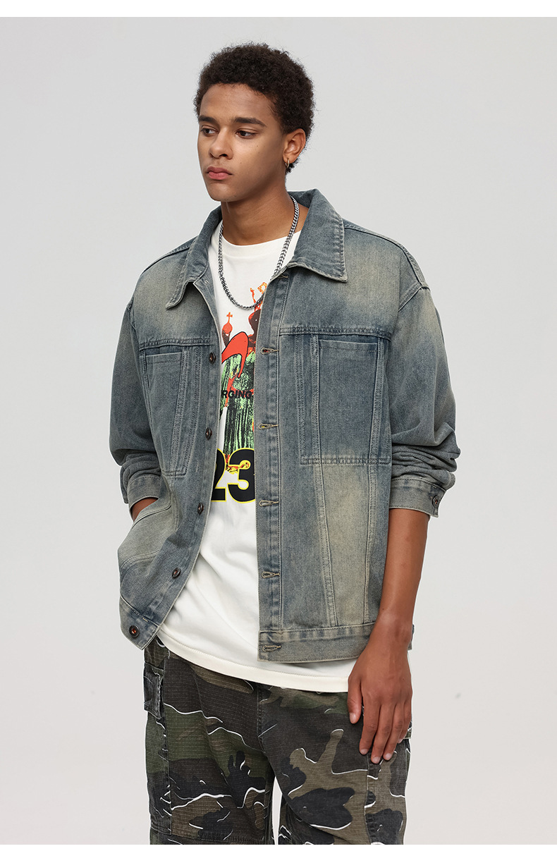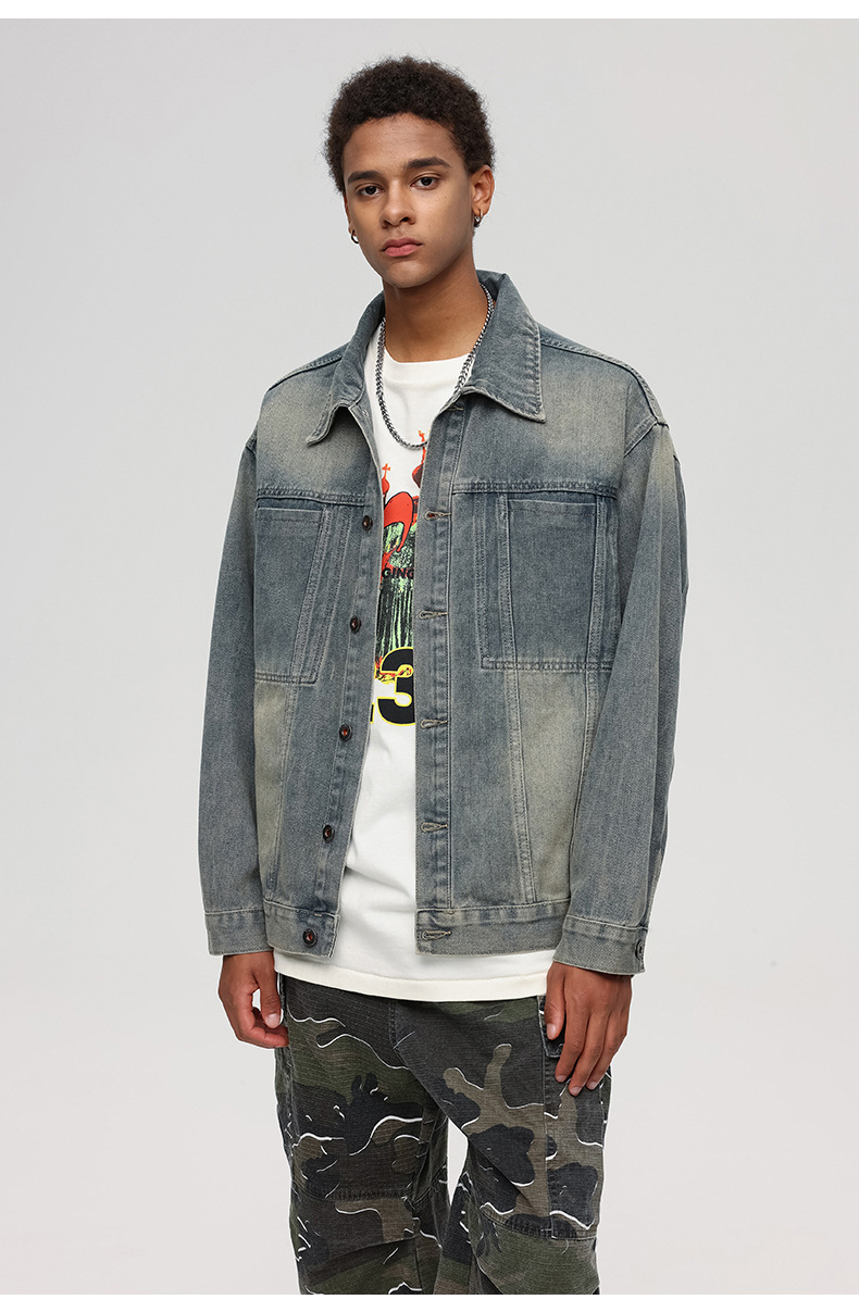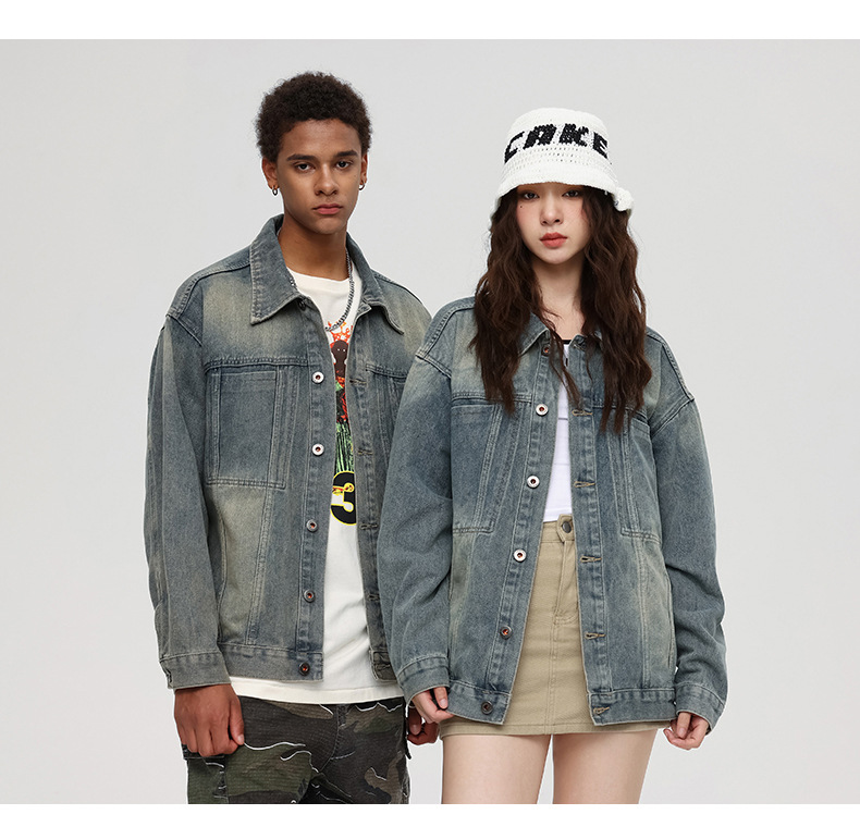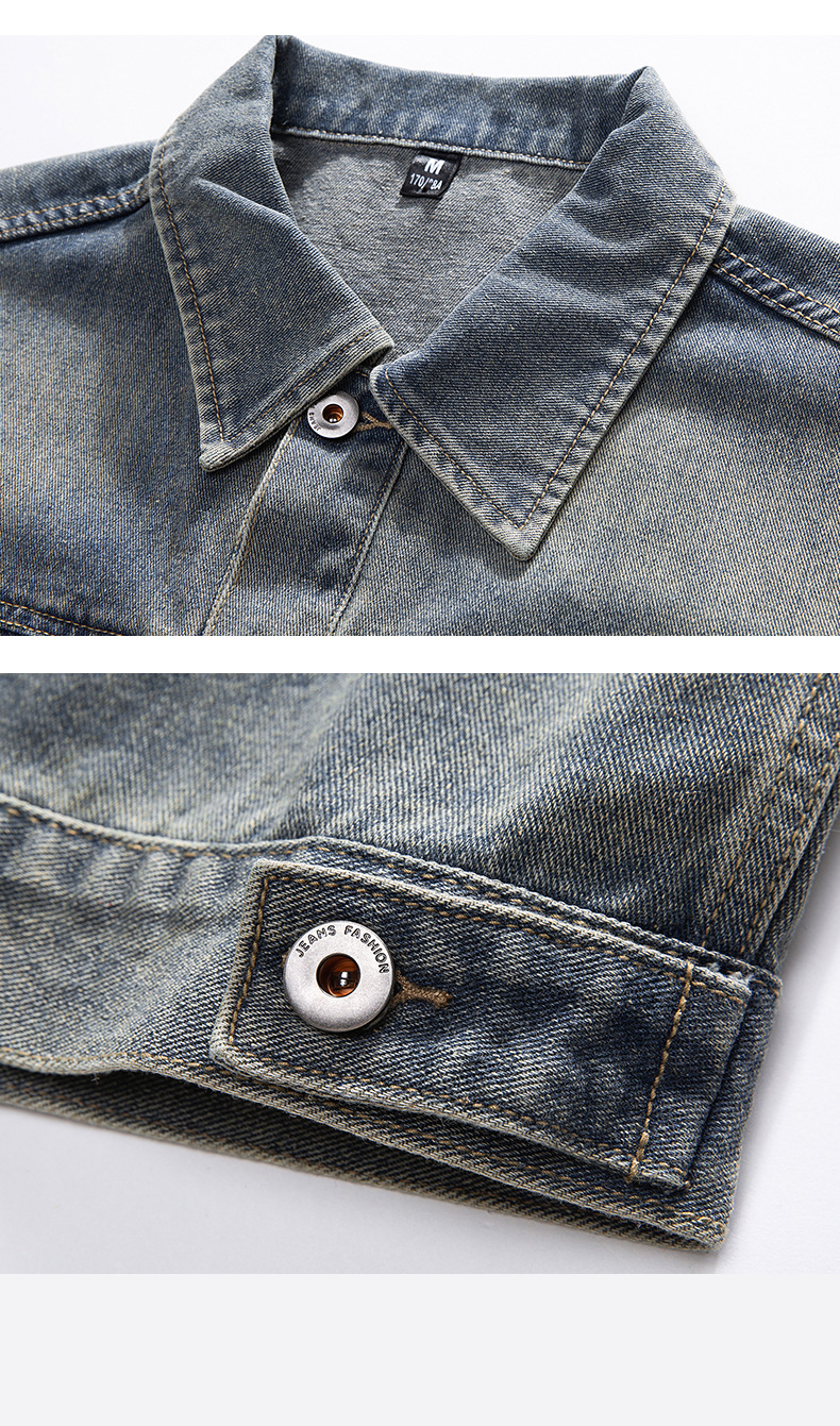 라이커 아메리칸 레트로 하이 스트리트 데님 재킷 남성용 고급 루즈핏 캐주얼 다용도 워싱 데님 재킷스토어 가기