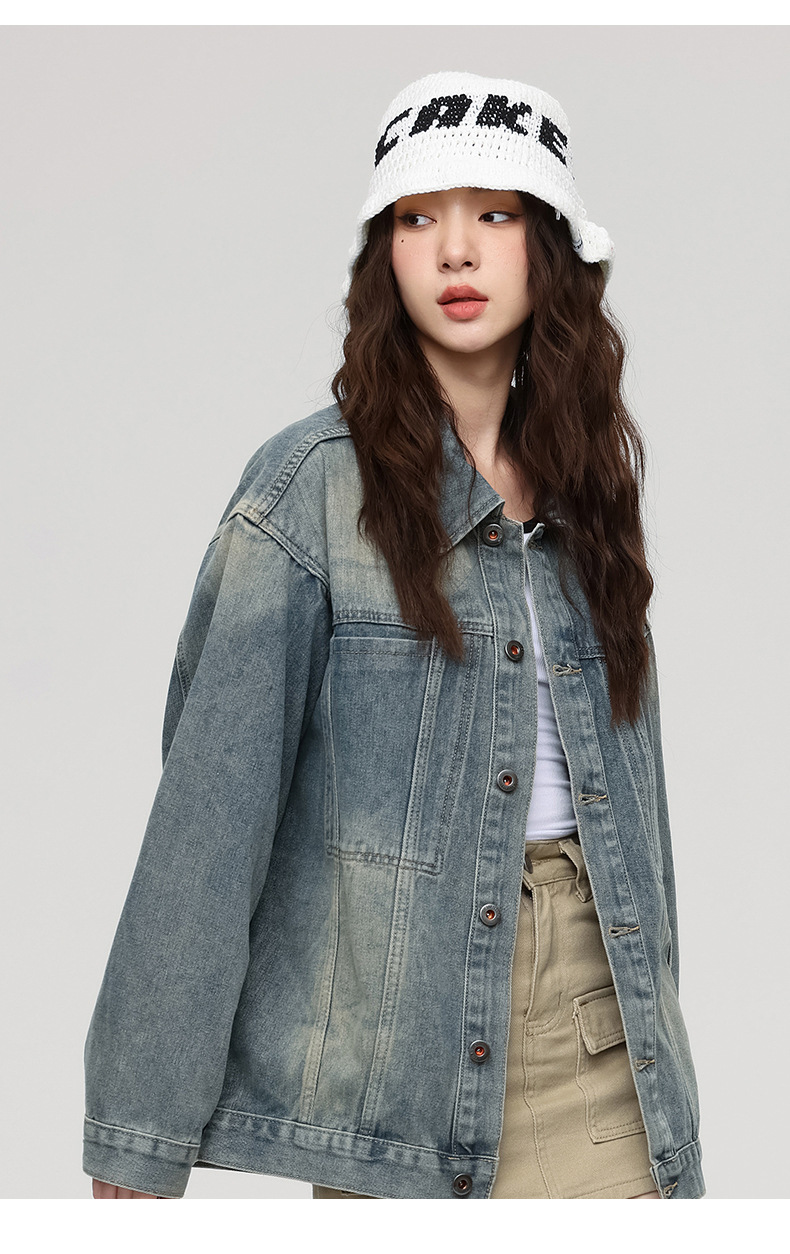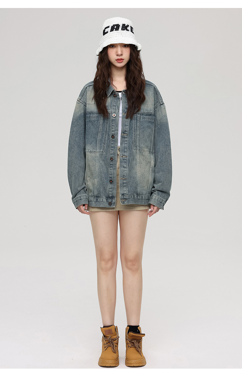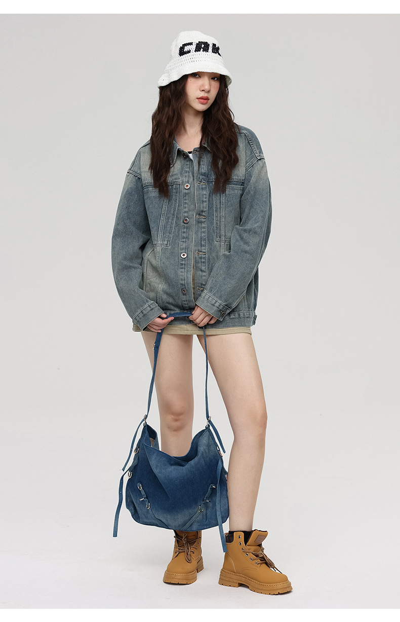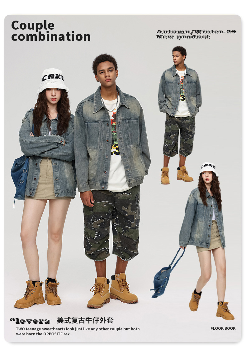 라이커 아메리칸 레트로 하이 스트리트 데님 재킷 남성용 고급 루즈핏 캐주얼 다용도 워싱 데님 재킷스토어 가기
