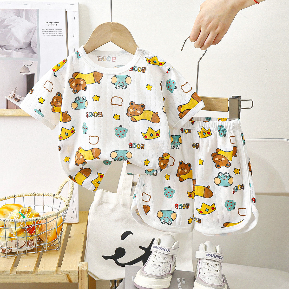 어린이 반팔 반바지 세트 여름 면화 새 소년 여름 옷 얇은 여자 옷 아동복 도매스토어 가기