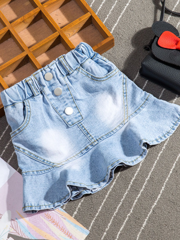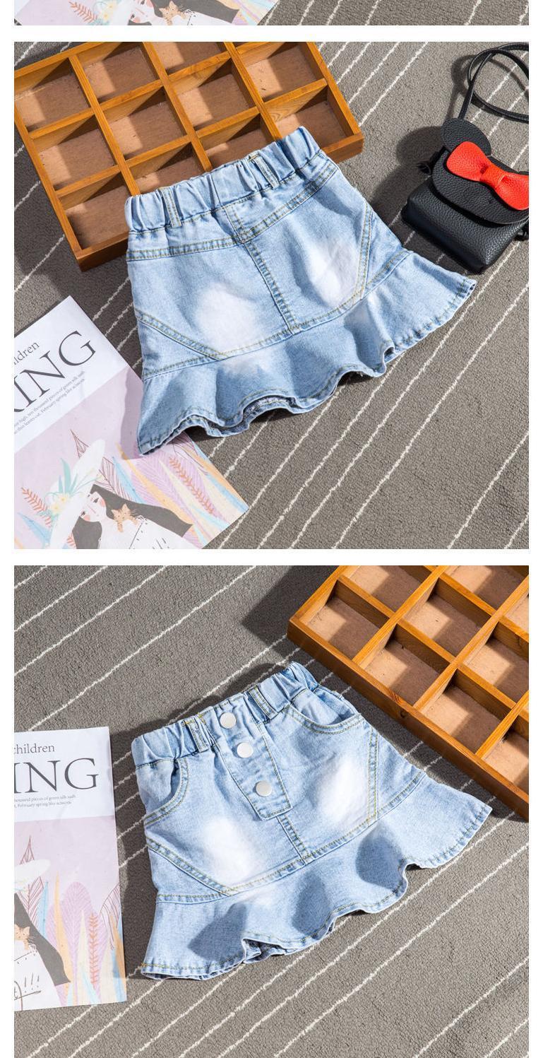 여자 치마 한국 스타일 아동복 새로운 여름 데님 치마 치마 아기 치마 피쉬 스커트 여름 중 큰 어린이