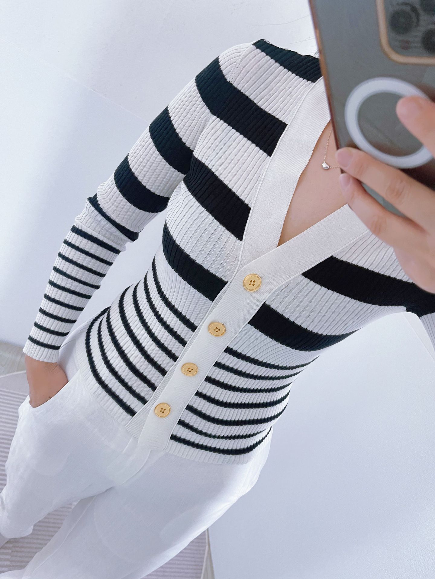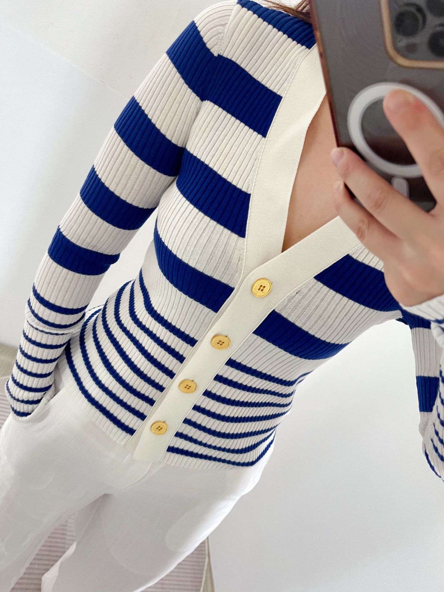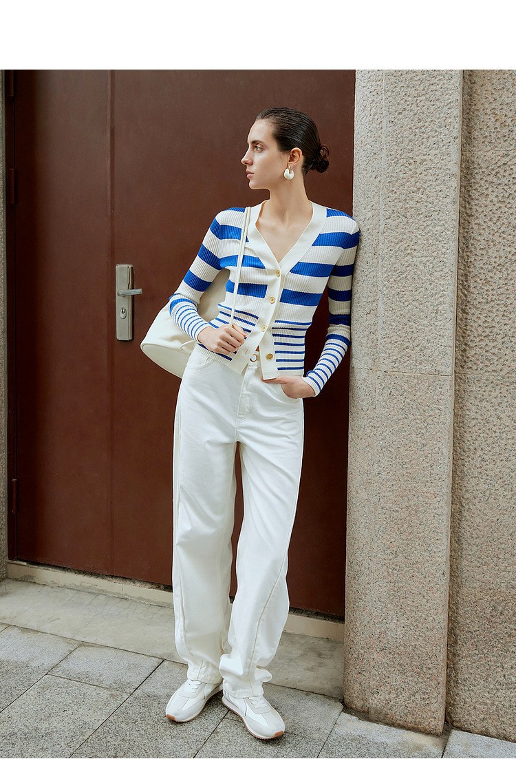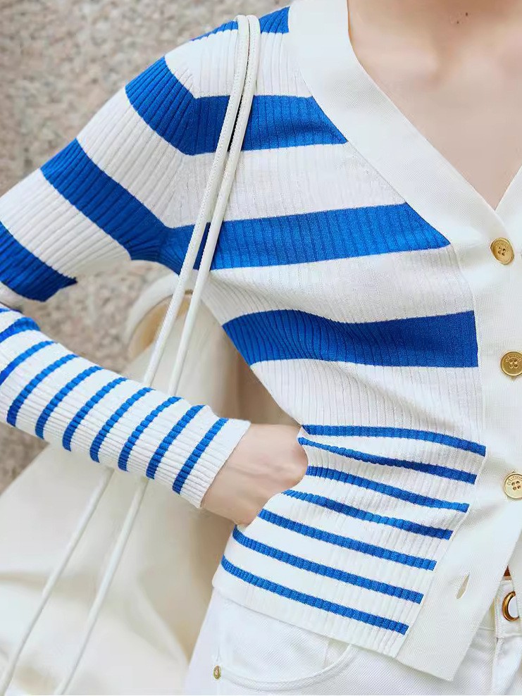 ED 신상 브이넥 레트로 배색 스트라이프 니트 가디건 여성용 2024 숏 니트 상의 우아한 스타일스토어 가기